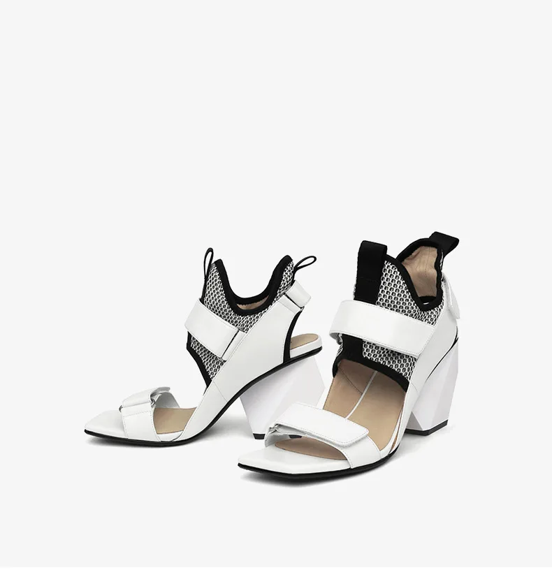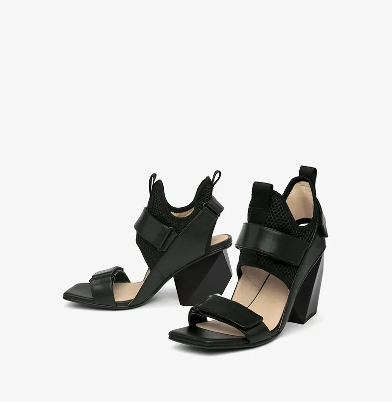 Summer Sandals Women Fashion Square-toe Open-toe Roman Shoes Hollow Out Ankle Strap High Heel Sandals For Ladies Party Sandalias