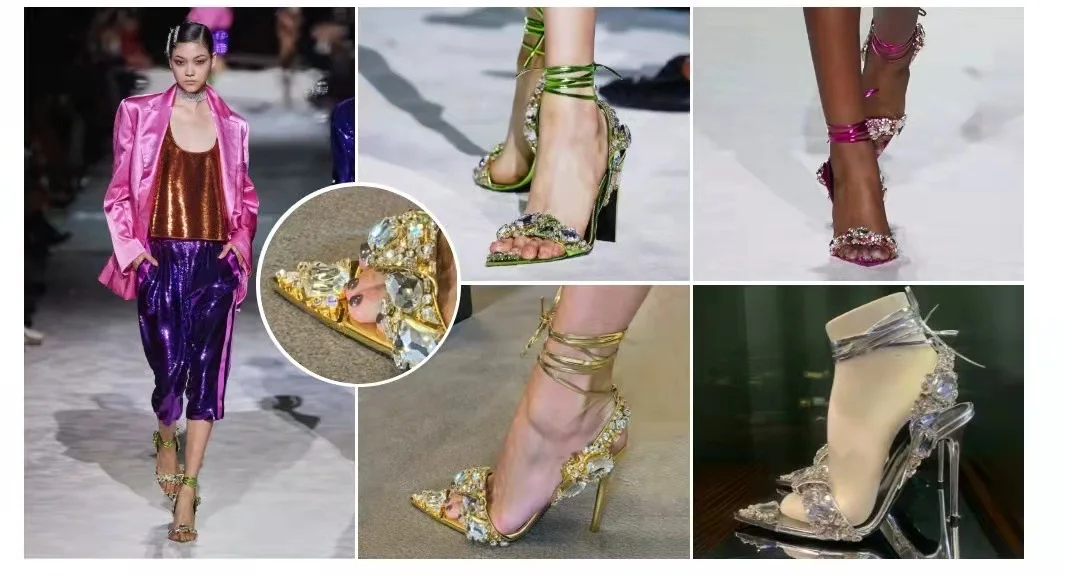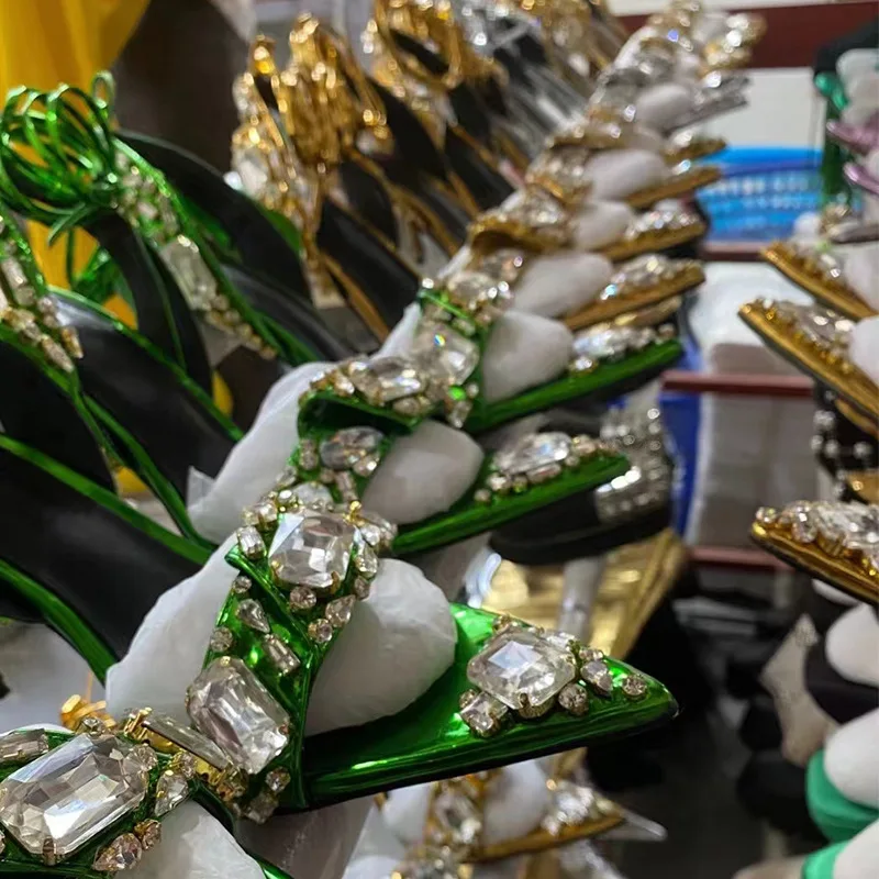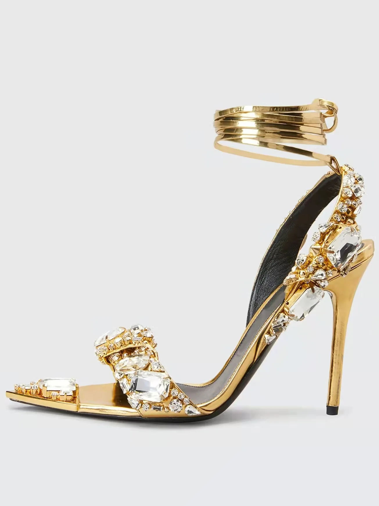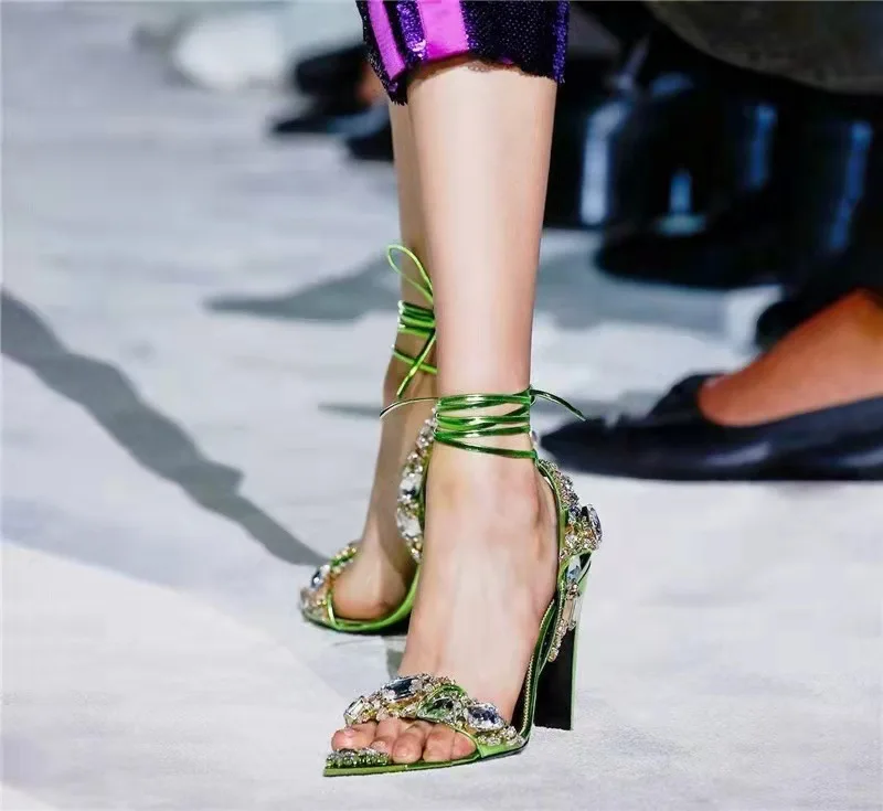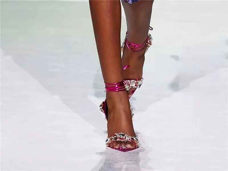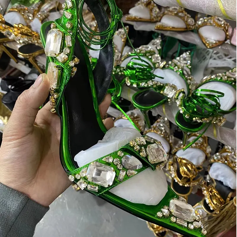Summer Sandals Women Luxury Gemstone Decor Mujer Shoes Cross Strap Lace Up High Heel Sandals For Ladies Wedding Dating Sandalias
