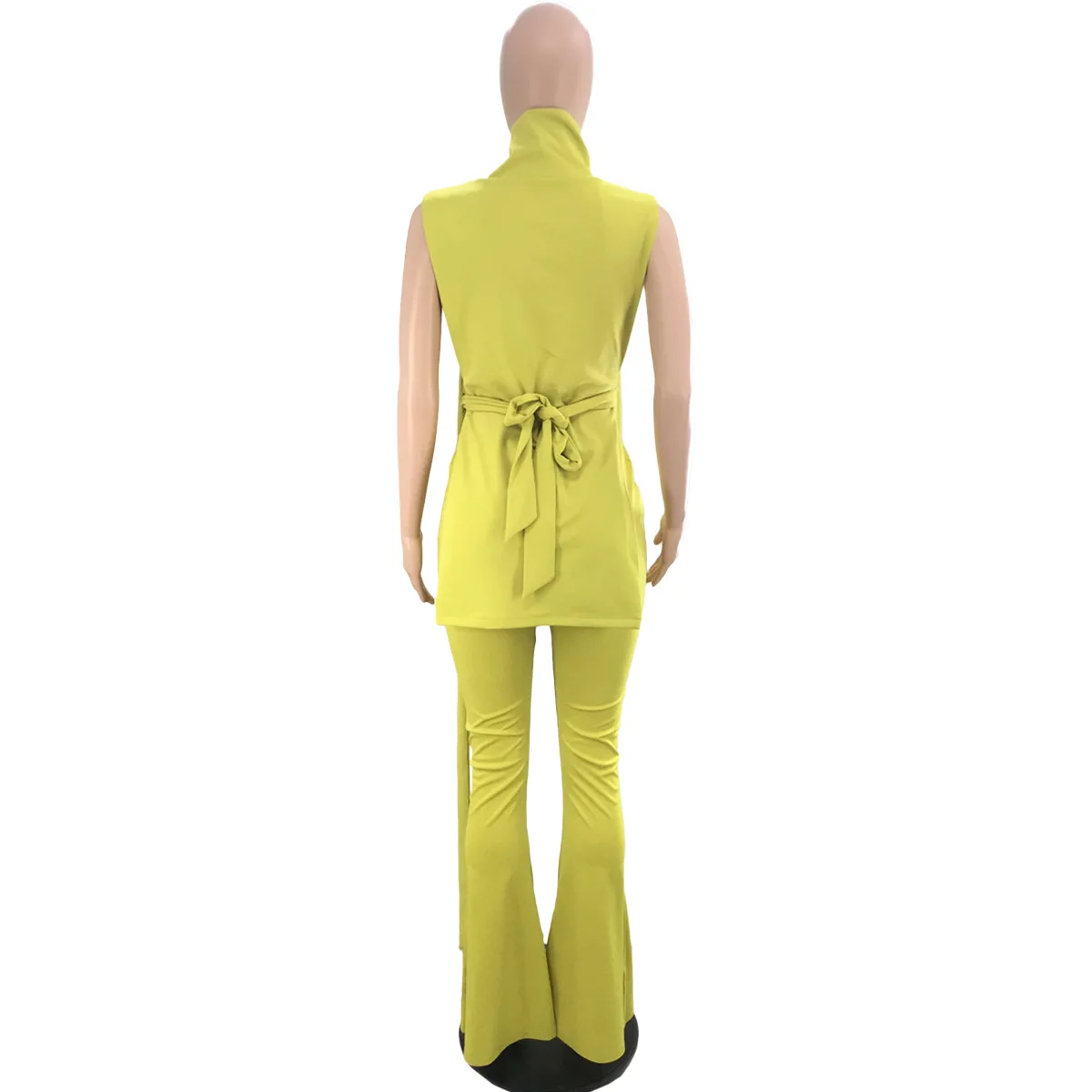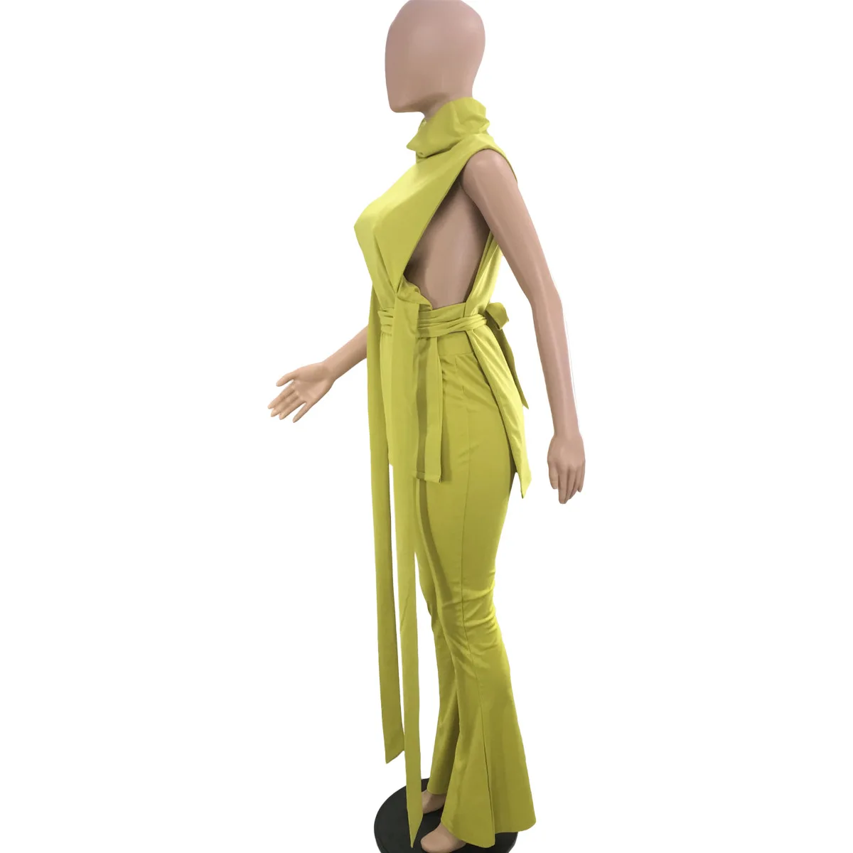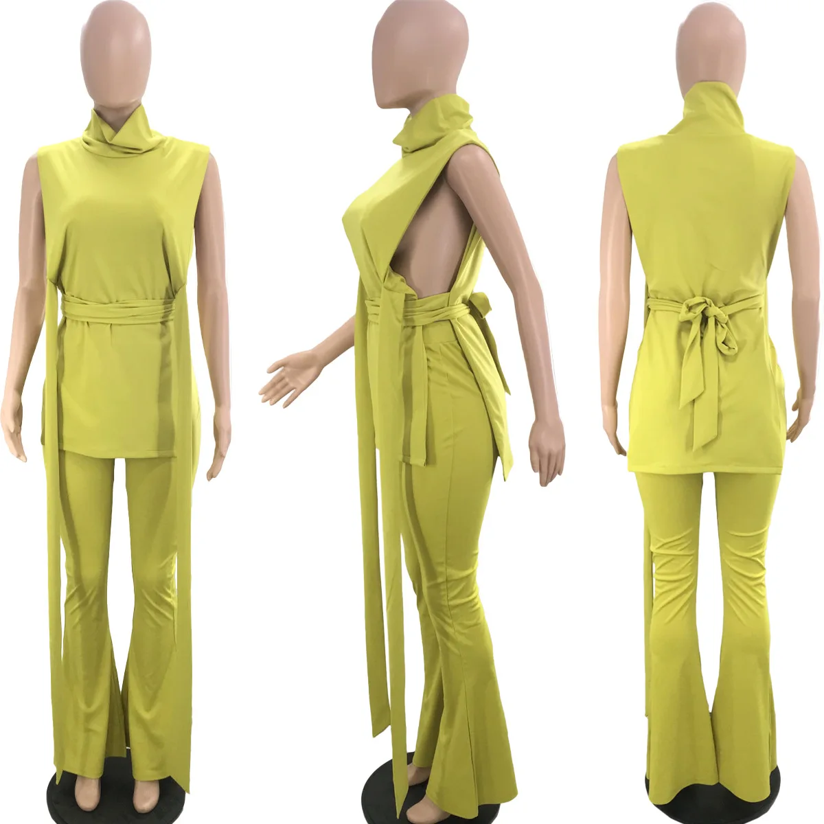 Summer Sexy 2 Pieces Legging Pants Set With Strap High Neck Sleeveless Crop Top And Flare Leg Pants