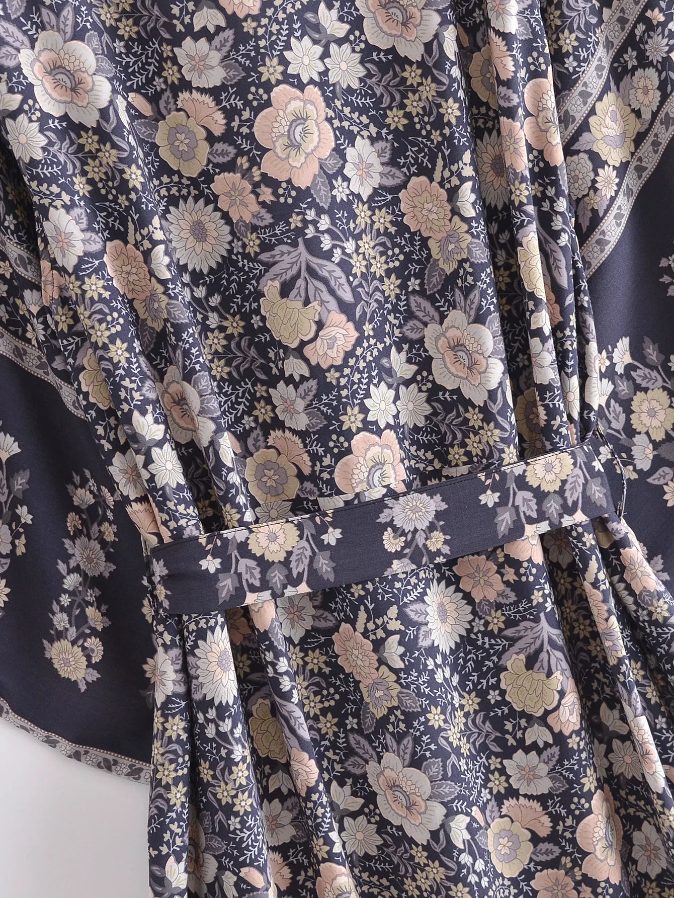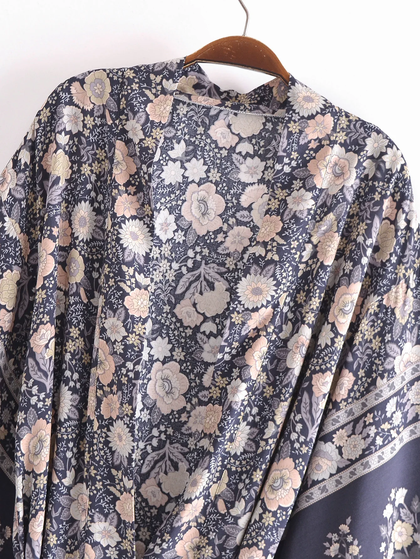 Summer Sexy Bikini Vintage Rayon Cotton Blouse Cover Up Sleeve Sashes Robe Casual Women Holiday Beach Wear Kimonos Mujer