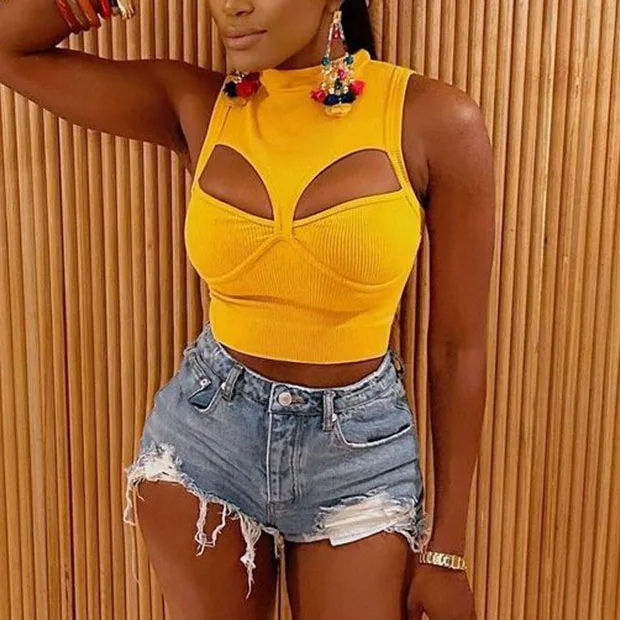 Summer Sexy Crop Hollow Out Tank Top Fashion Solid Color 2024 Women Sleeveless Top