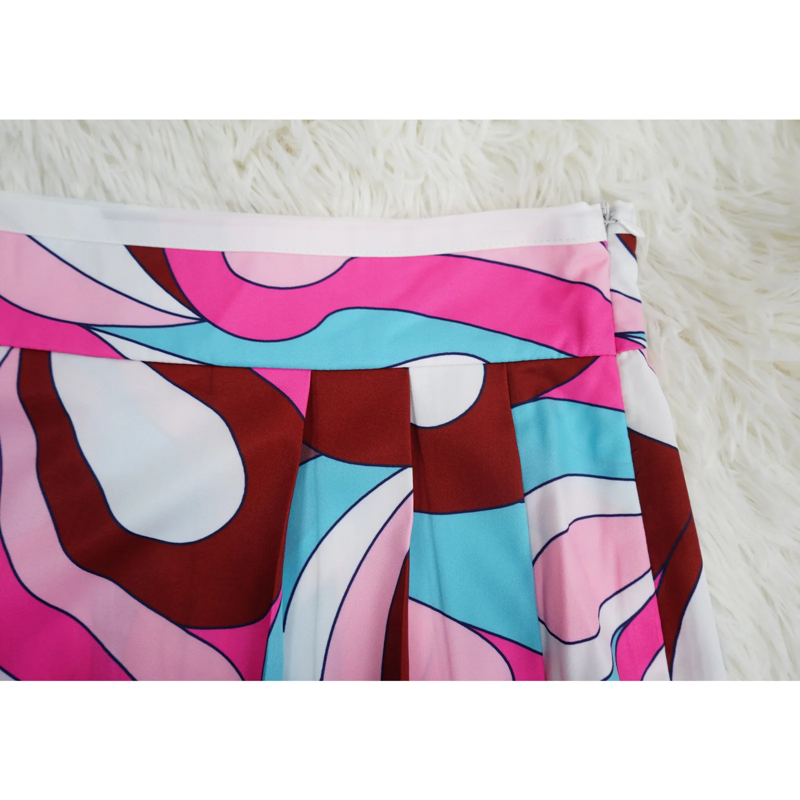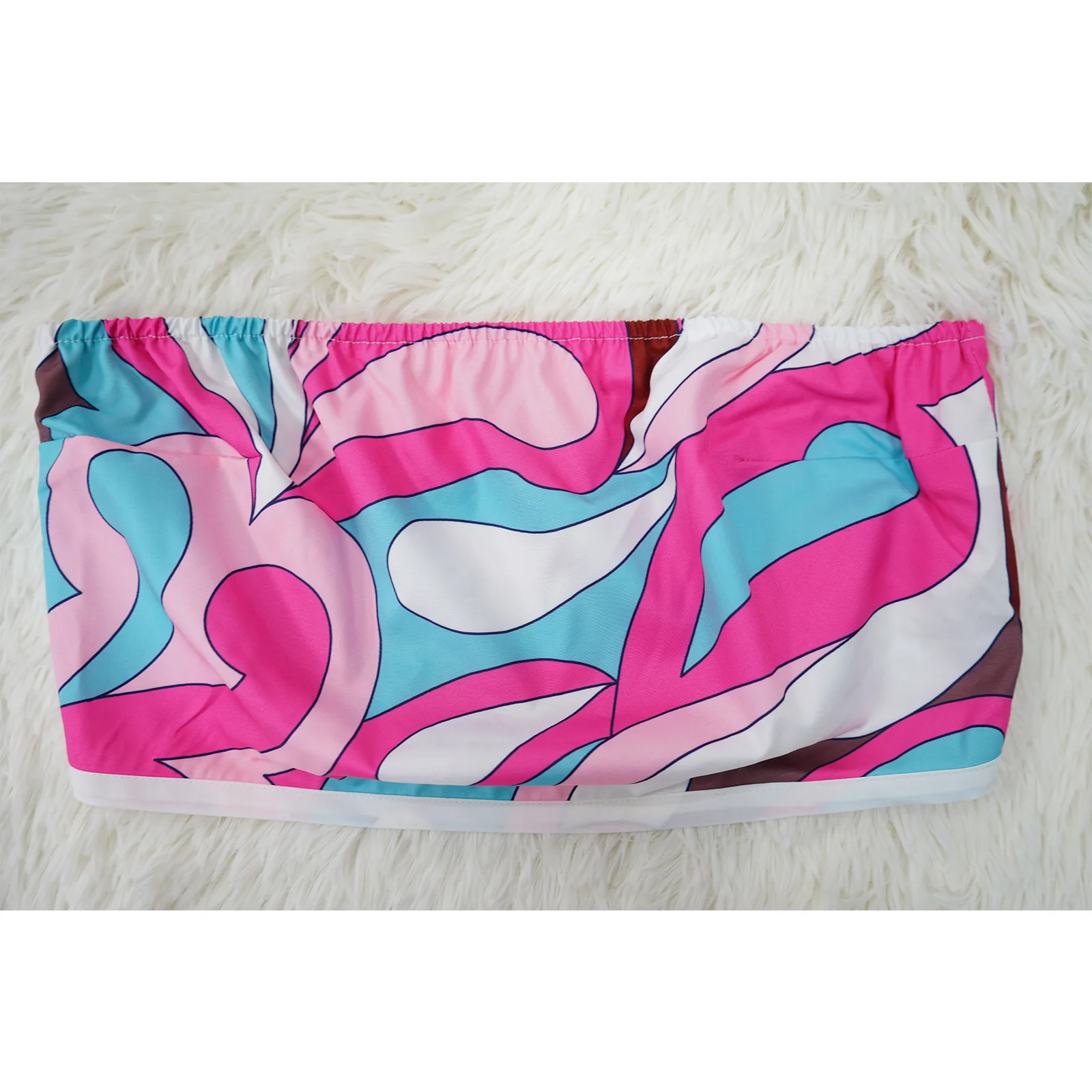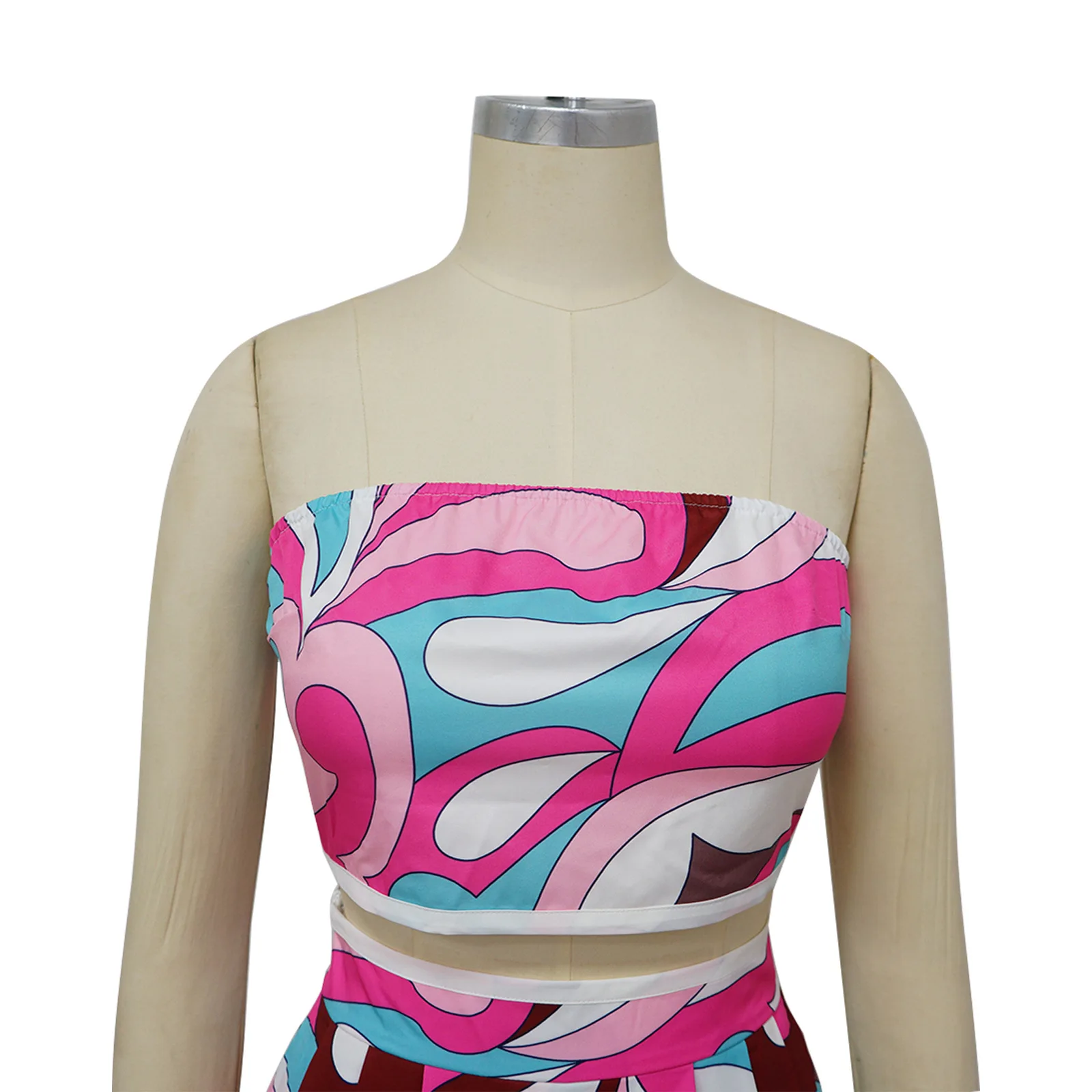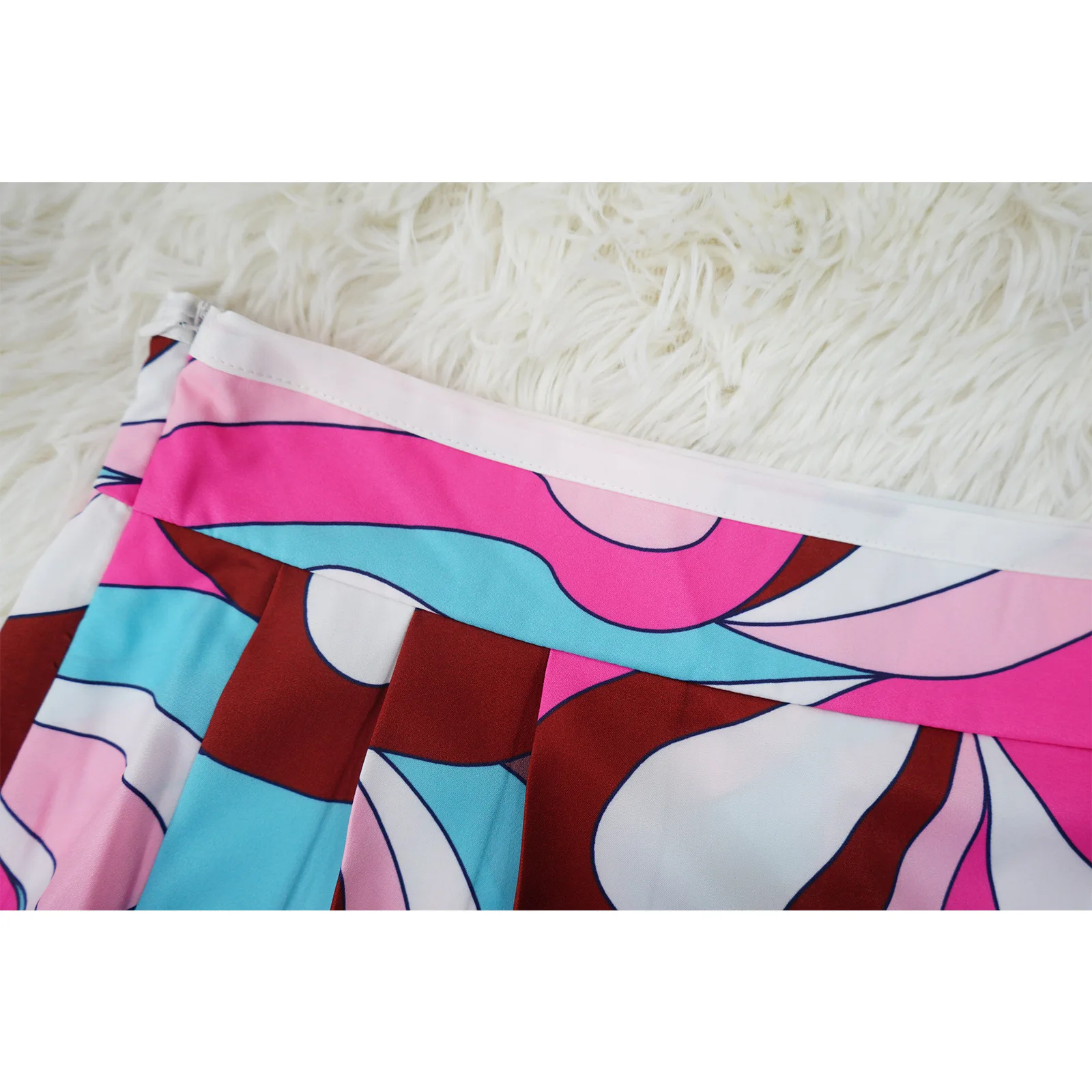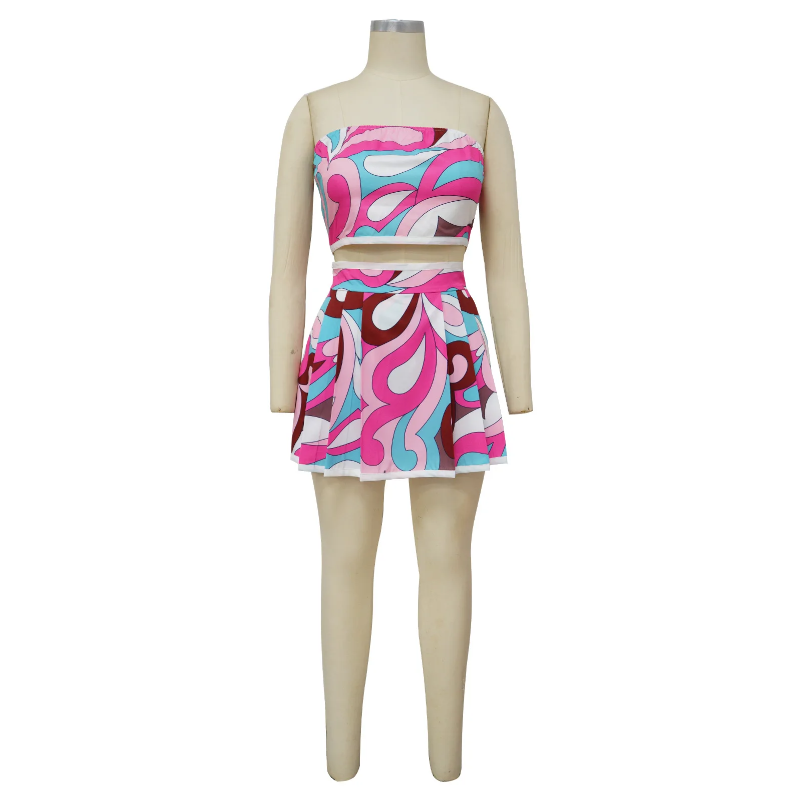 Summer Sexy Print Two Pieces Skirt Set With Sling Tube Top And Tennis Skirt Mini Pleated Skirt
