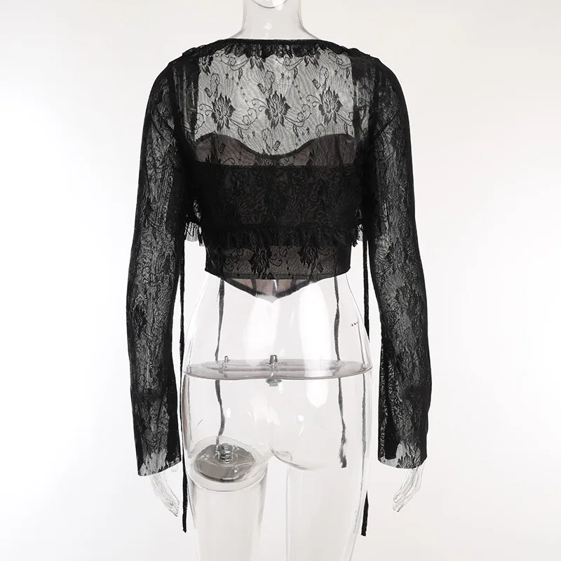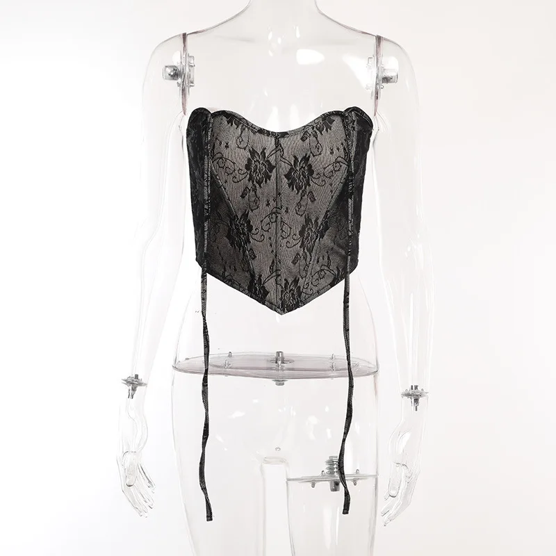 Summer Spring 2024 Ladies Strapless Tube Top Sexy Lace Corset Tops+Long Sleeve Cardigan For Women
