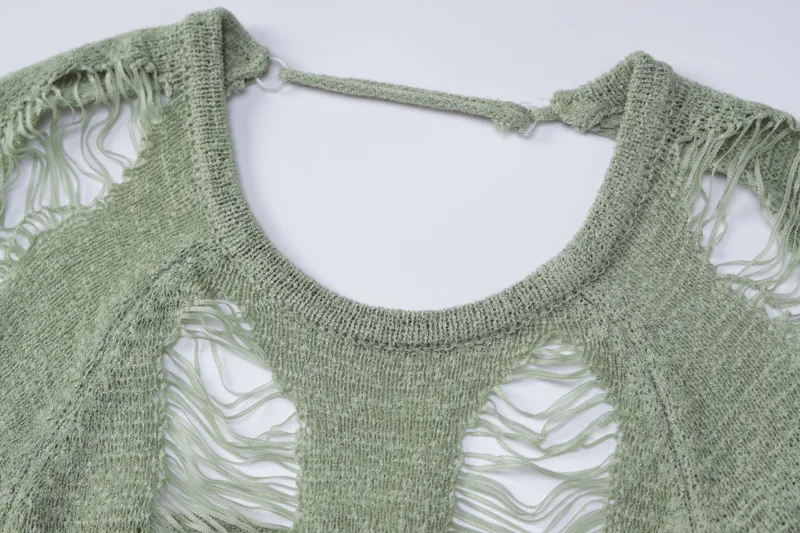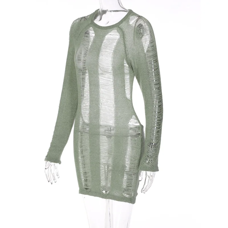 Summer Street Wear Bodycon Sexy Nightclub Long Sleeve Backless Dress Club Women Cut Out Ripped Knit Mini Dress