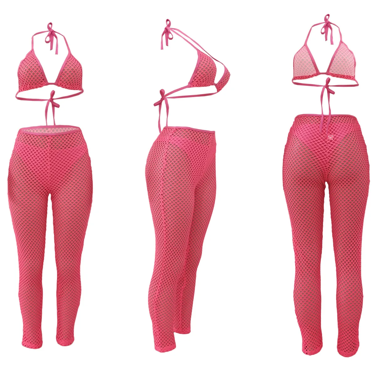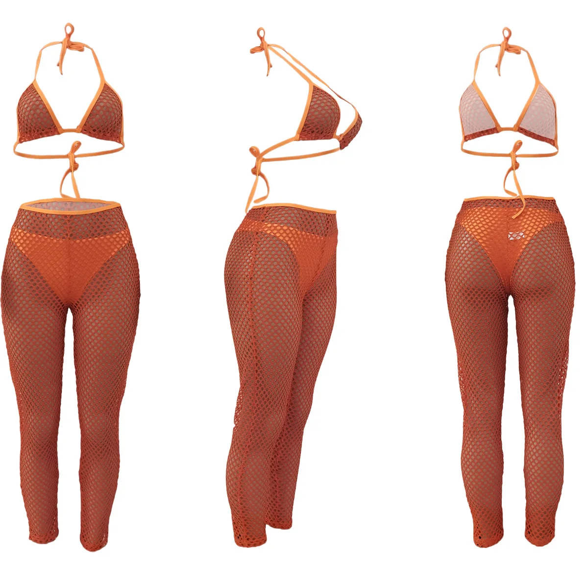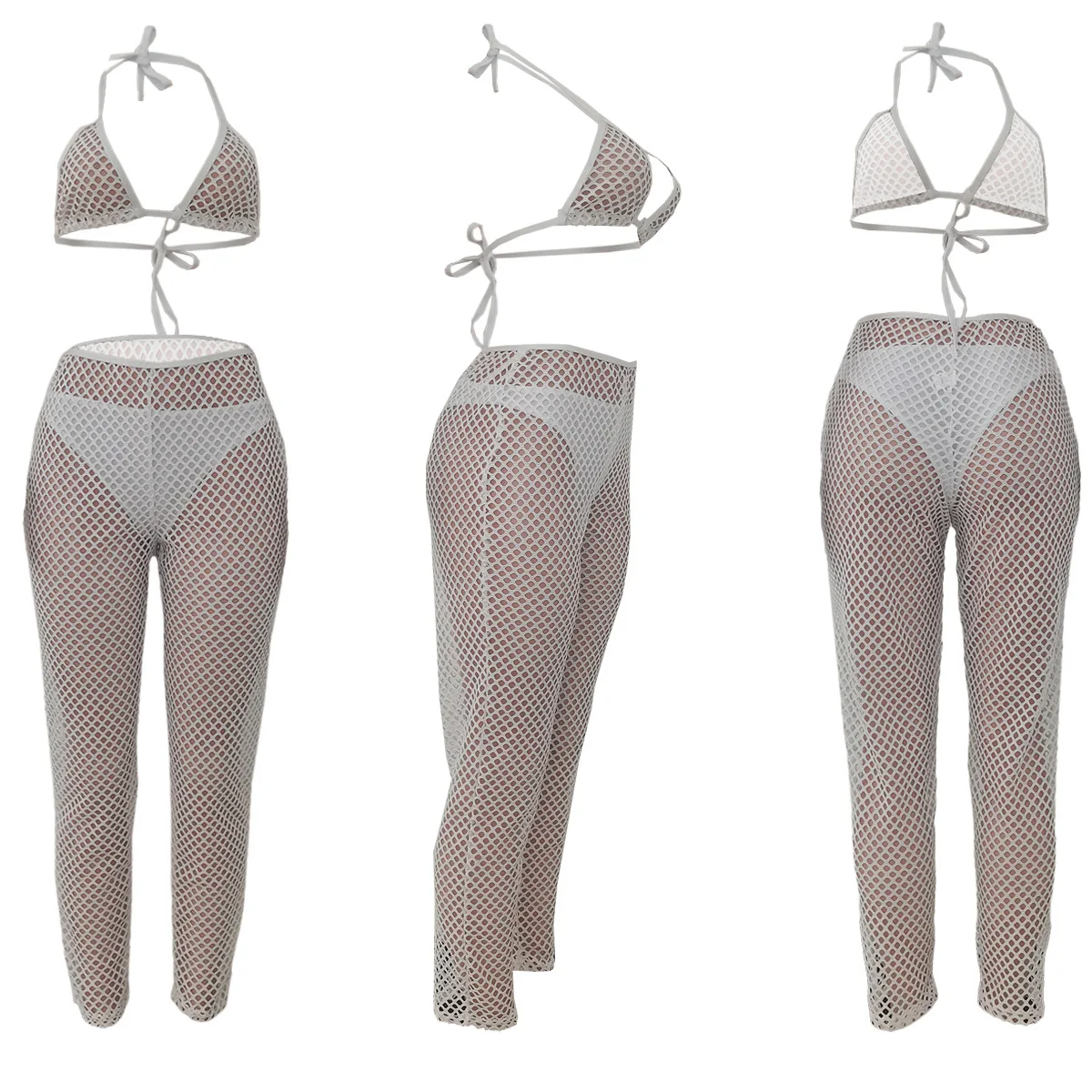 Summer Swimwear & Beachwear Mesh Sexy Beach Wear Ladies Bra Panties pants 3 Piece Set Women Bikinis Outfit With Briefs