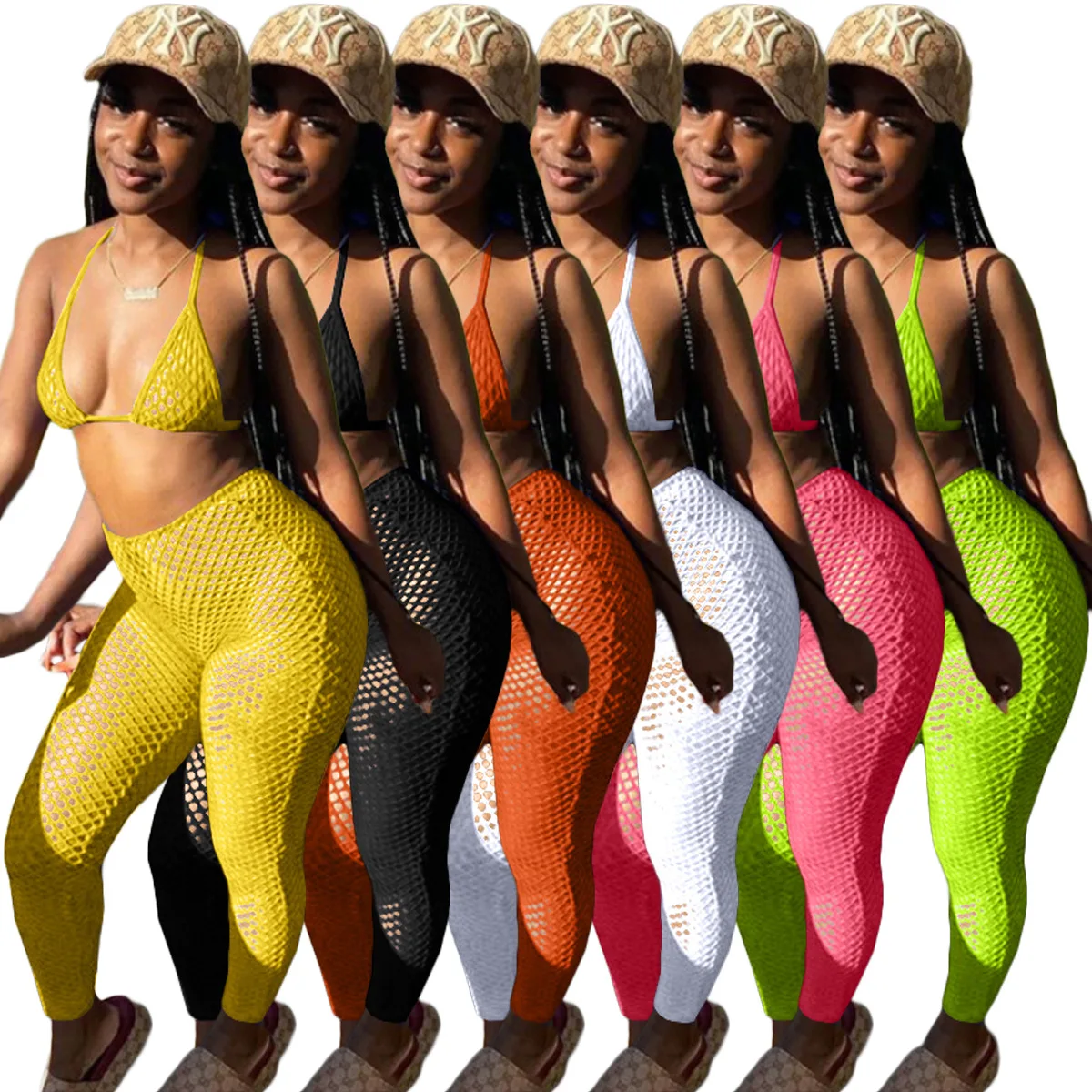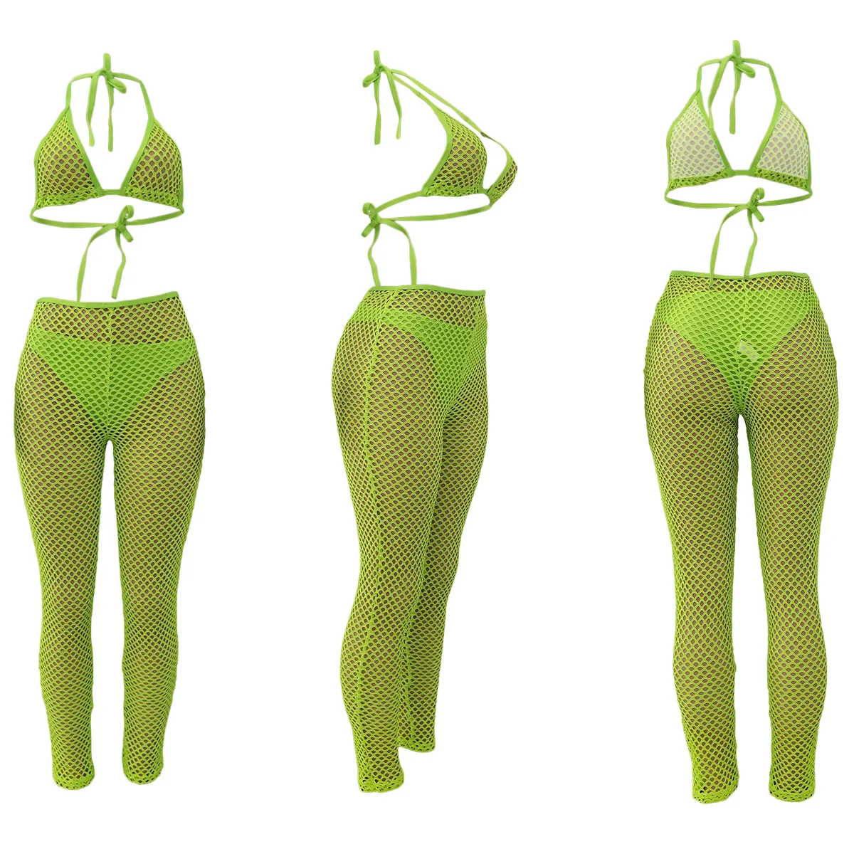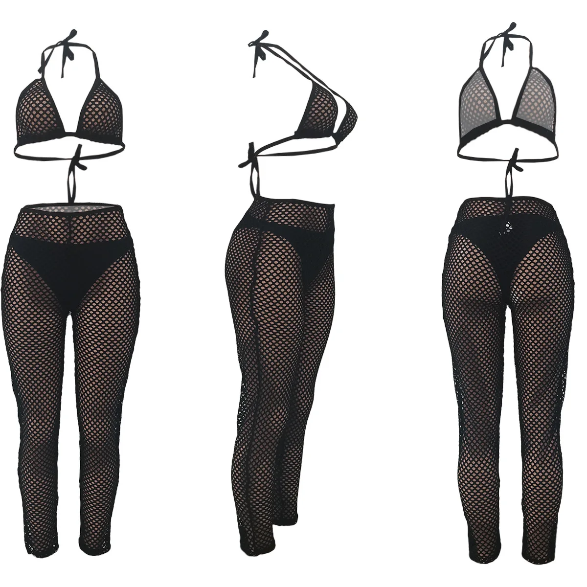 Summer Swimwear & Beachwear Mesh Sexy Beach Wear Ladies Bra Panties pants 3 Piece Set Women Bikinis Outfit With Briefs