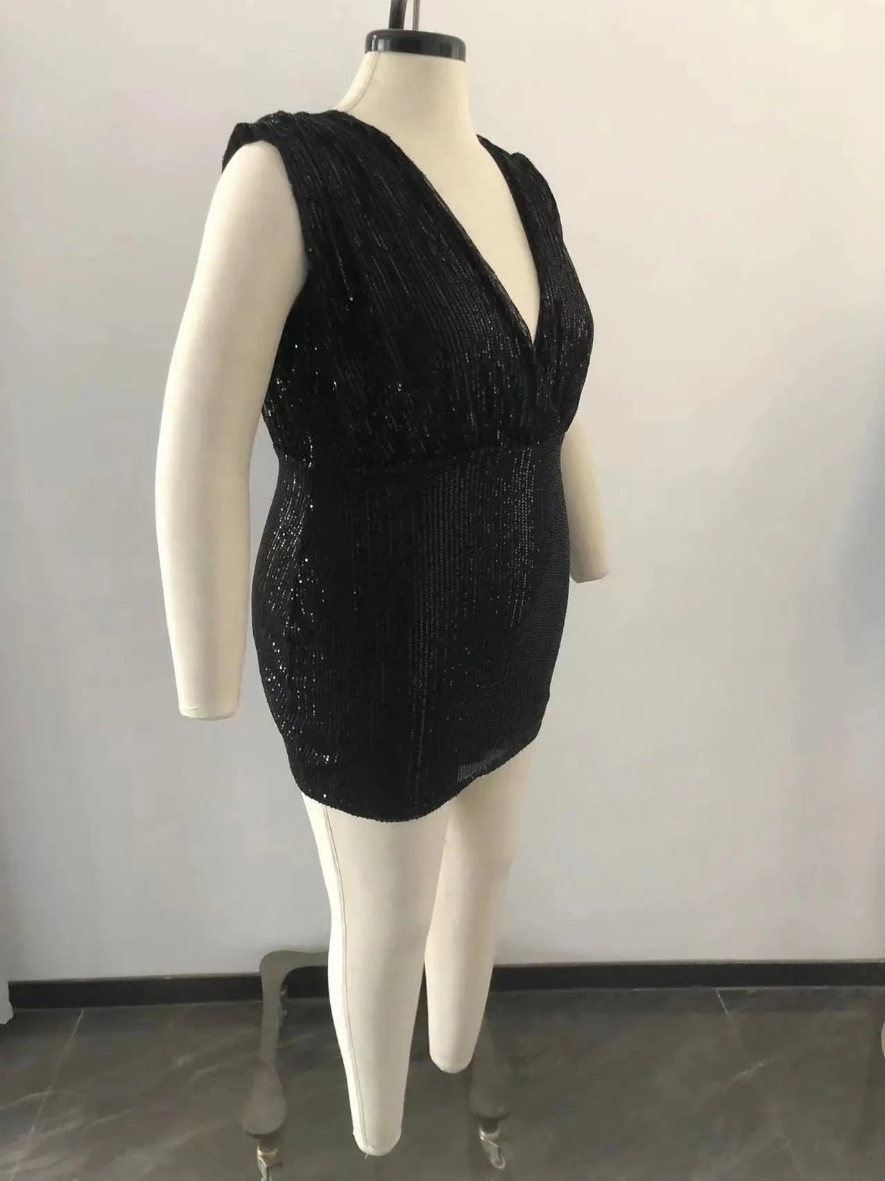 Summer Wear Plus Size Sequins Dress for XL-5XL Women Clothing Solid Sexy V-neck Plus Size Women Dress