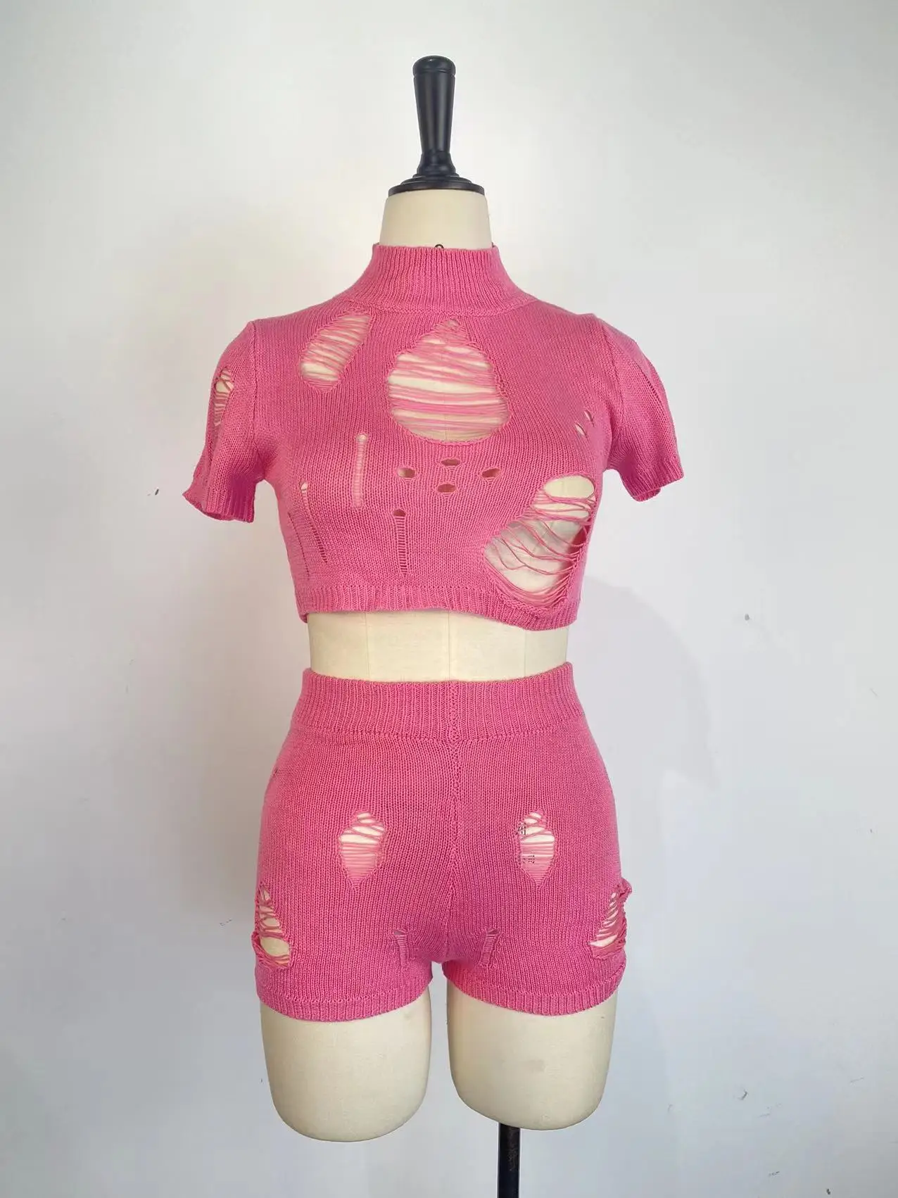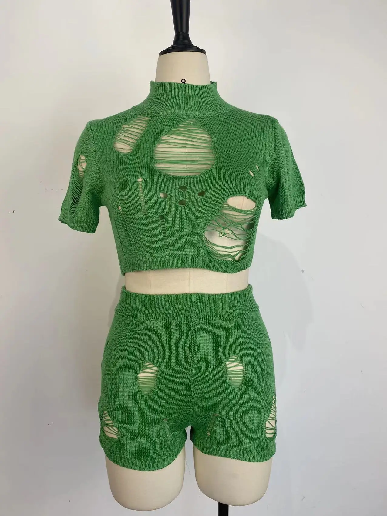 Summer women set 2 pcs beach suit sexy hollow out crochet two pieces shorts knit set