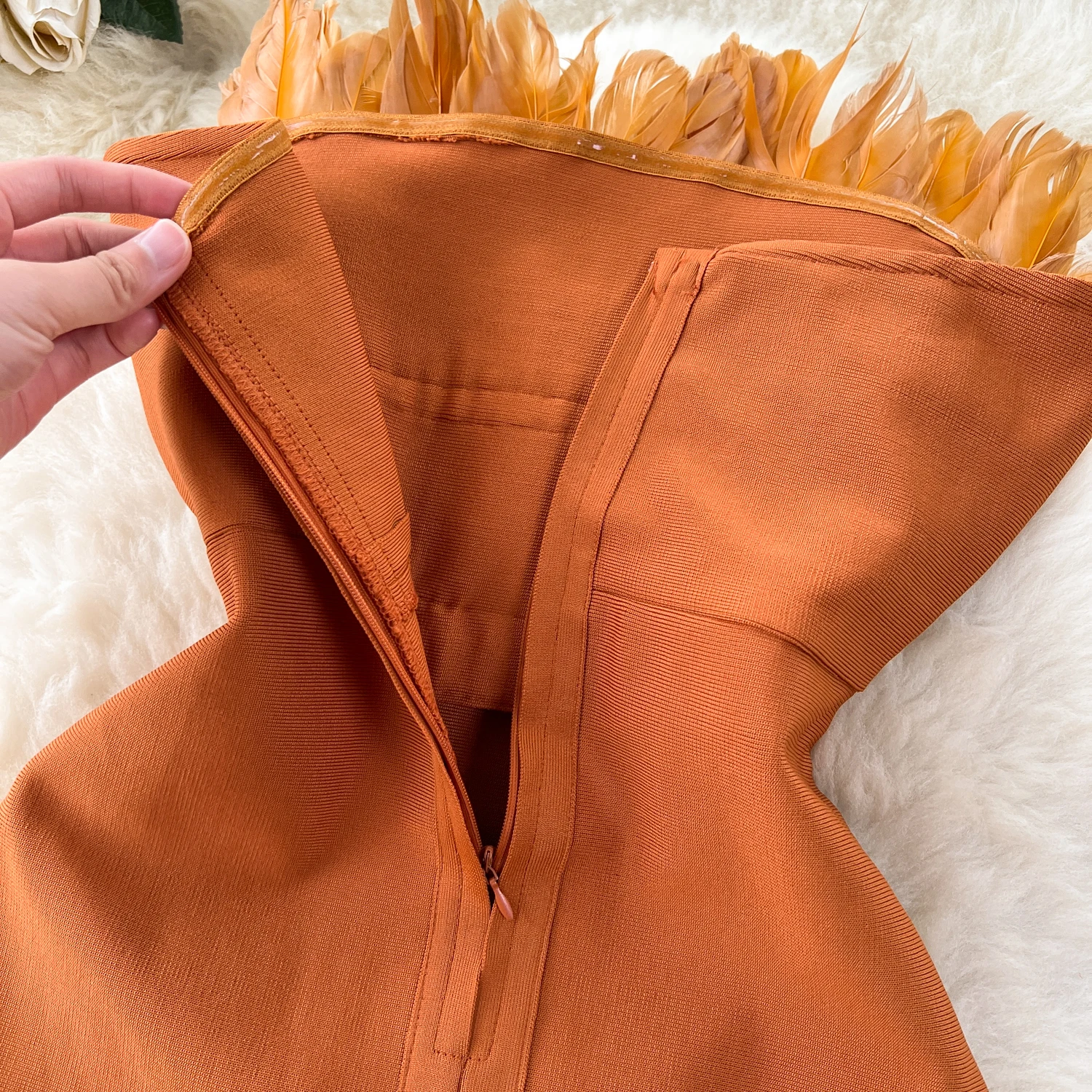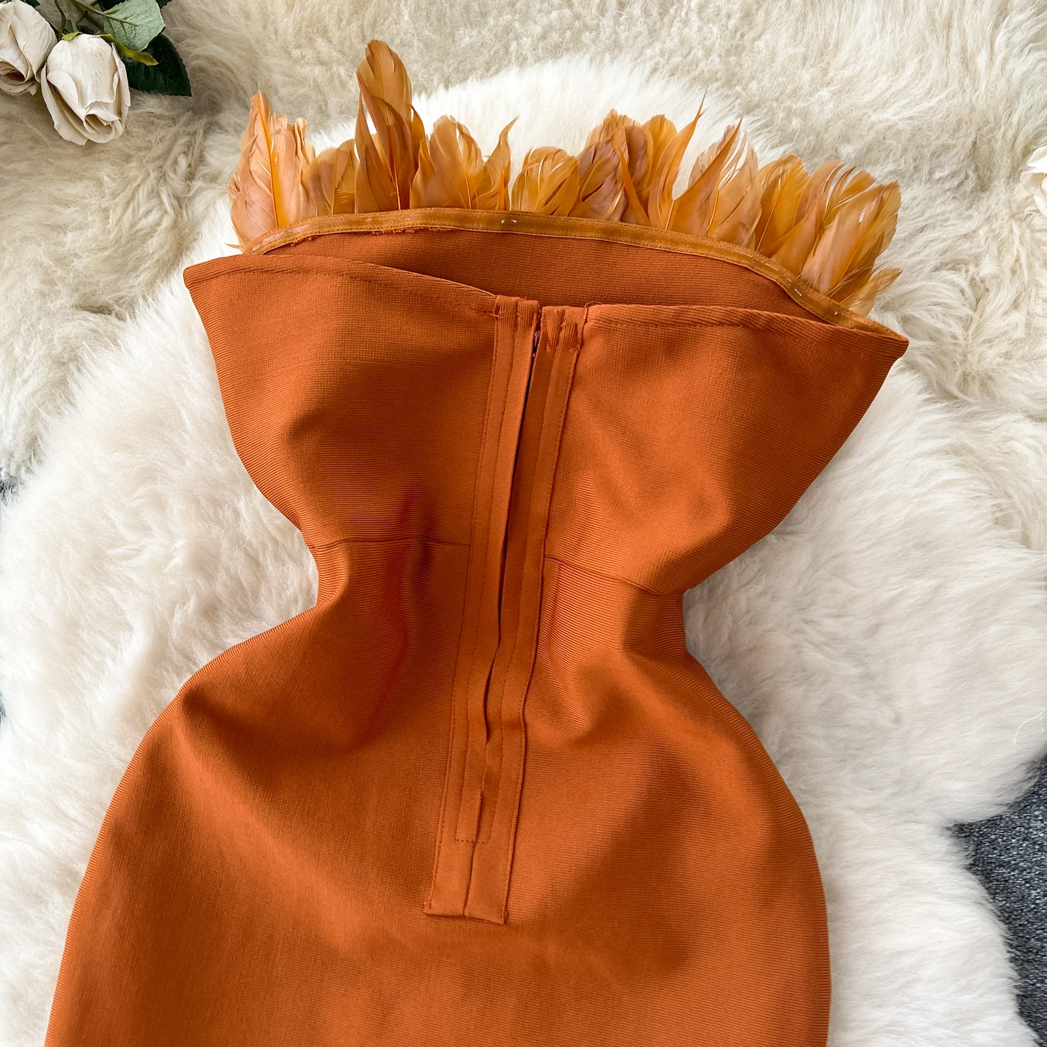 Superior Sense Three-Dimensional Feather Patchwork Strapless Dress Women's Slimming Party Dress