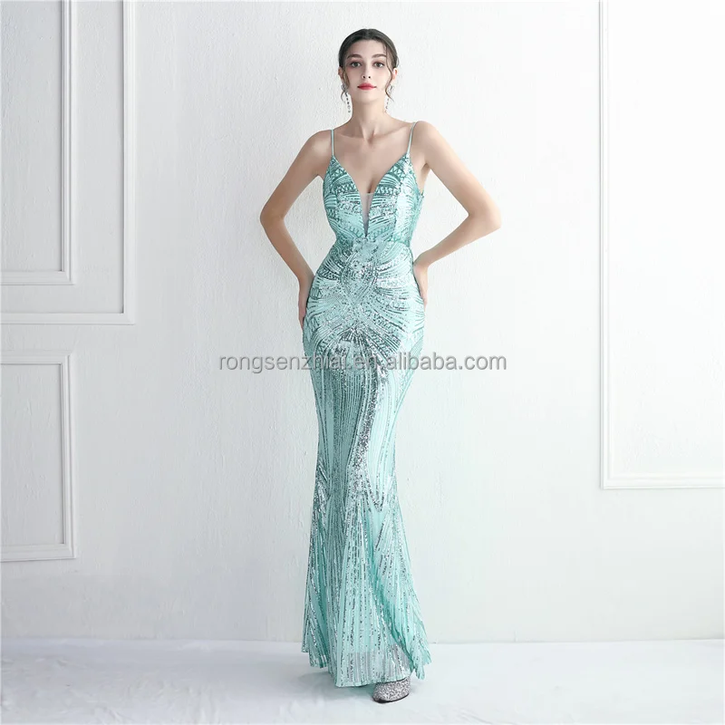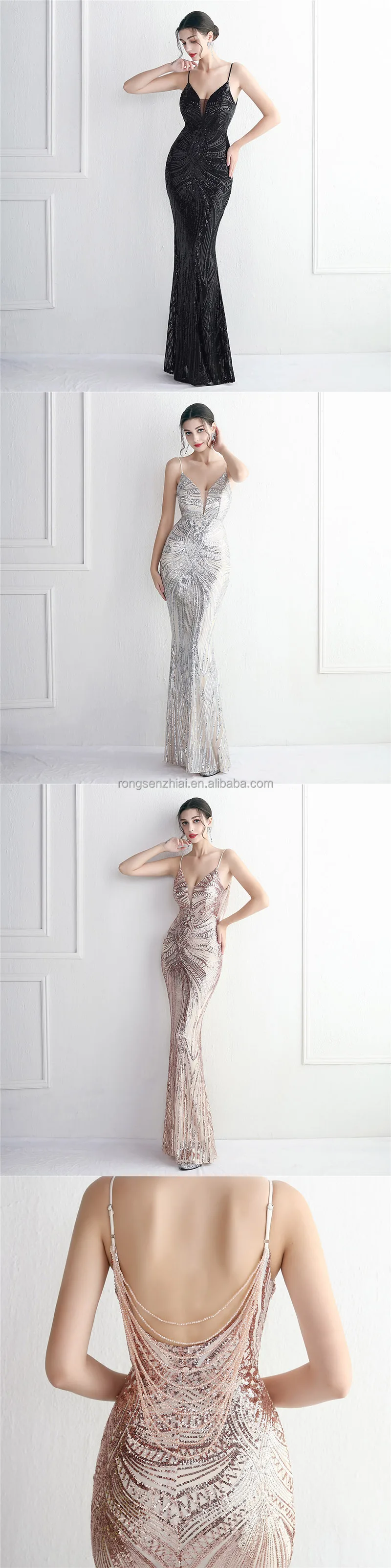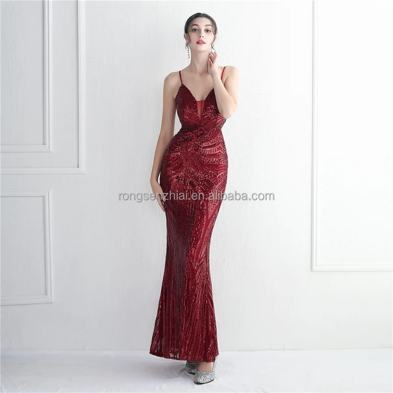 Supplier Elegant Beaded Chains Back Evening Gowns Women Sequin Stretchy Red Elegant Gold Luxurious Formal Evening Party Dresses