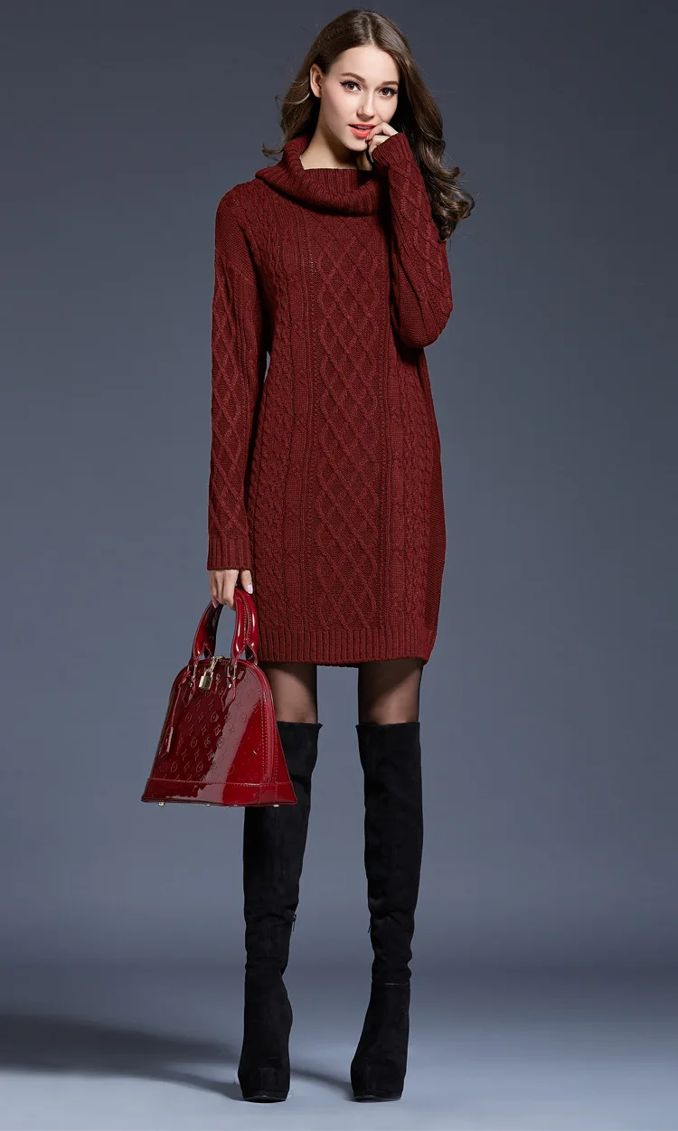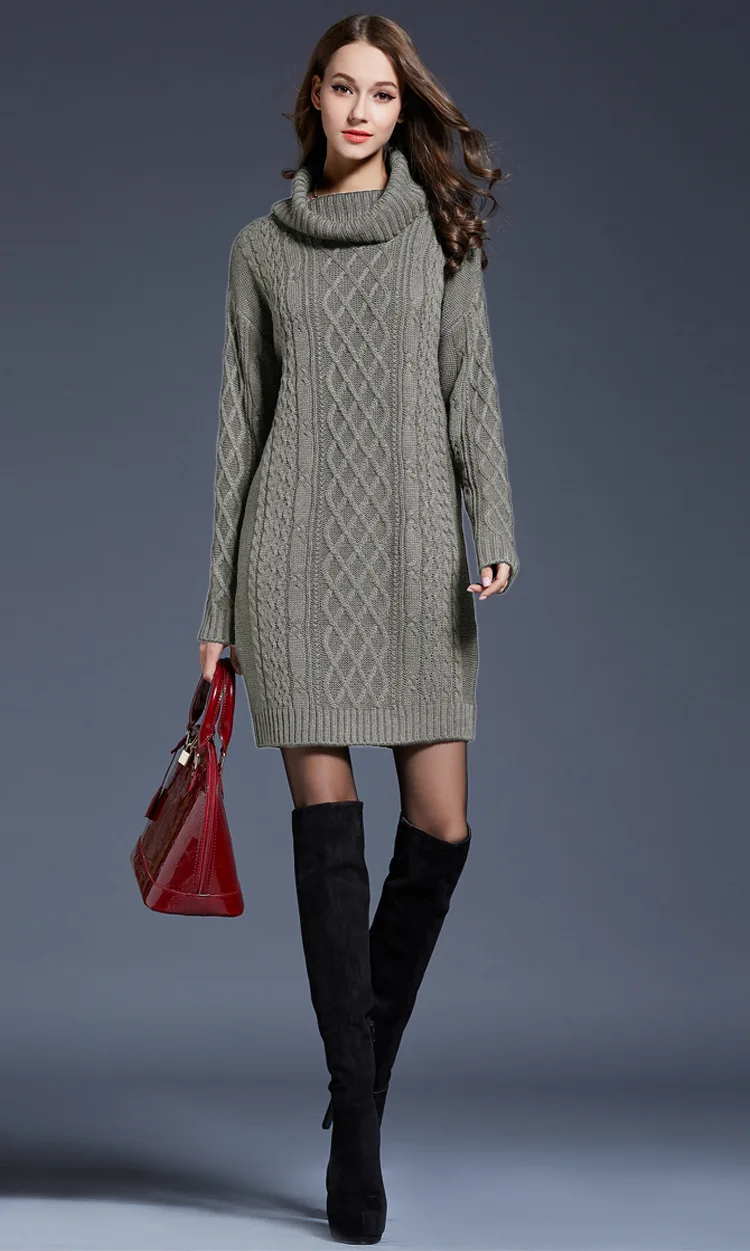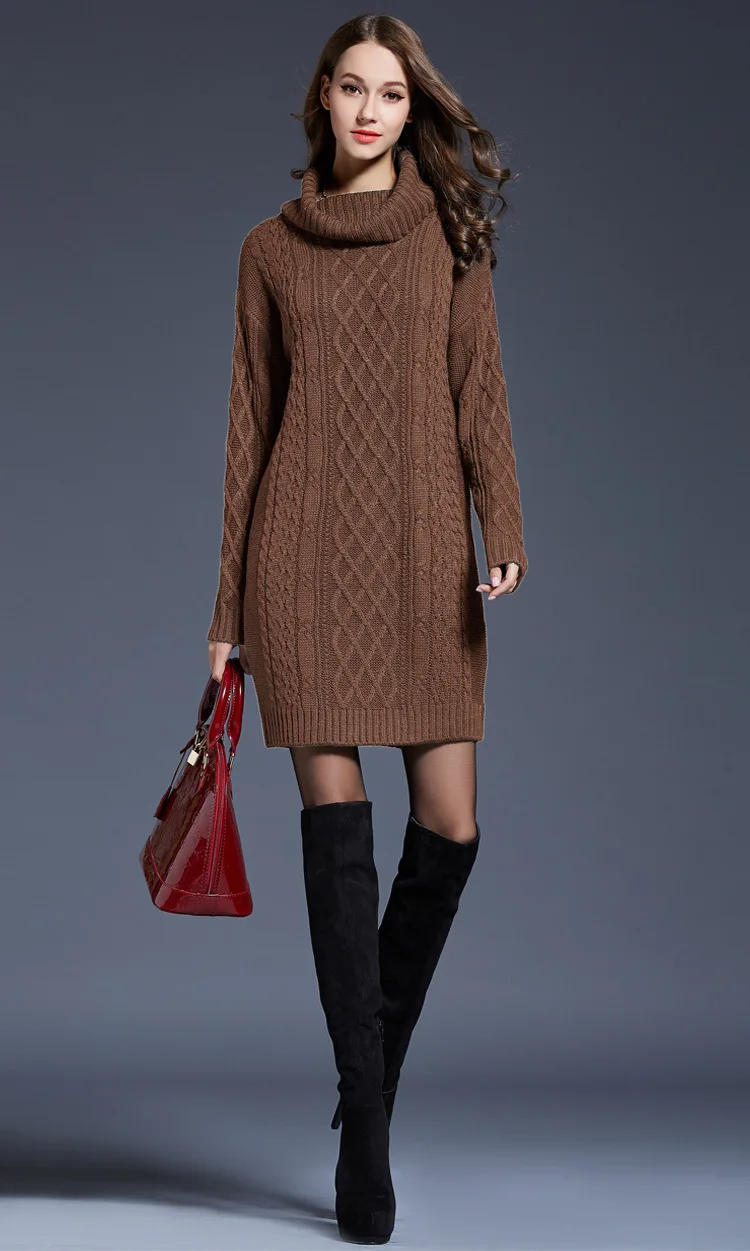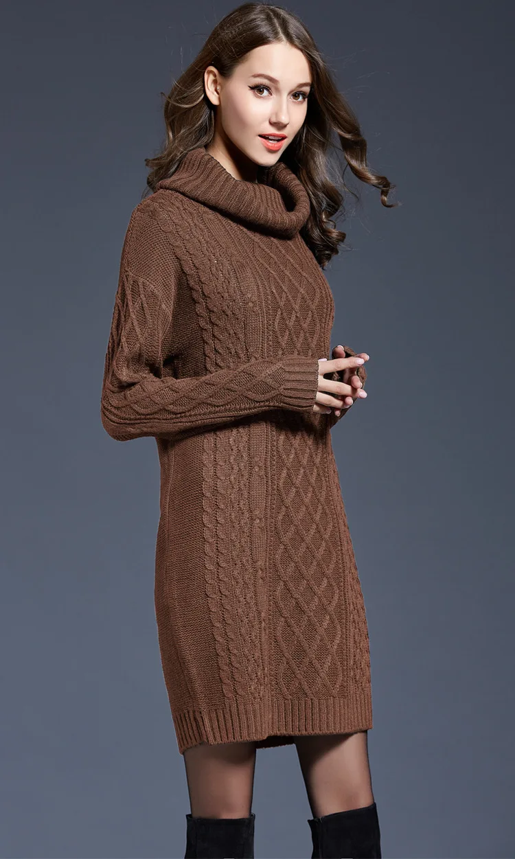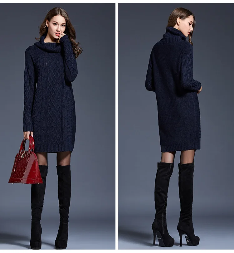 Sweater dress women clothing fall 2023 fashion women turtleneck dresses casual long sleeved women knitted sweater dress