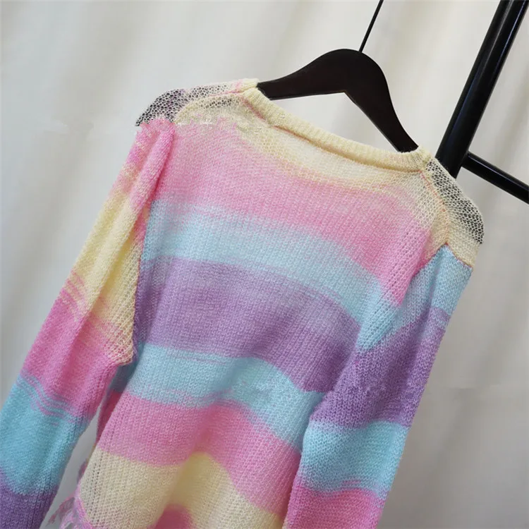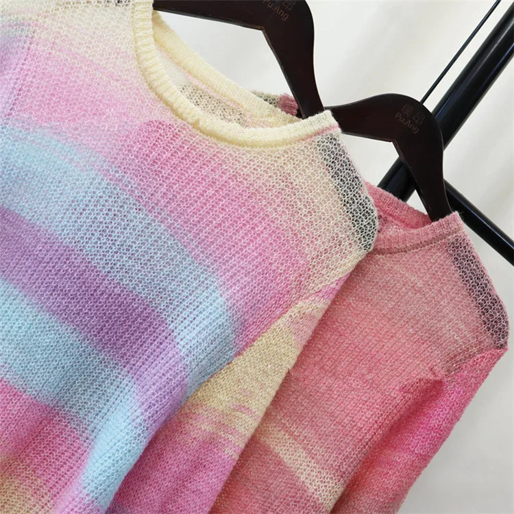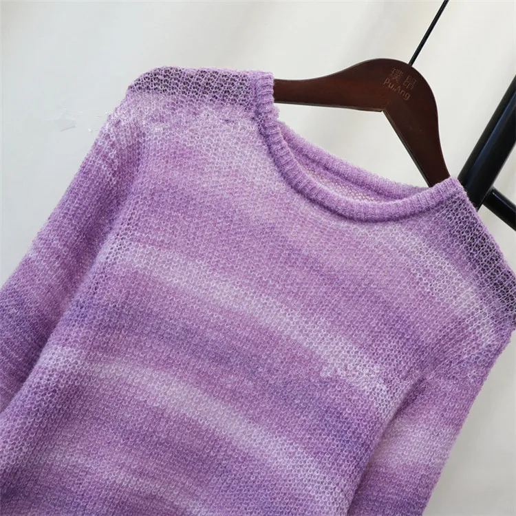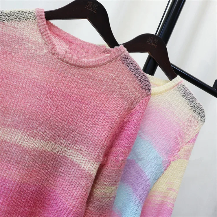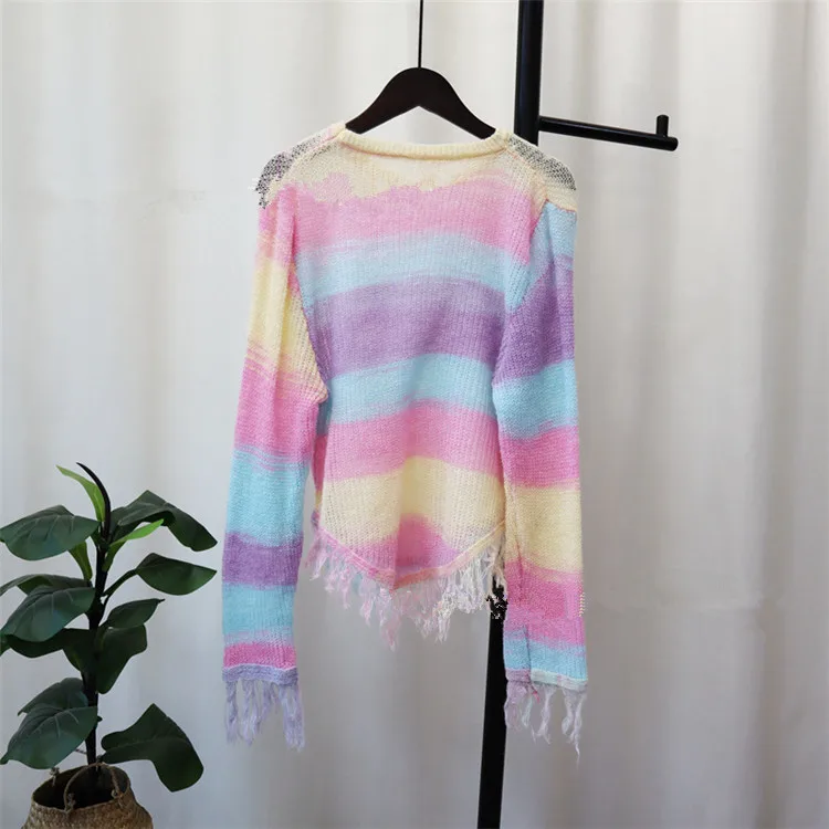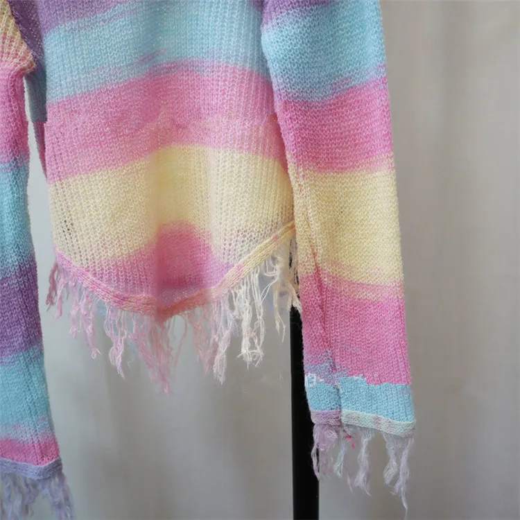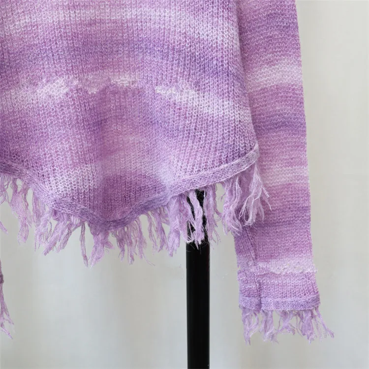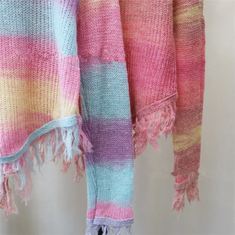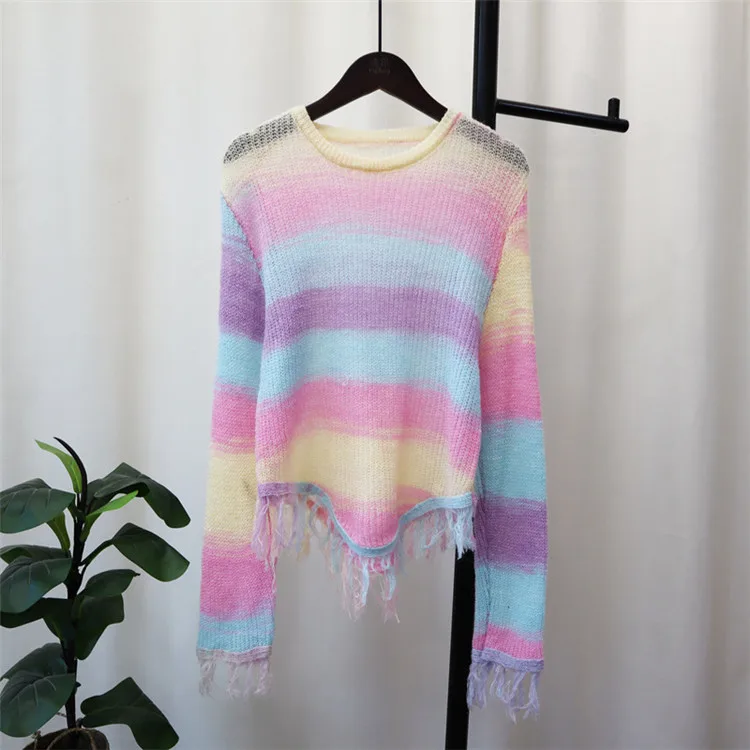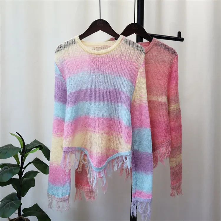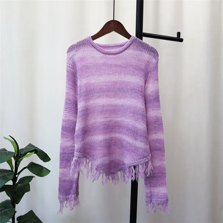 Sweet Chic Women's Pullover Sweater Tassels Knitted O-neck Gradient Loose Design Female Sweaters