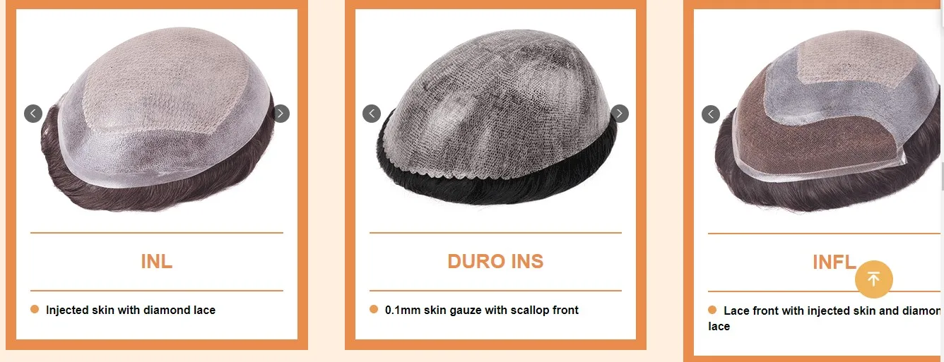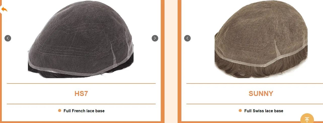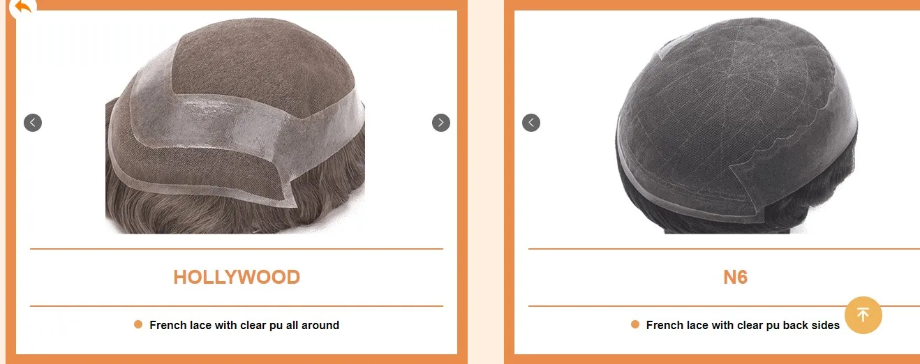1. The French Lace mens hair toupee hairpiece is made up of French Lace and PU, Including Full french lace toupee hair systems, French Lace front with PU toupee hair system, French lace with PU toupee hair system, Australian lace with PU toupee hairpiece,their weight is very light, the lace part fits the top of the head, it feels the most comfortable to wear, you will hardly feel it when you wear it.