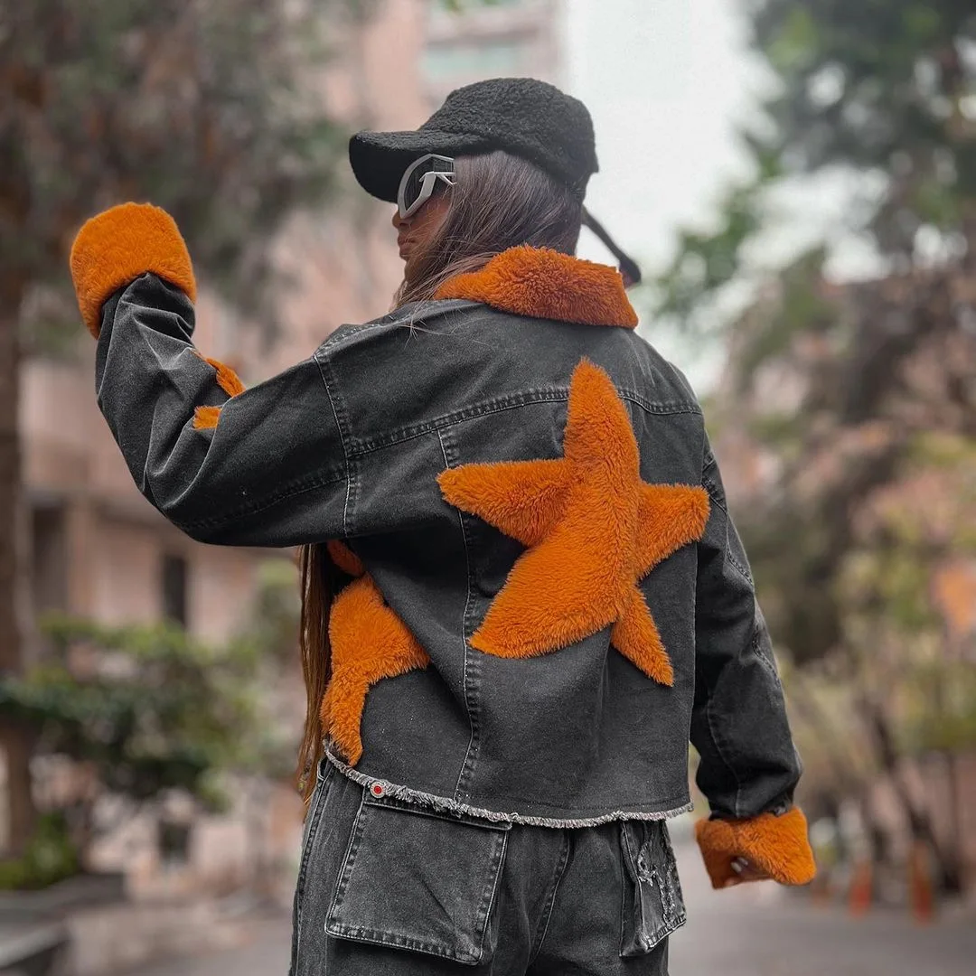 T2905 Women Jacket 2024 Patchwork Pattern Button Jacket Vintage Girls Denim Jacket