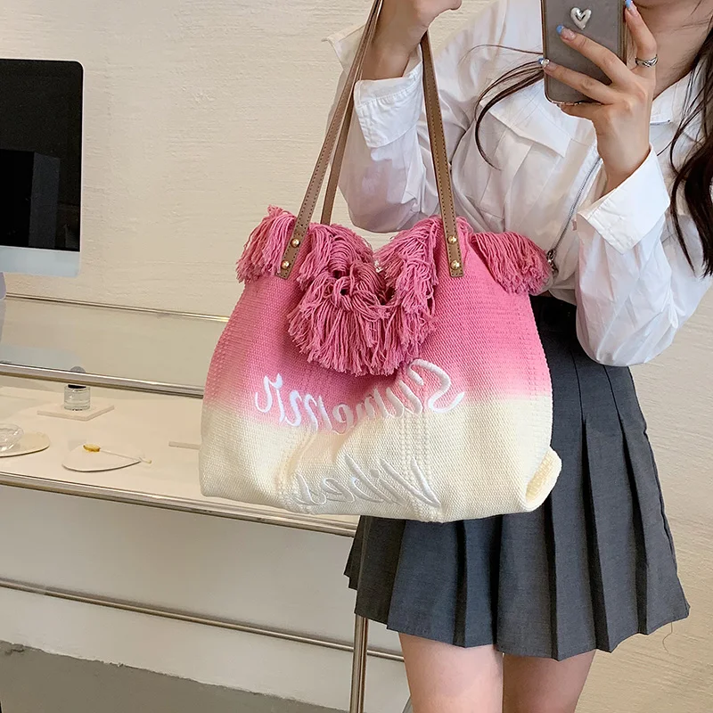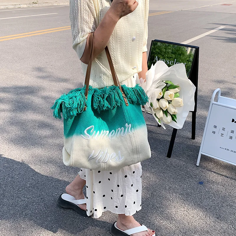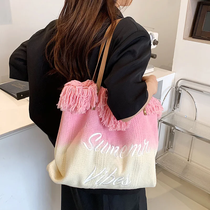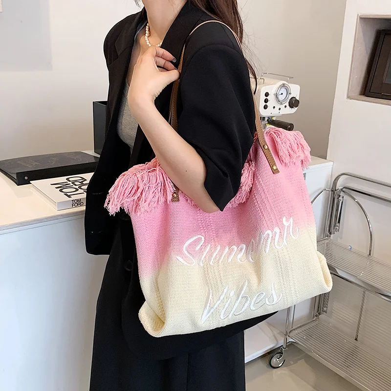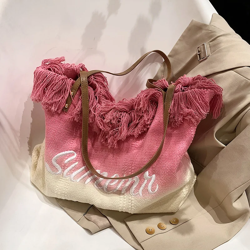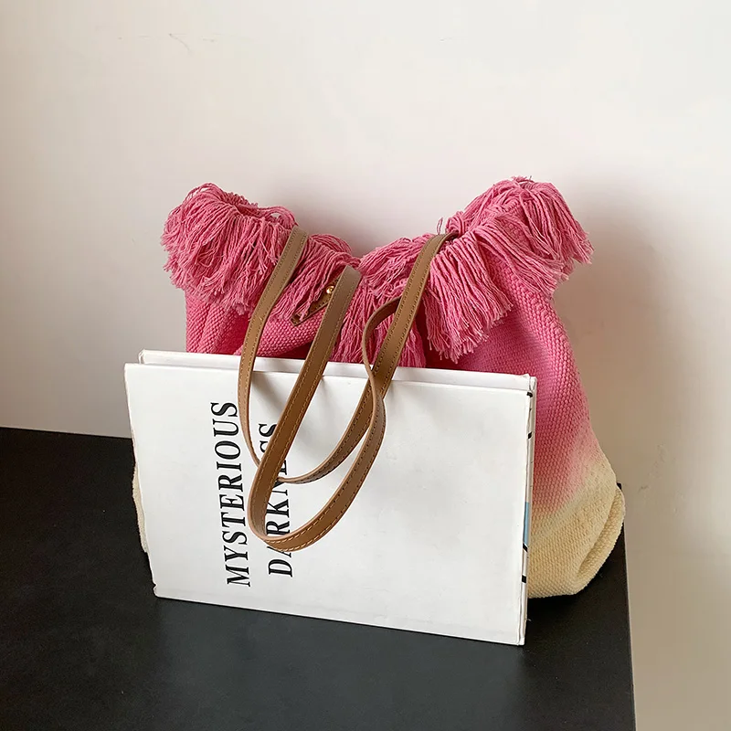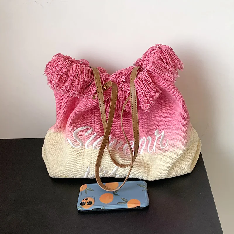 Tassel Big Hand Bags Ladies Shoulder Large Capacity Textile Tote Bags Women Handbags Ladies Luxury 2022