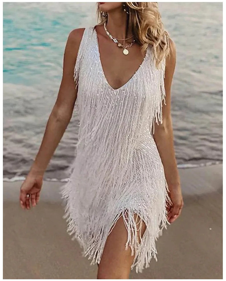Tassel Summer Dresses Female Halter Backless Casual Club Mini Dress Sexy Fringe Bandage Bodycon Party Dress Vestidos