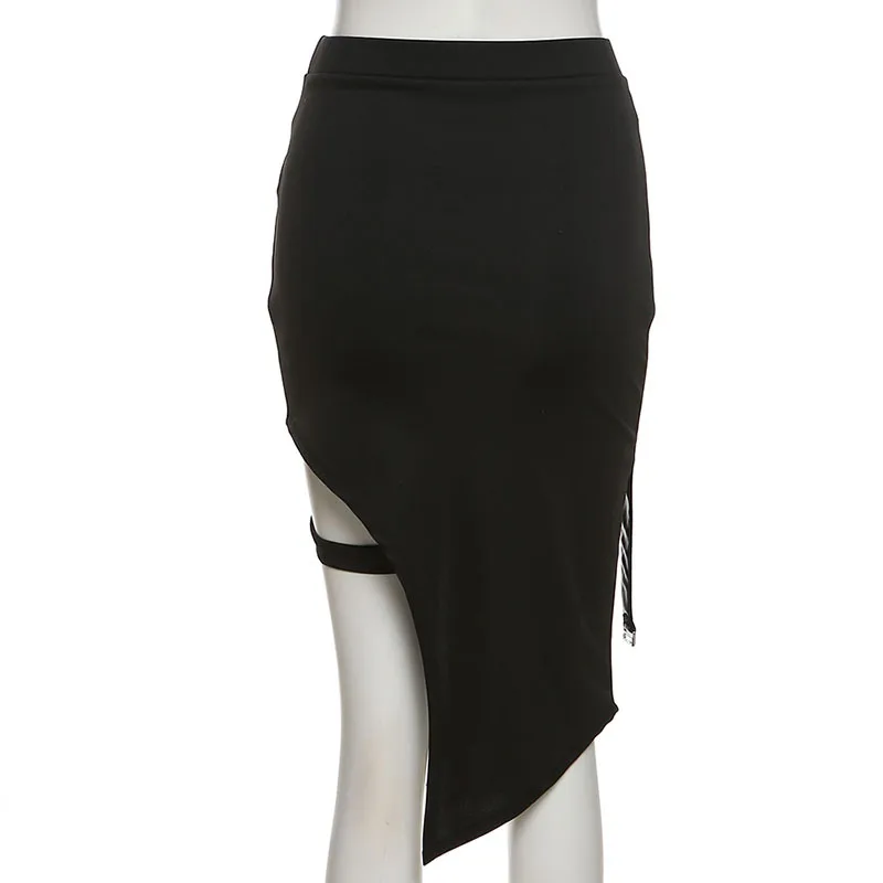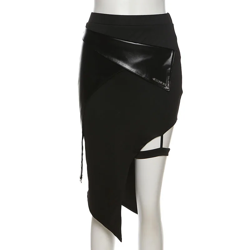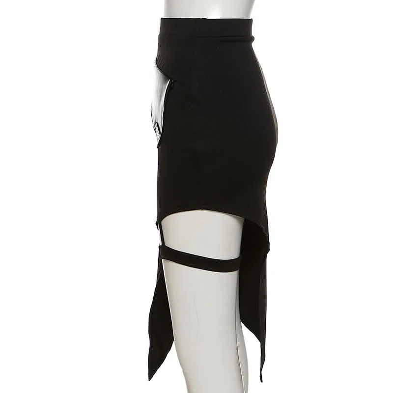 Techwear Gothic Patchwork Sexy Mini Skirts Women Grunge Irregular Hem High Waist Cargo Skirt Hip Hop Black Summer 2022