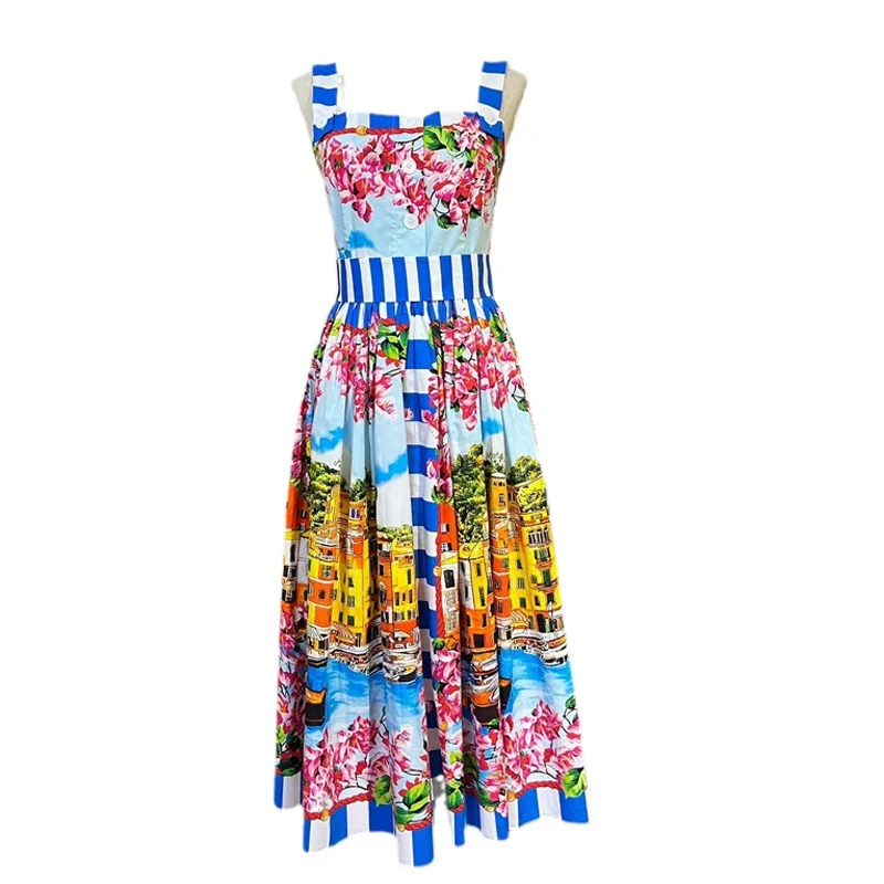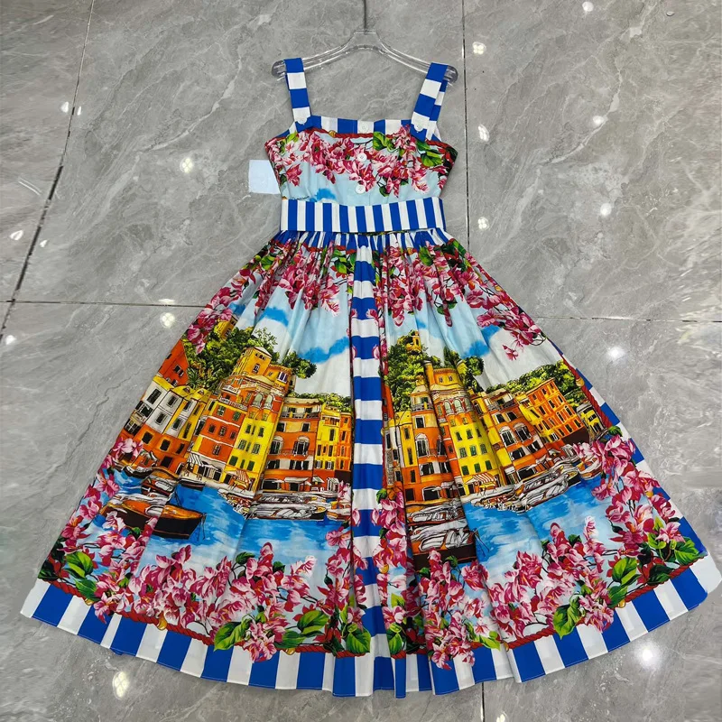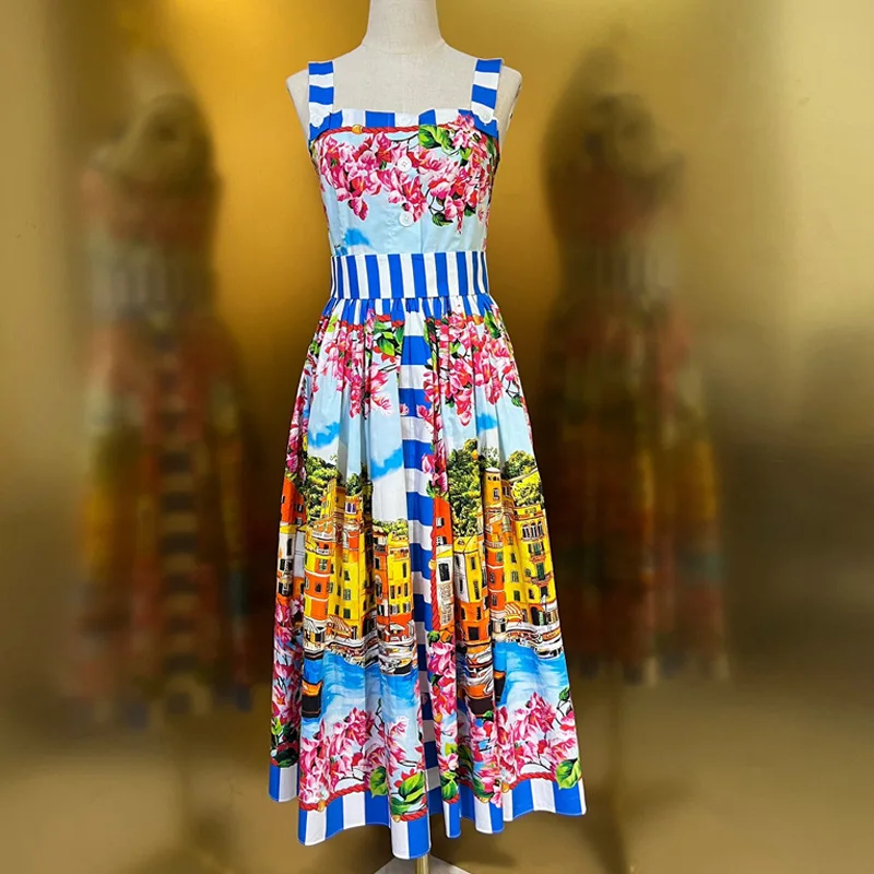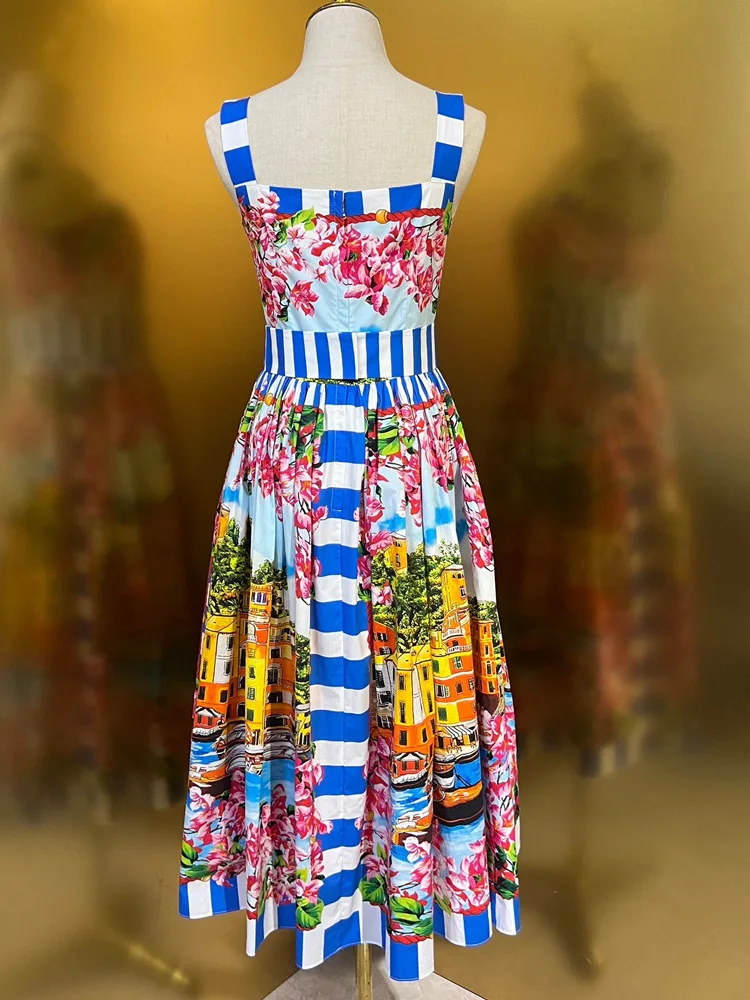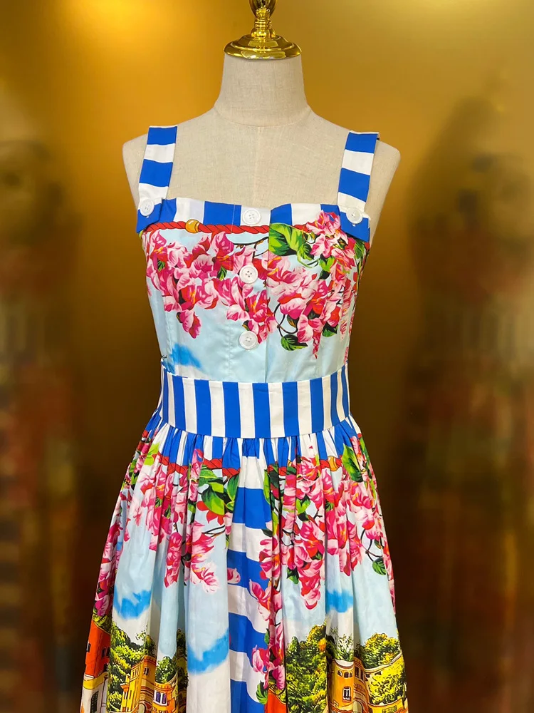 Temperament Elegant Sexy Casual Dresses 2023 Fashion Blue Striped Print Sleeveless Elastic Halter Women's Dresses Autumn Dress
