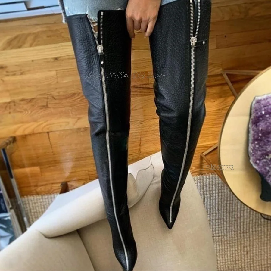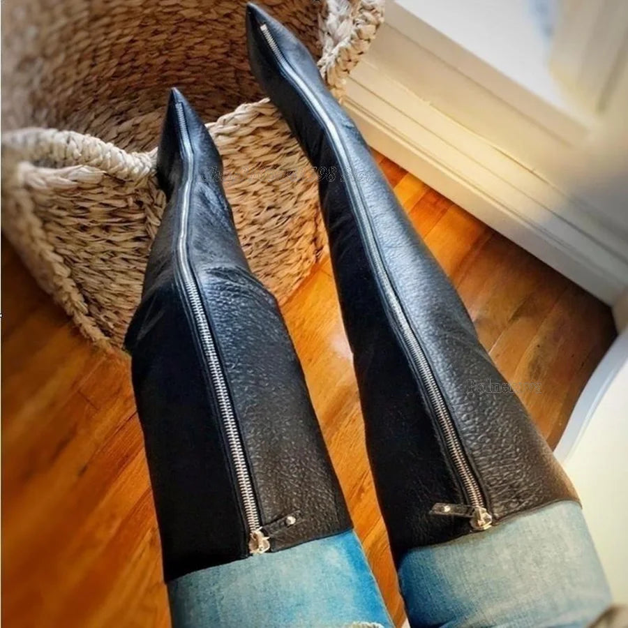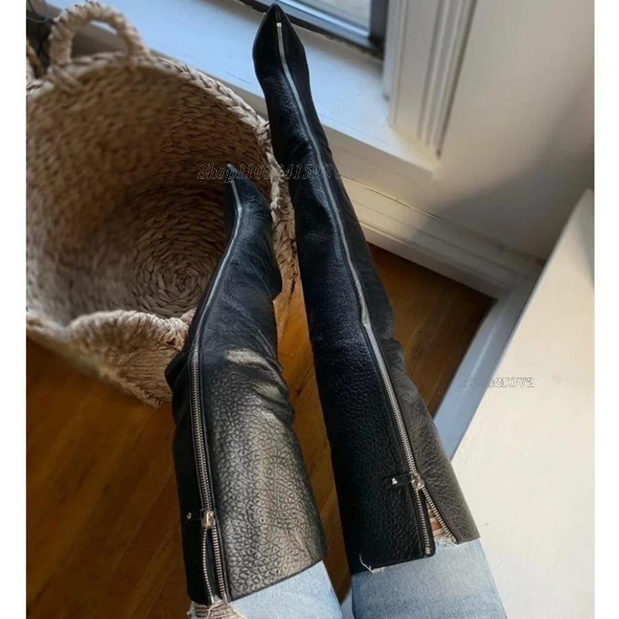 Textured Leather Boots for Women Knee High Sexy Pointed Toe Zip High Heels Autumn Winter Black 2023 New Zapatos Para Mujere