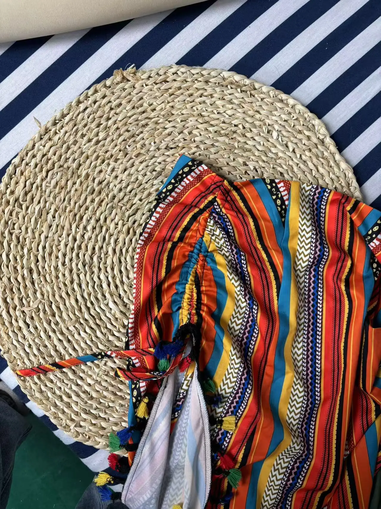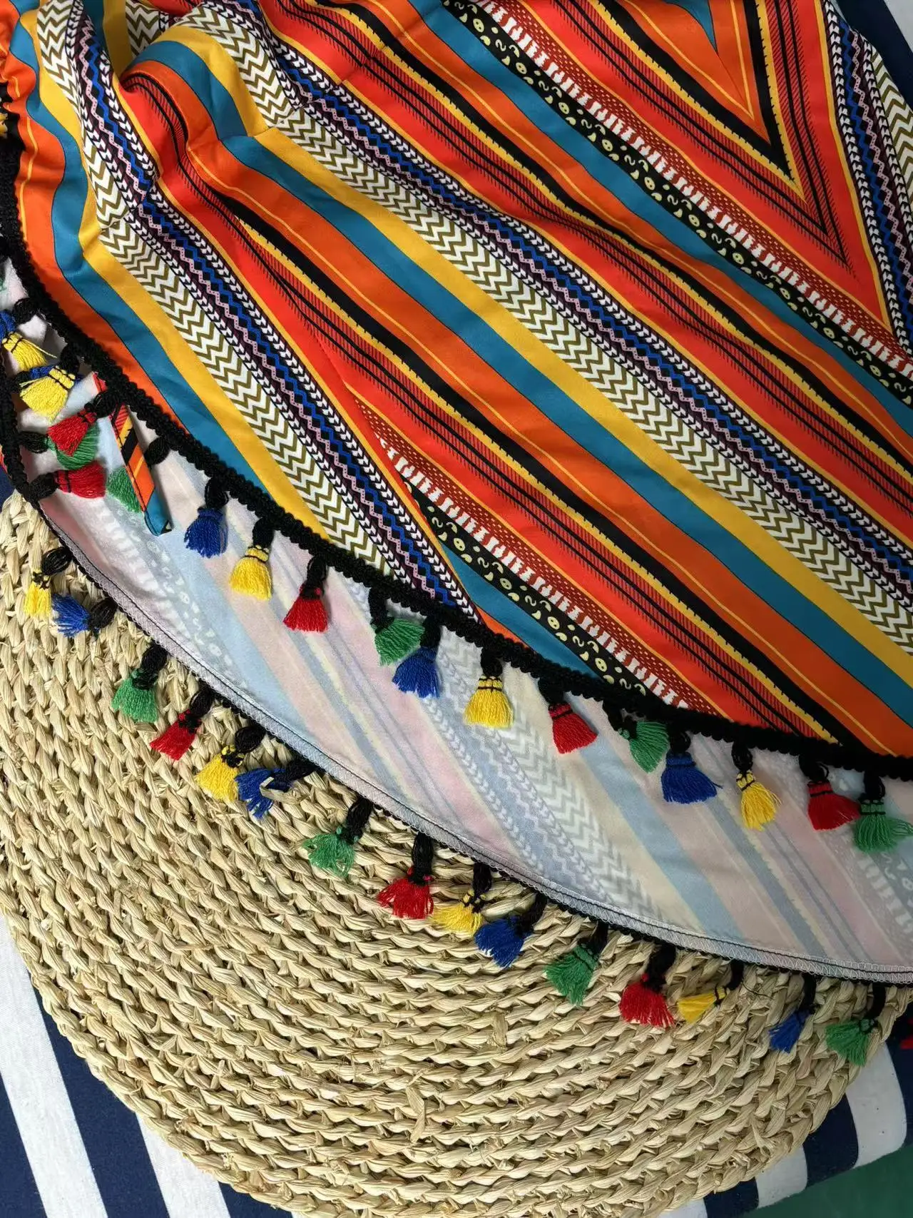 The 2025 Summer Music Festival Women's Pleated Skirt Features Color Blocks Stripes And Asymmetrical Ruffled Decorations