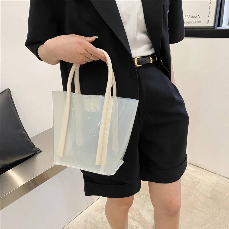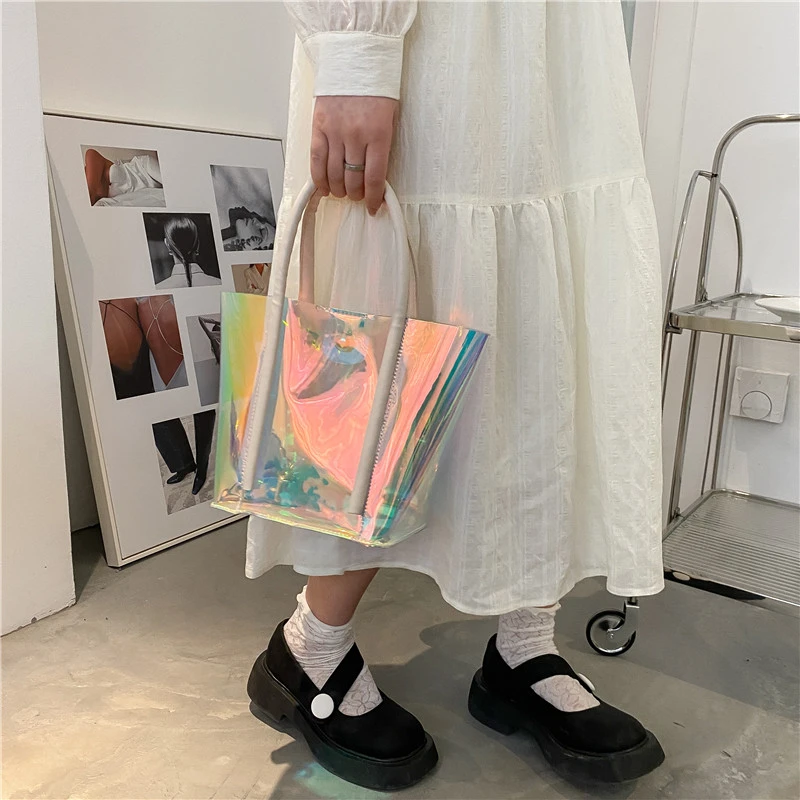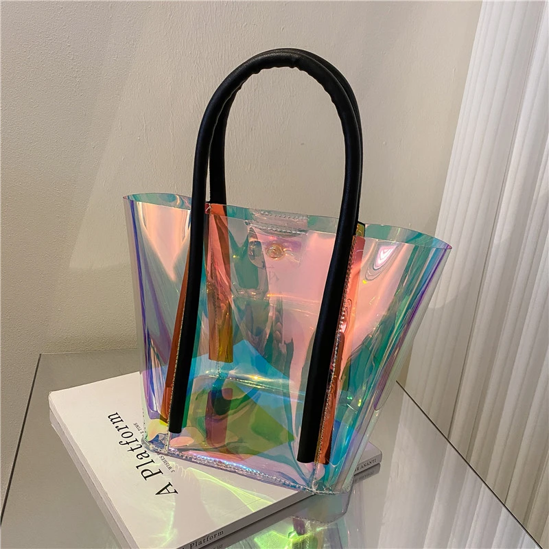 The latest fashion PVC handbags 2022 young lady transparent Jelly tote Bags lady laser purses for women
