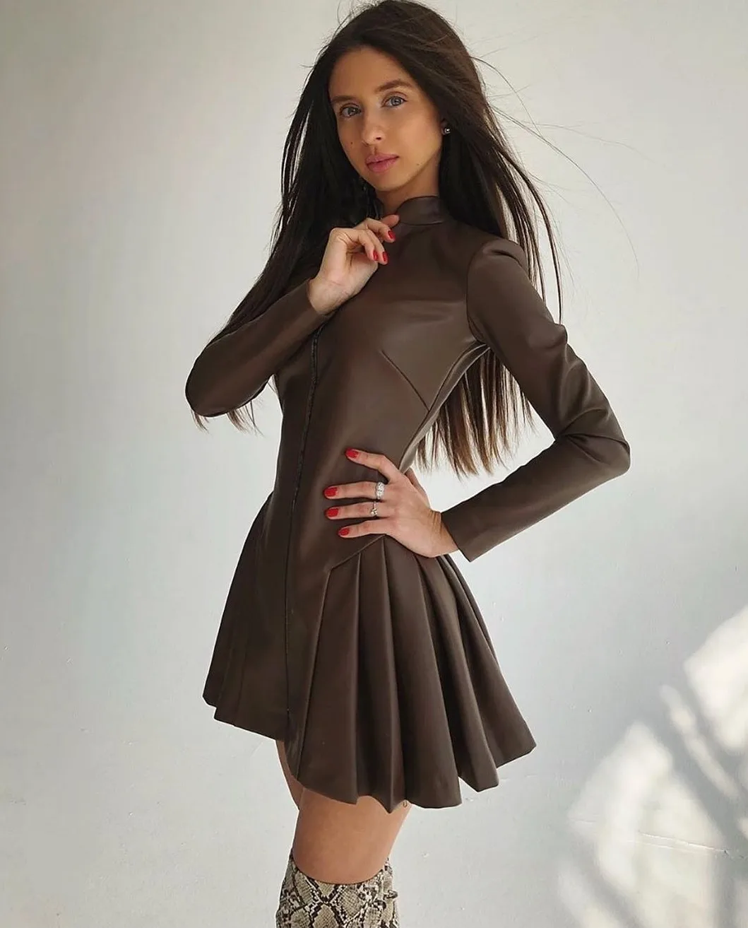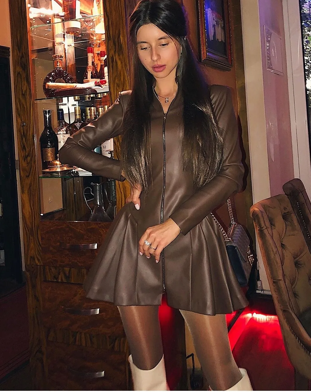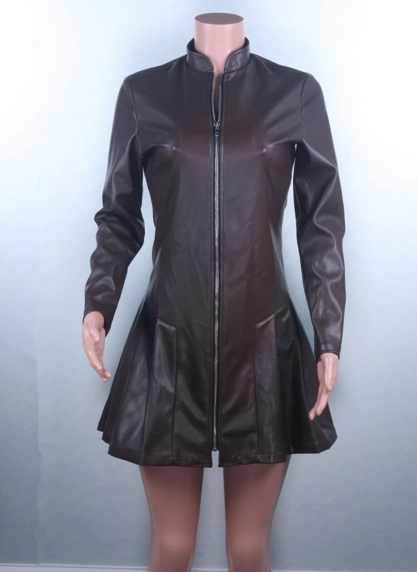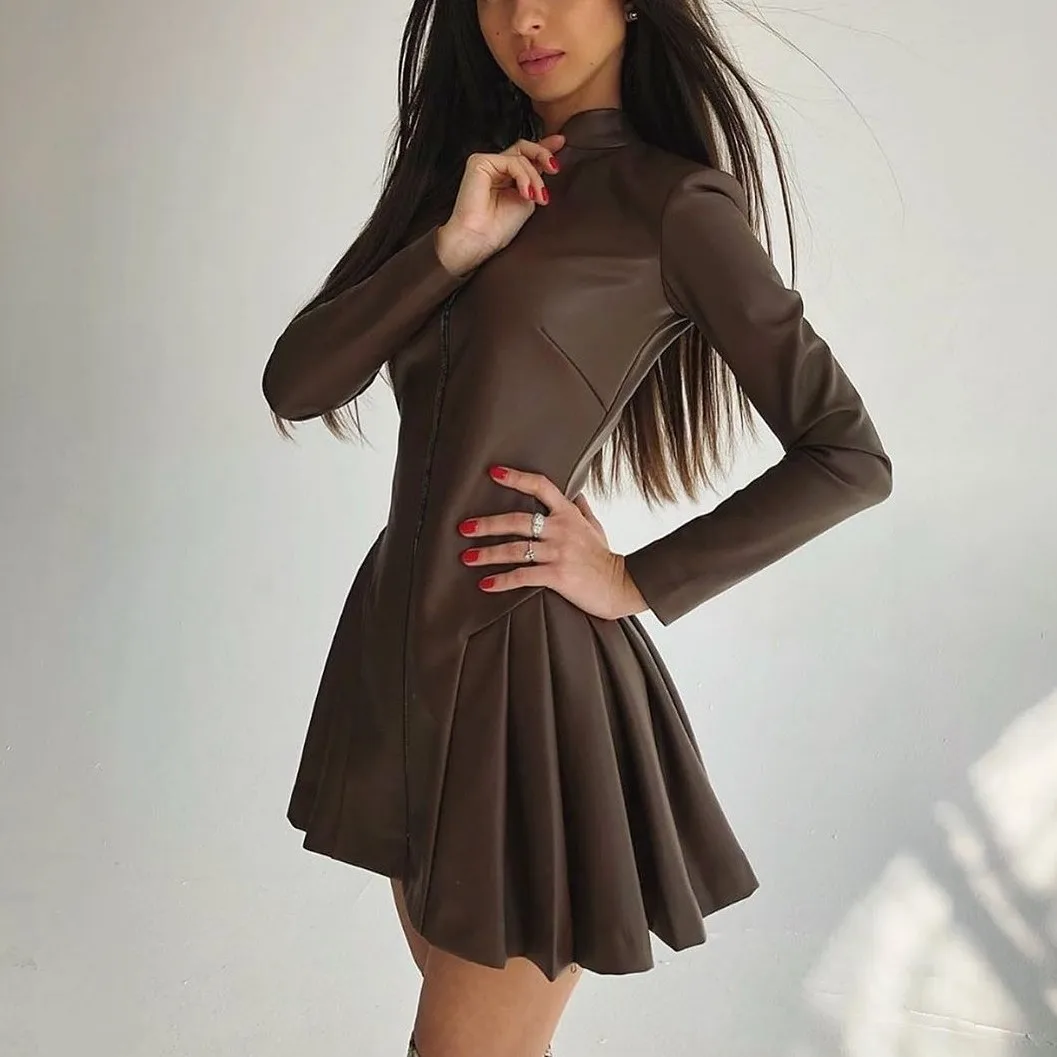 The new autumn/winter 2022 outfit is a solid-color slim sexy leather skirt with pleated zipper