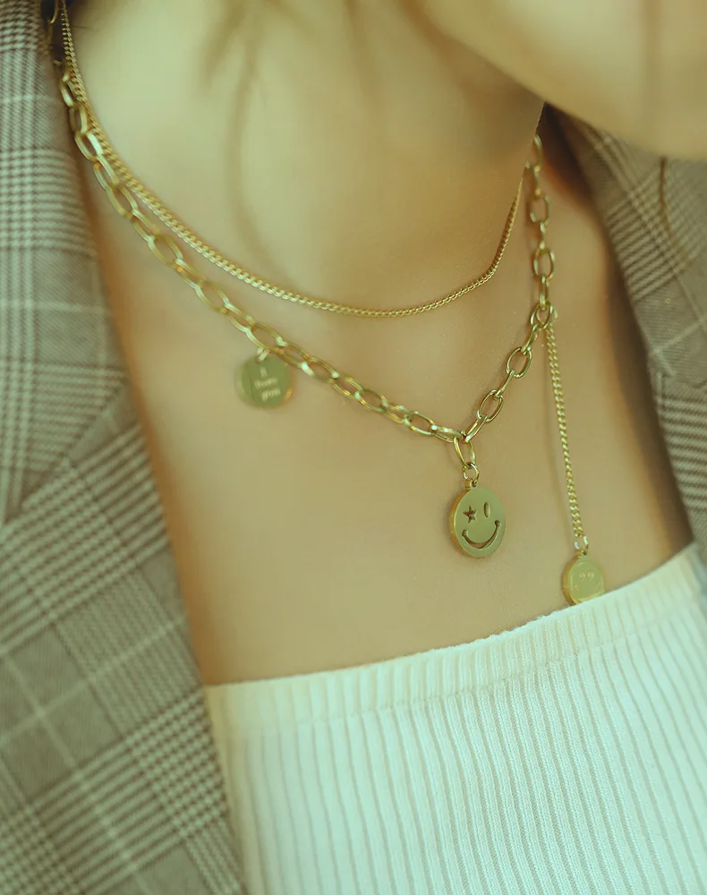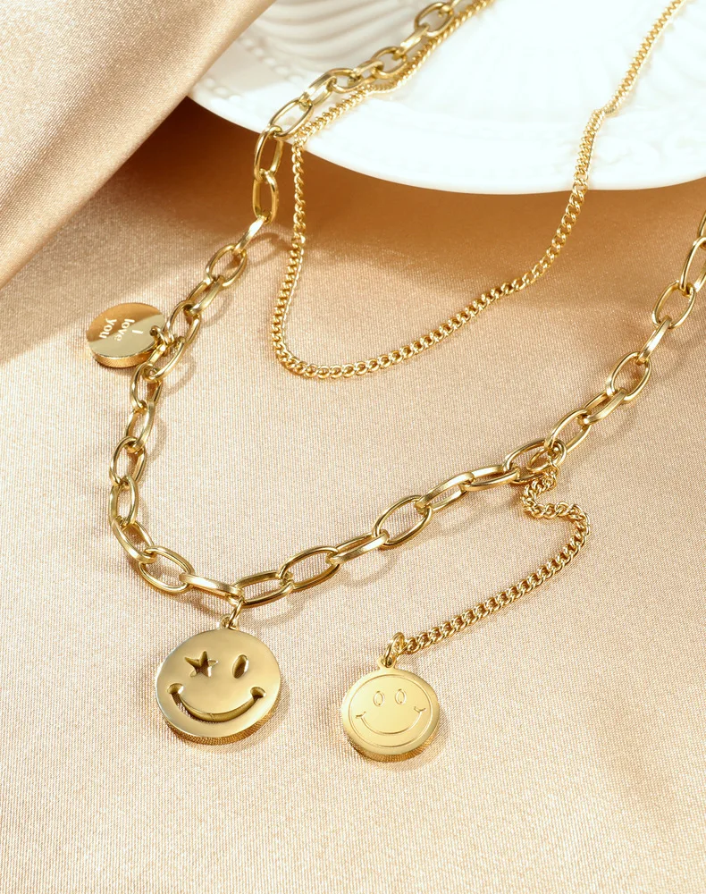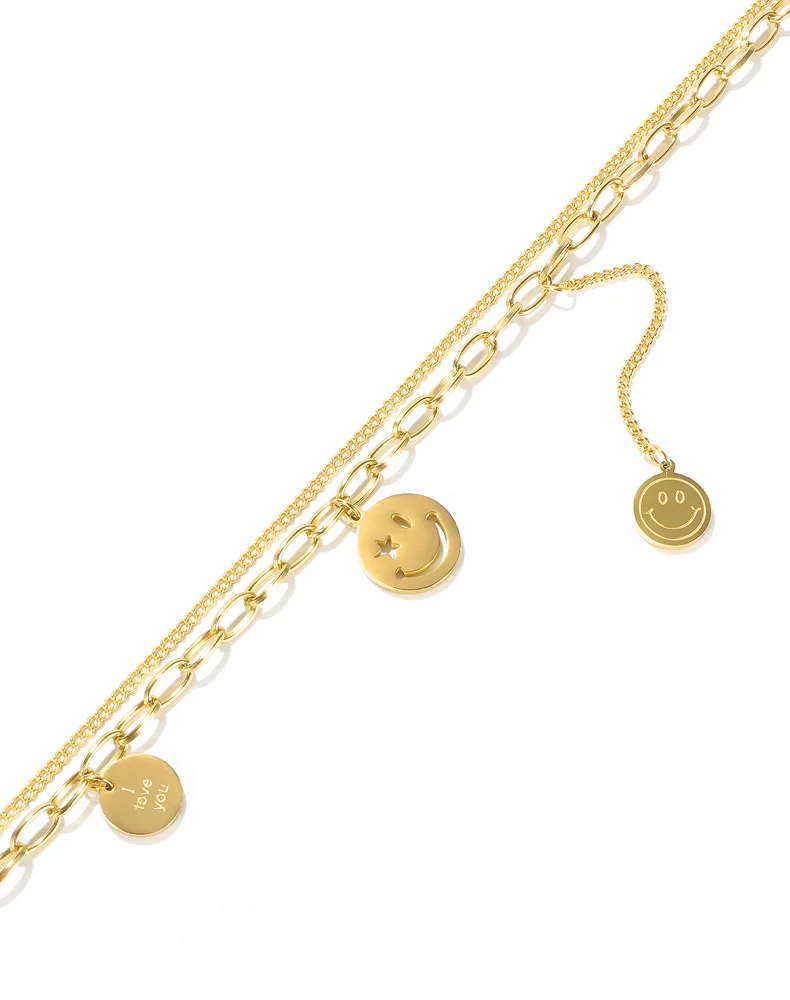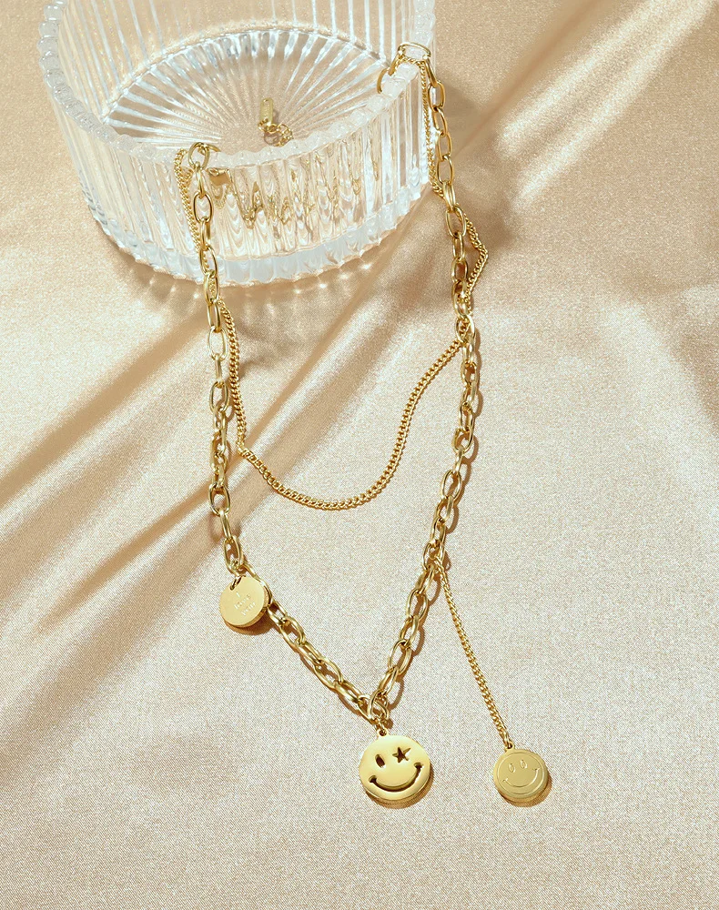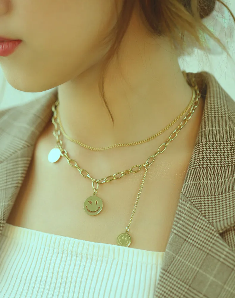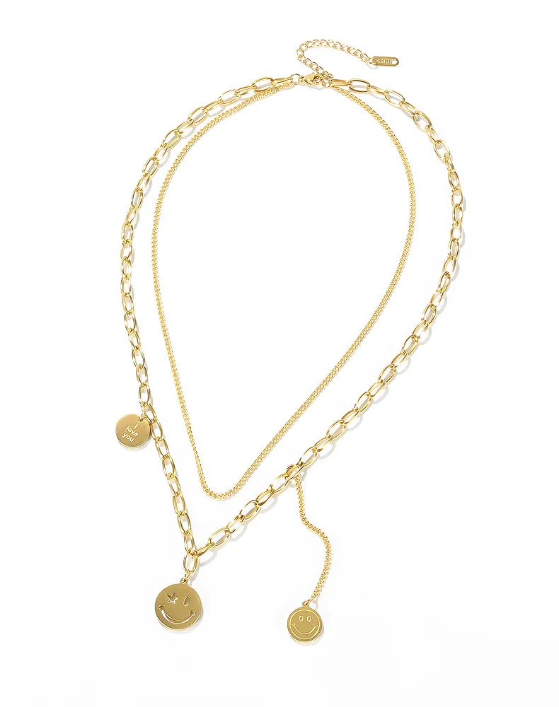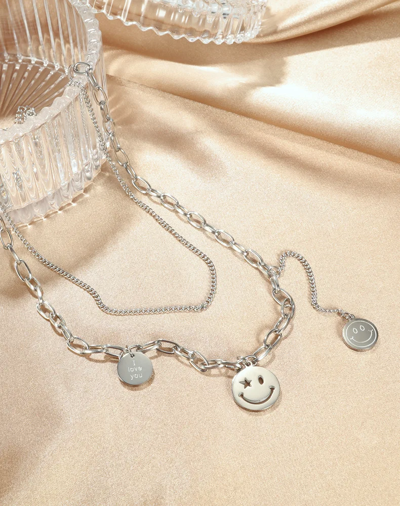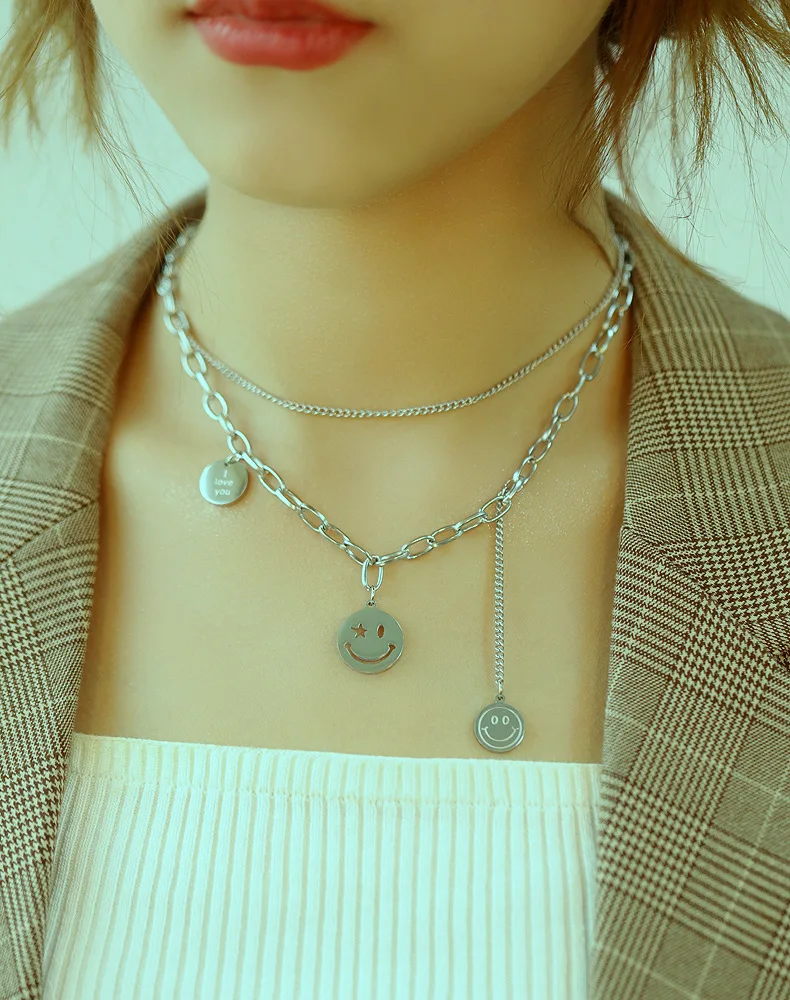 Titanium Steel Round Brand Smiley Face Double-layer Clavicle Chain Women Accessories Gold Color Carton Pendant Necklaces Party
