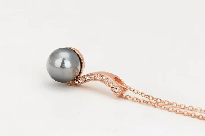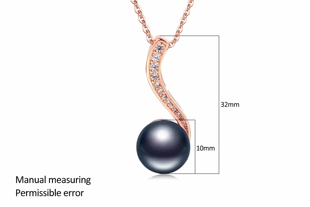 Top Quality Crystal Black Imitation-Pearl Water Drop Pendant Necklace For Women Girl Rose Gold Color Fashion Jewellery N435