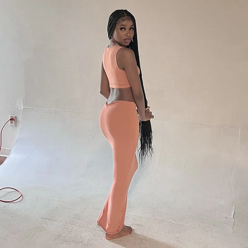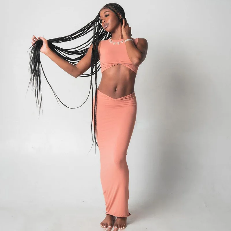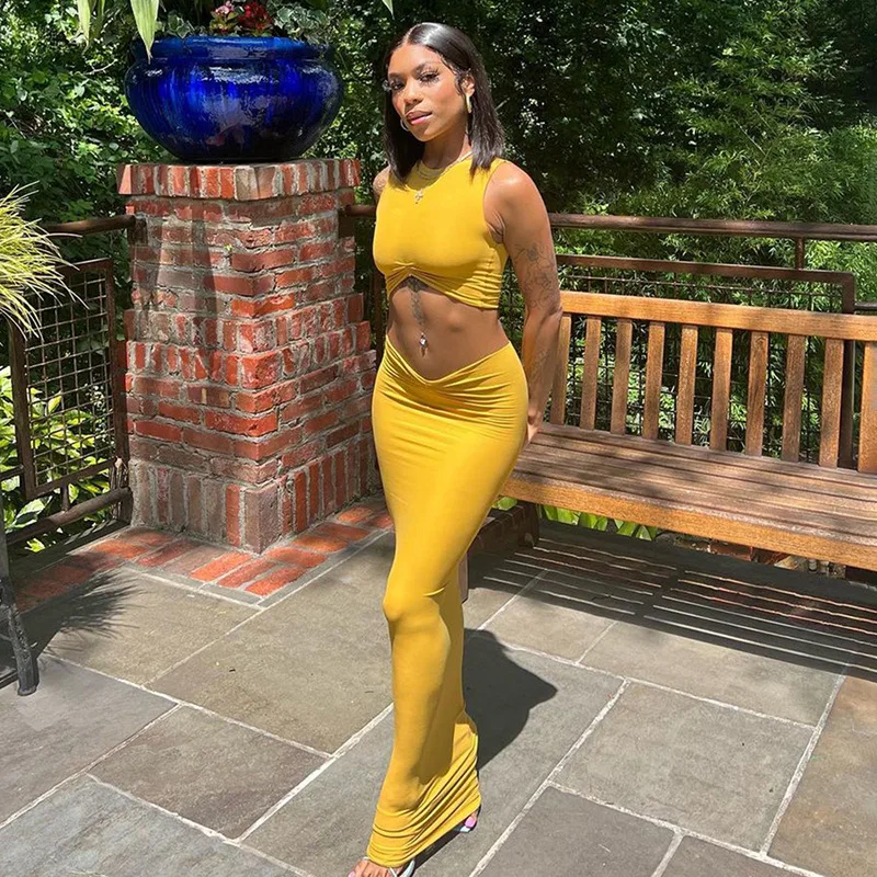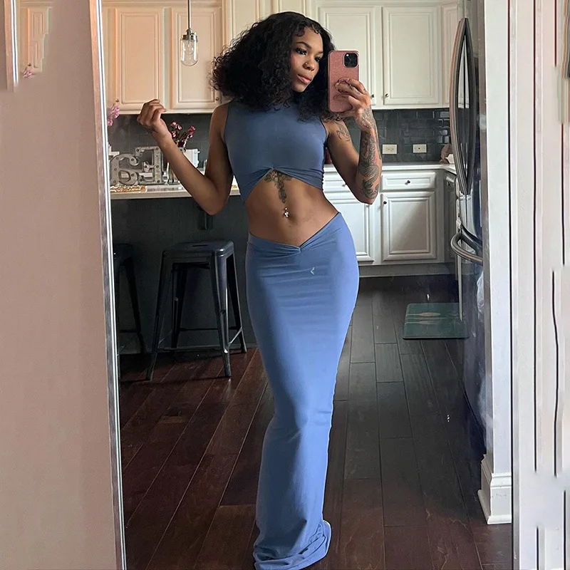 Top Quality Fashion Sexy Sleeveless Cropped Vest Long Dress