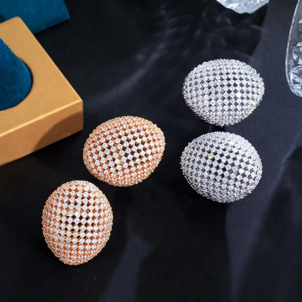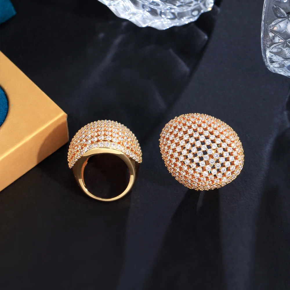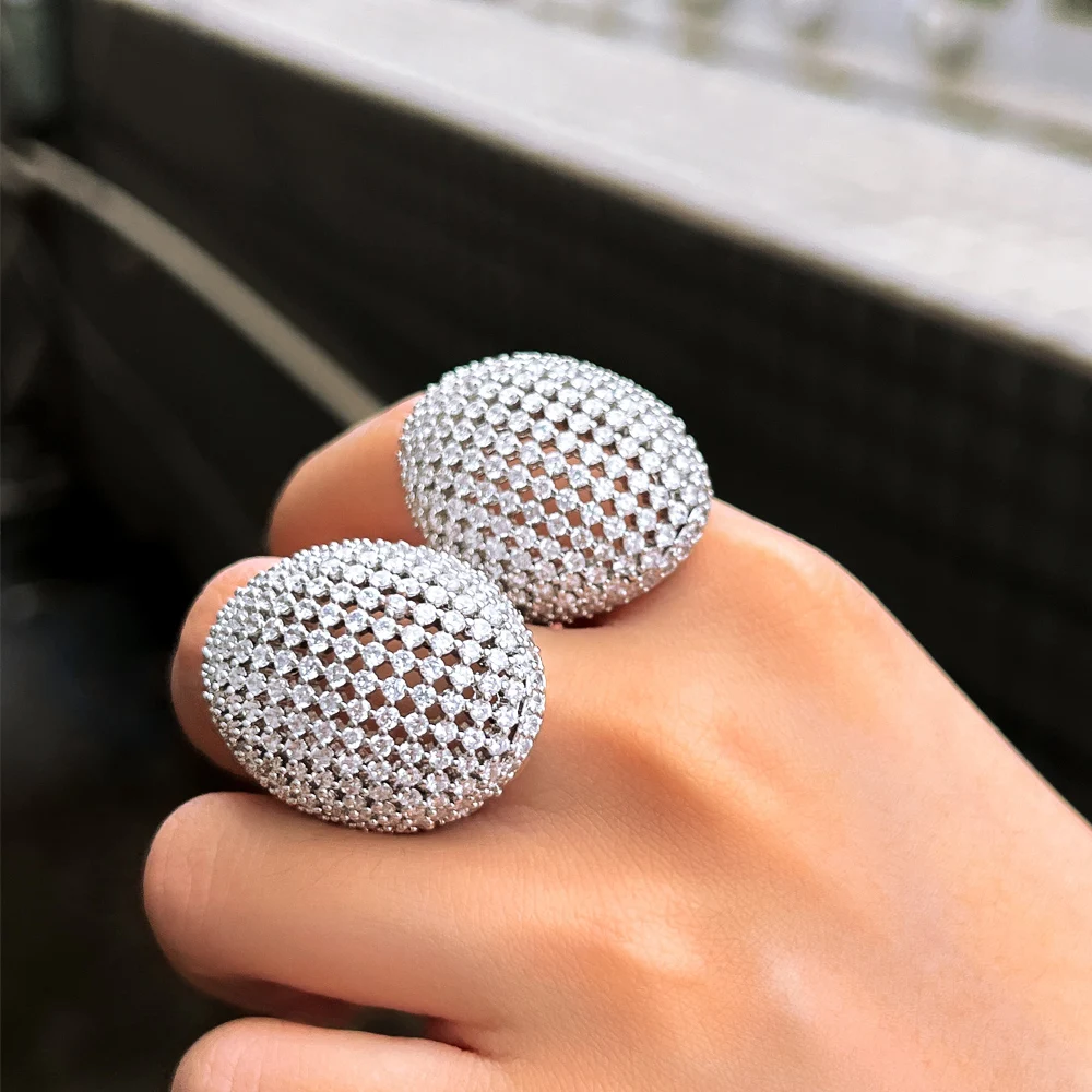 Top Quality Round Cubic Zirconia Stone Paved Multiple Luxury Big Chunky Wedding Banquet Engagement CZ Rings for Women Gift