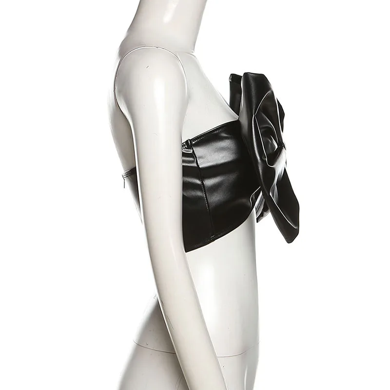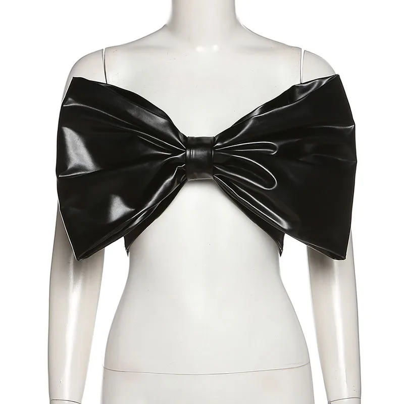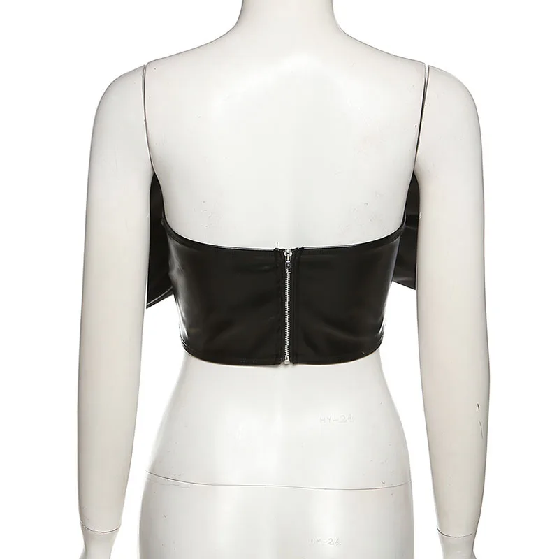 Top Sellers 2023 Women Clothing Fashionable Ladies Tops Latest Design Sexy Bow Tie Pu Women'S Leather Tank Tops For Women 2023