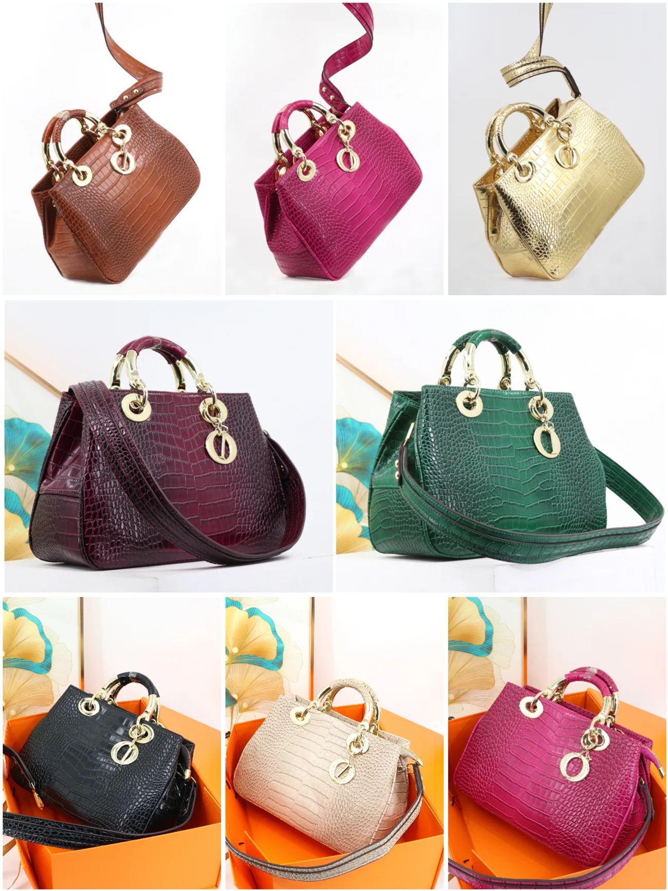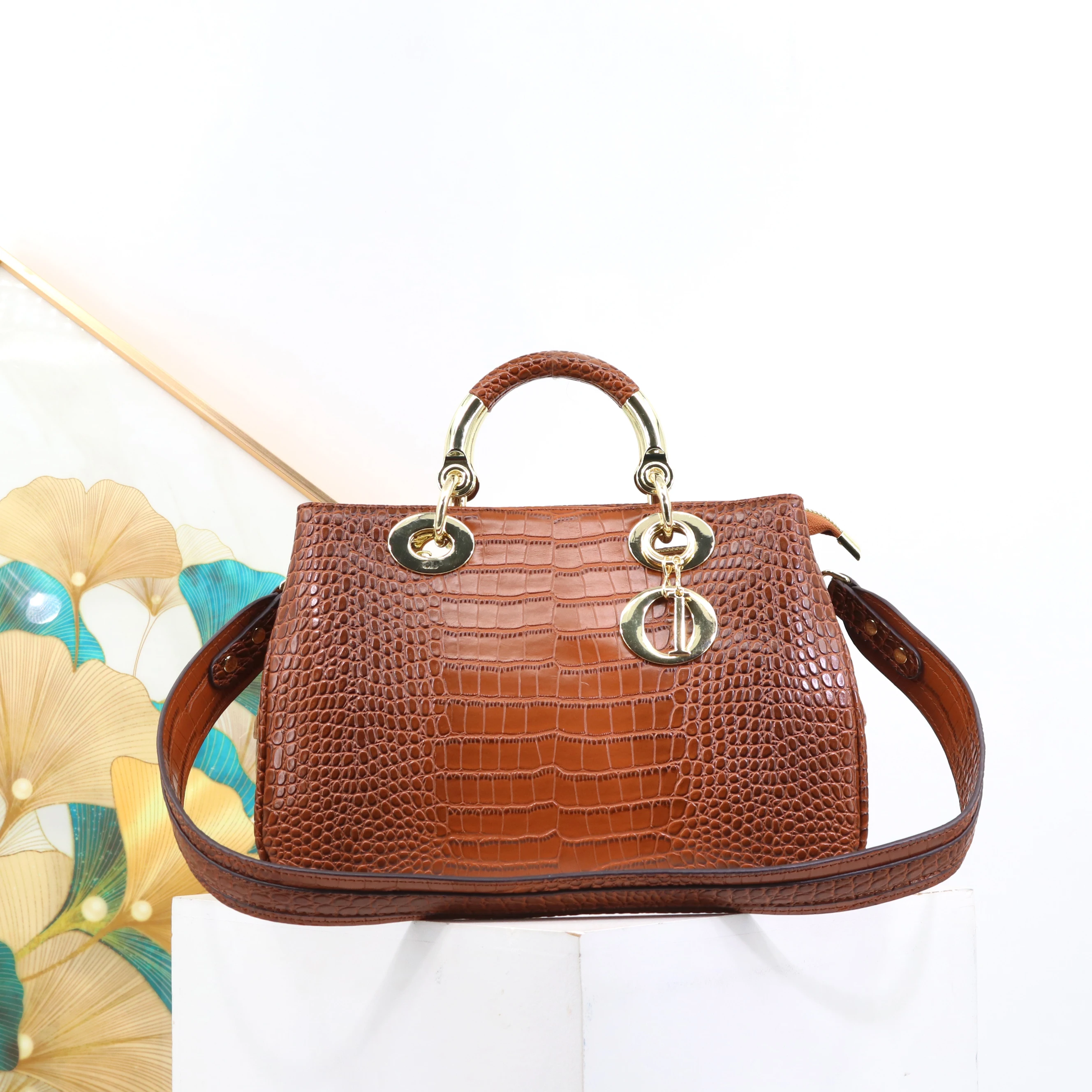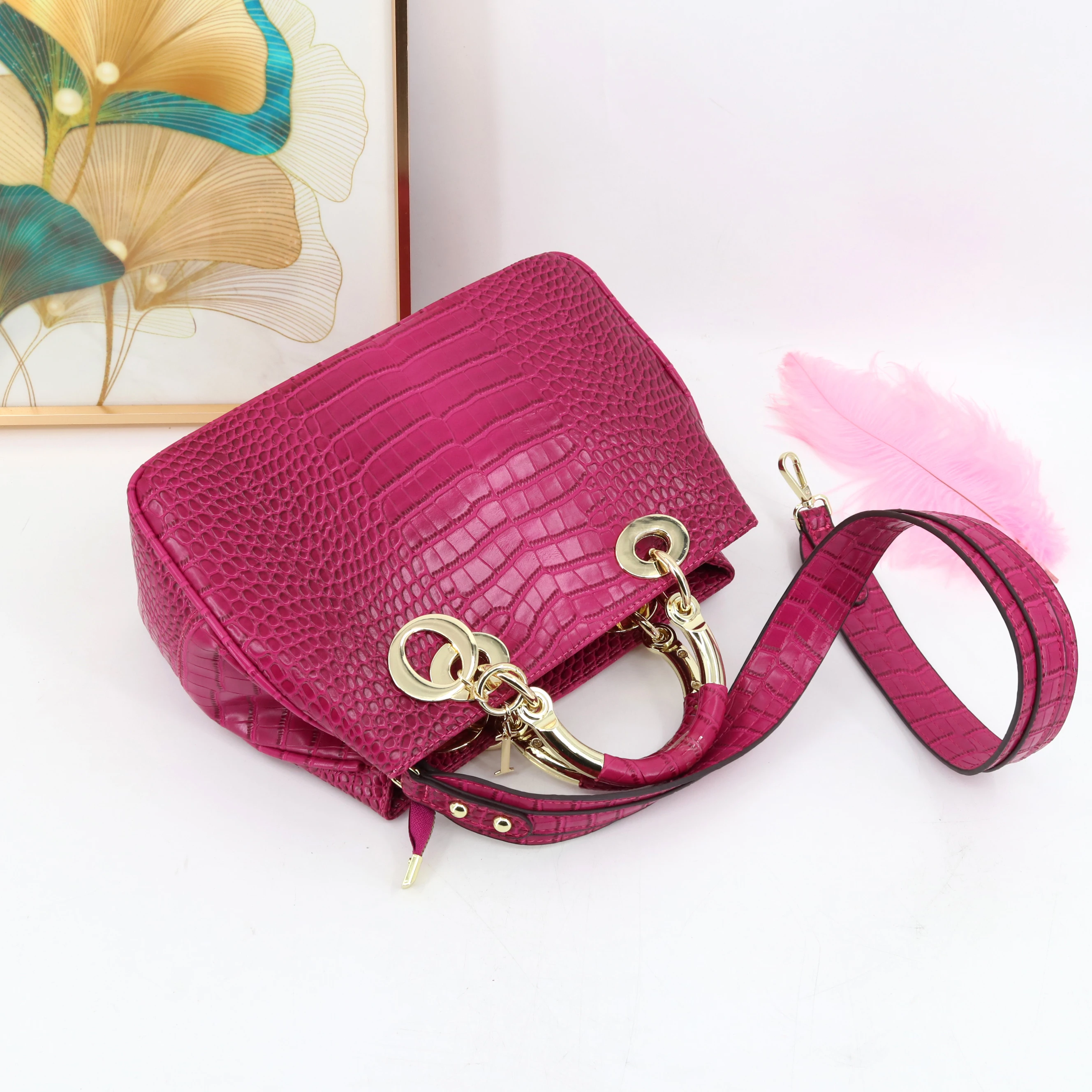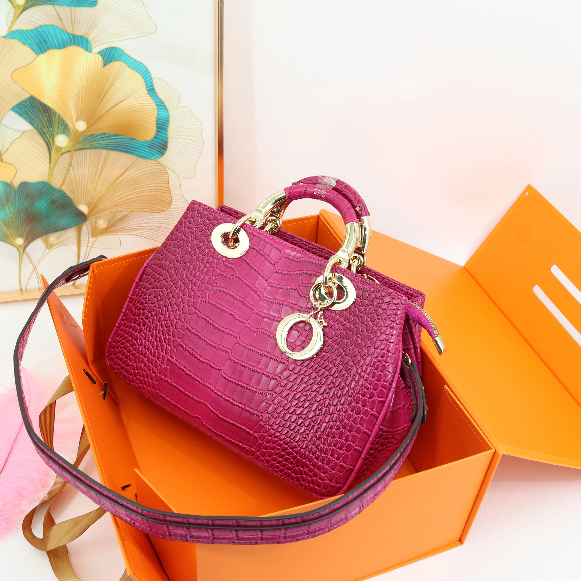 Top selling women's handbag quality crocodile leather shoulder bag for ladies fashion designer female bag metal handle bag 33 cm