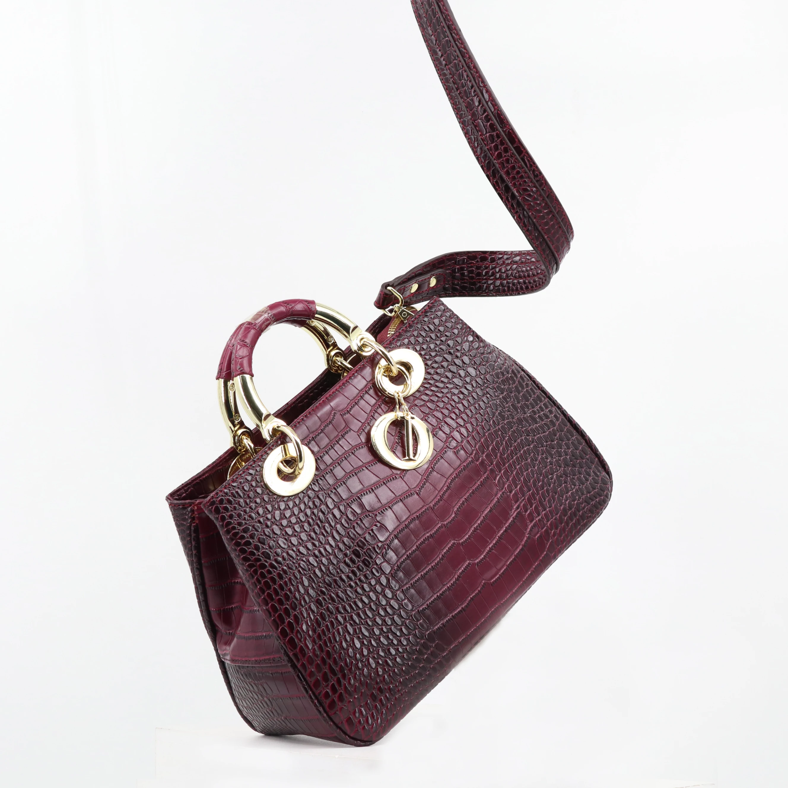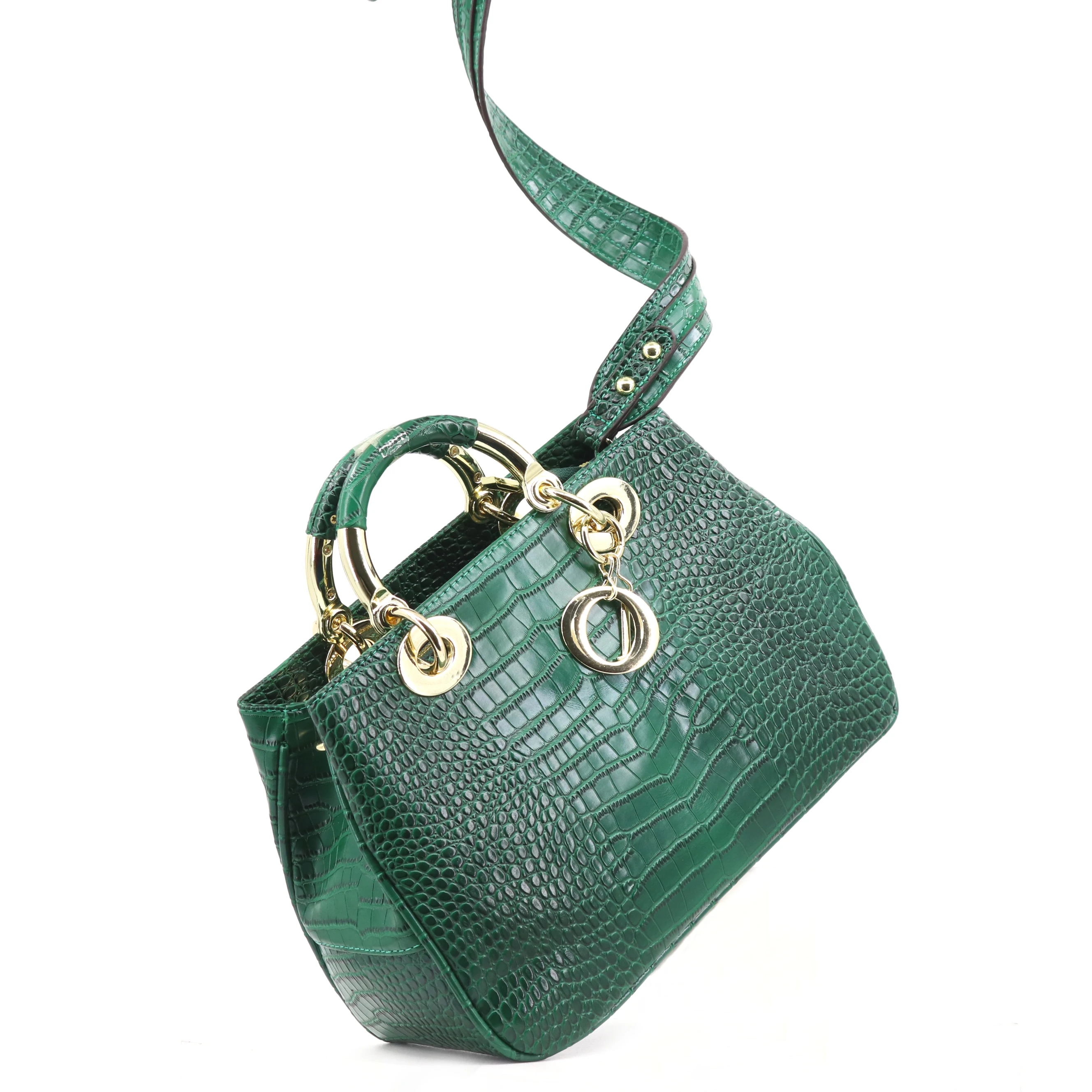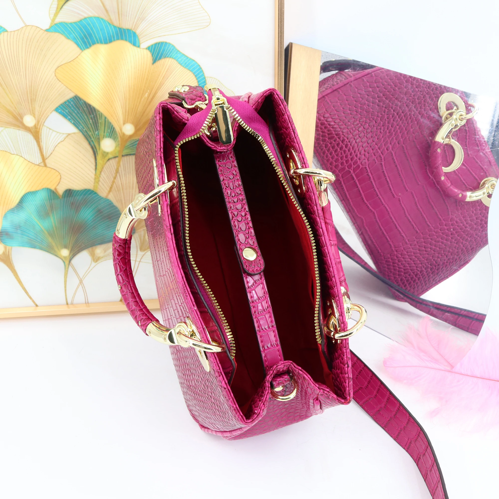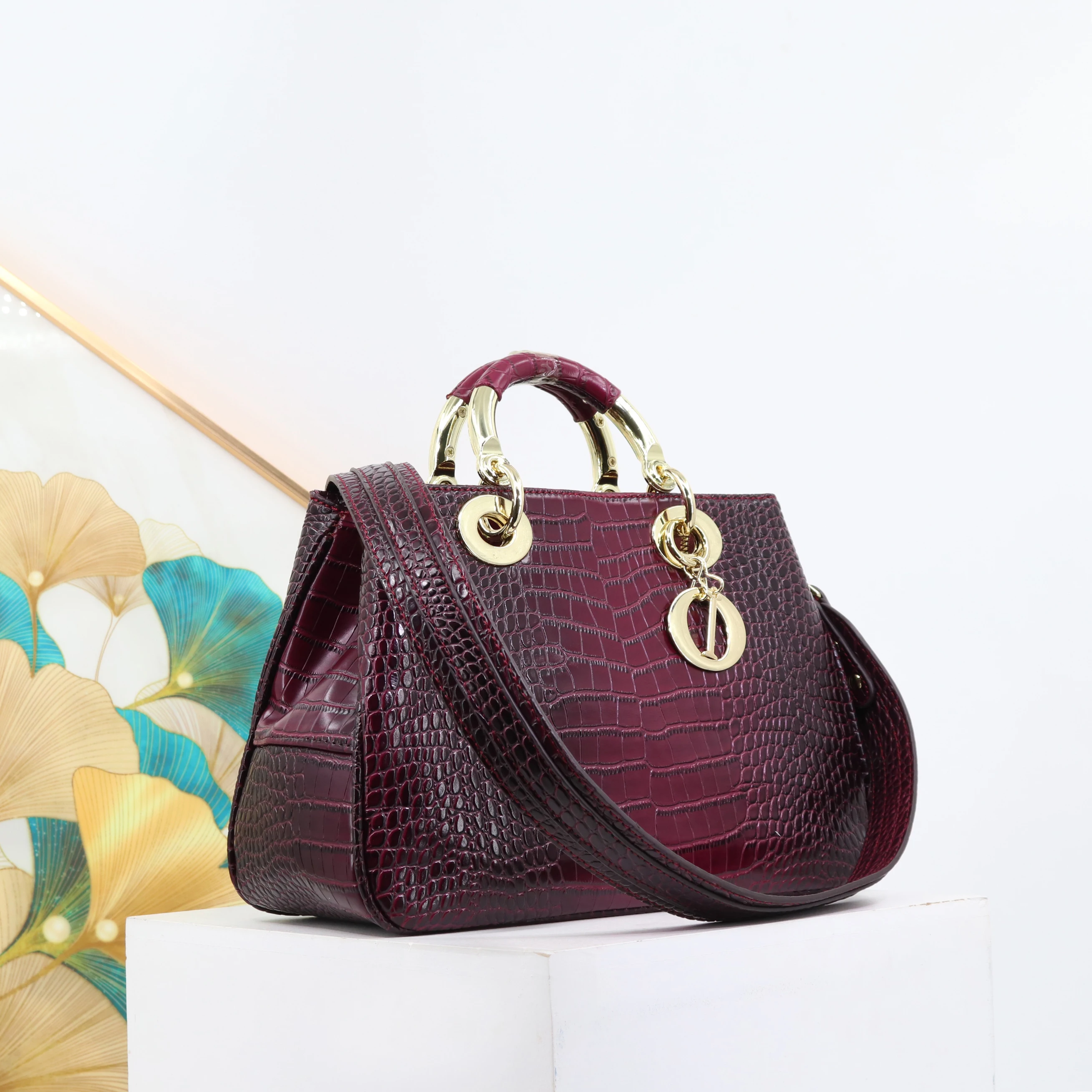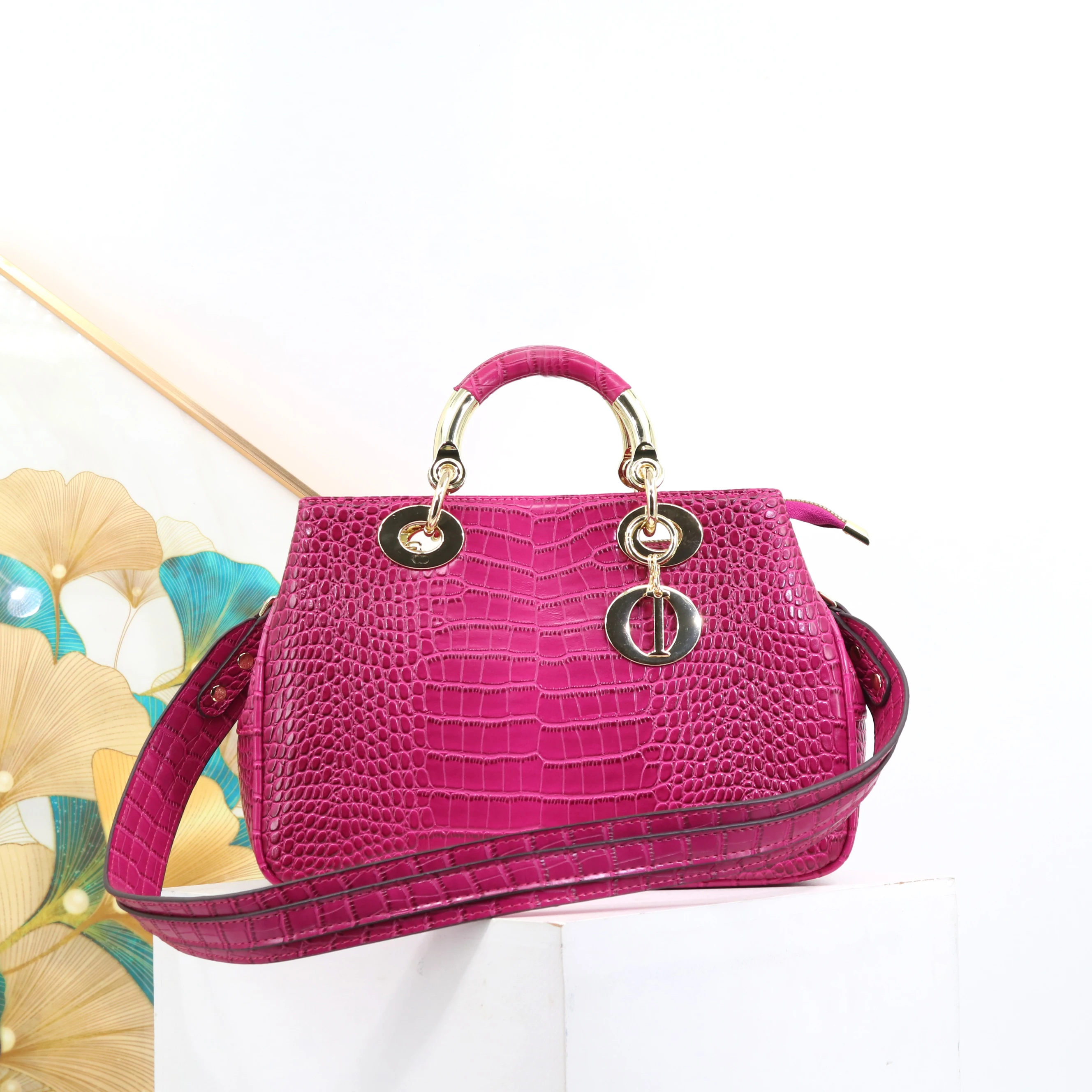 Top selling women's handbag quality crocodile leather shoulder bag for ladies fashion designer female bag metal handle bag 33 cm