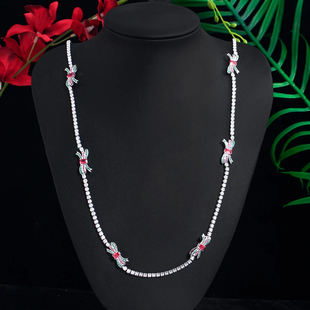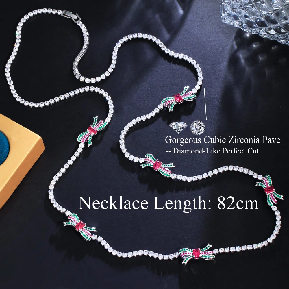 Top Shiny Round Cubic Zirconia Stones Long Sweater Chain Link Necklace for Women Engagement Wedding Party Jewelry Gift
