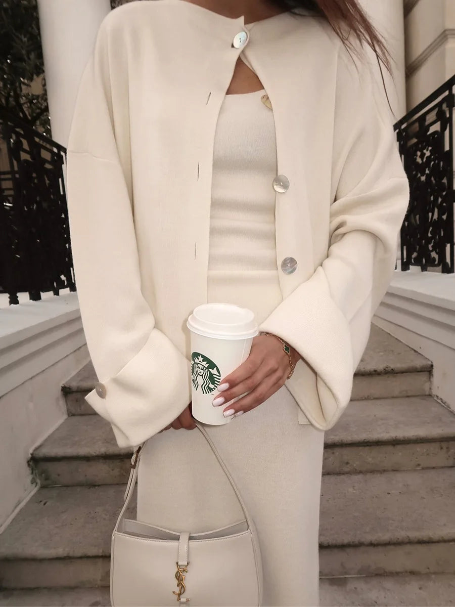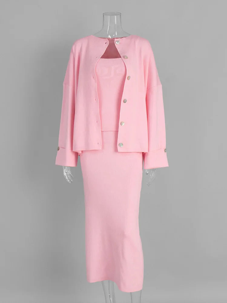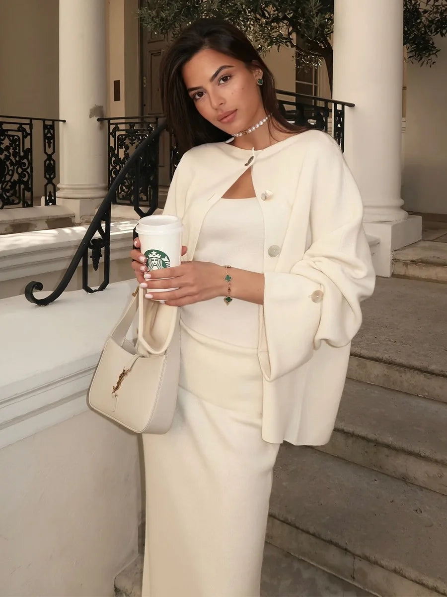 Tossy Knit Fashion 3 Piece-Set Long Skirt Women Loose Autumn Patchwork Elegant Commute Outfits Female Knitwear Maxi Skirt Sets