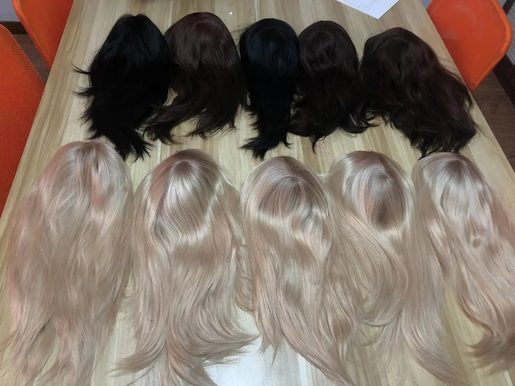 All designs and materials are available: full, extra long, remy, partials, all lace, French lace, lace fronts, scalloped poly fronts, injection unit, silicone units, etc.