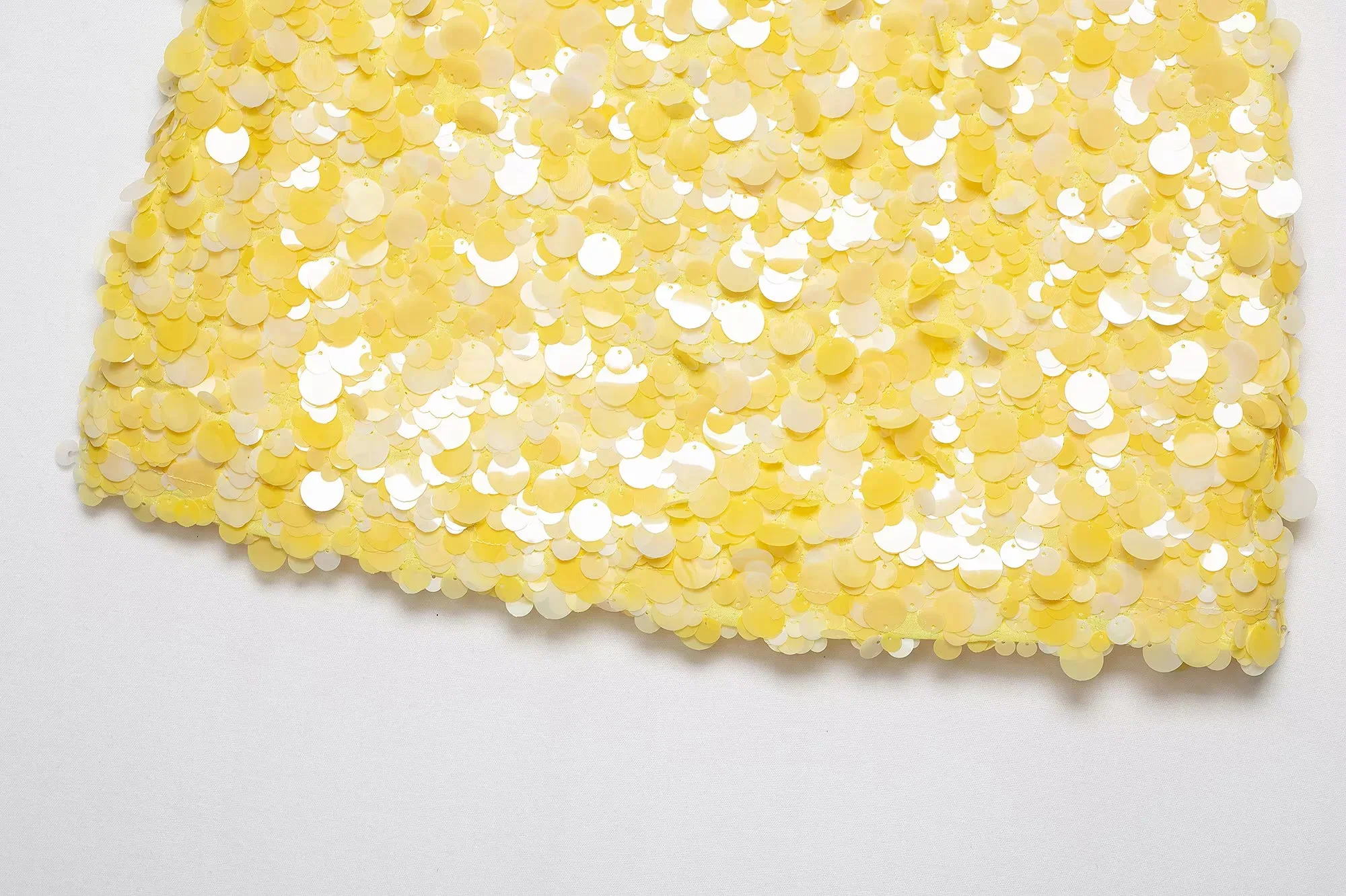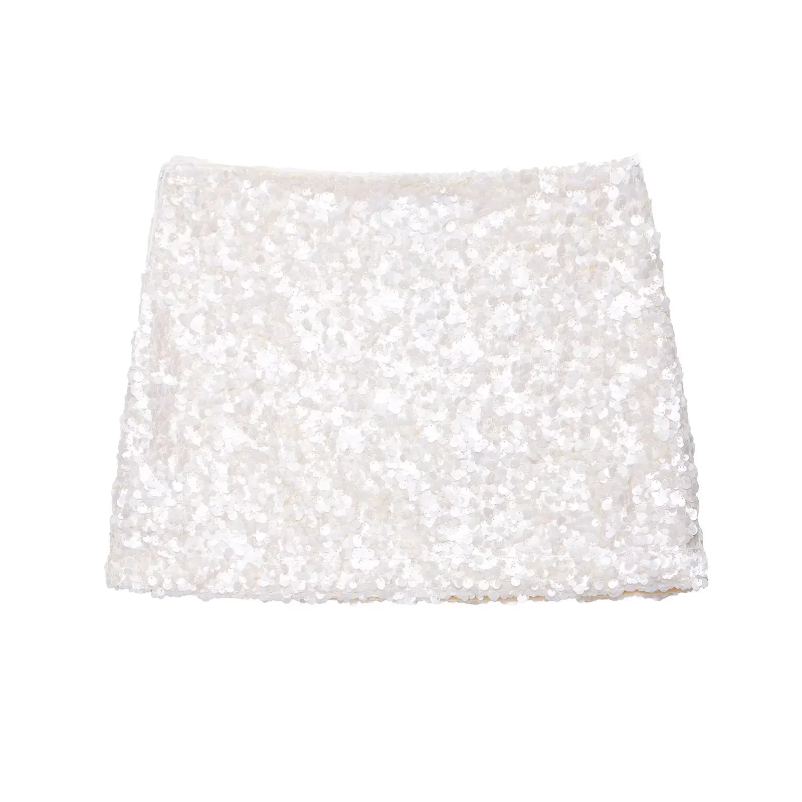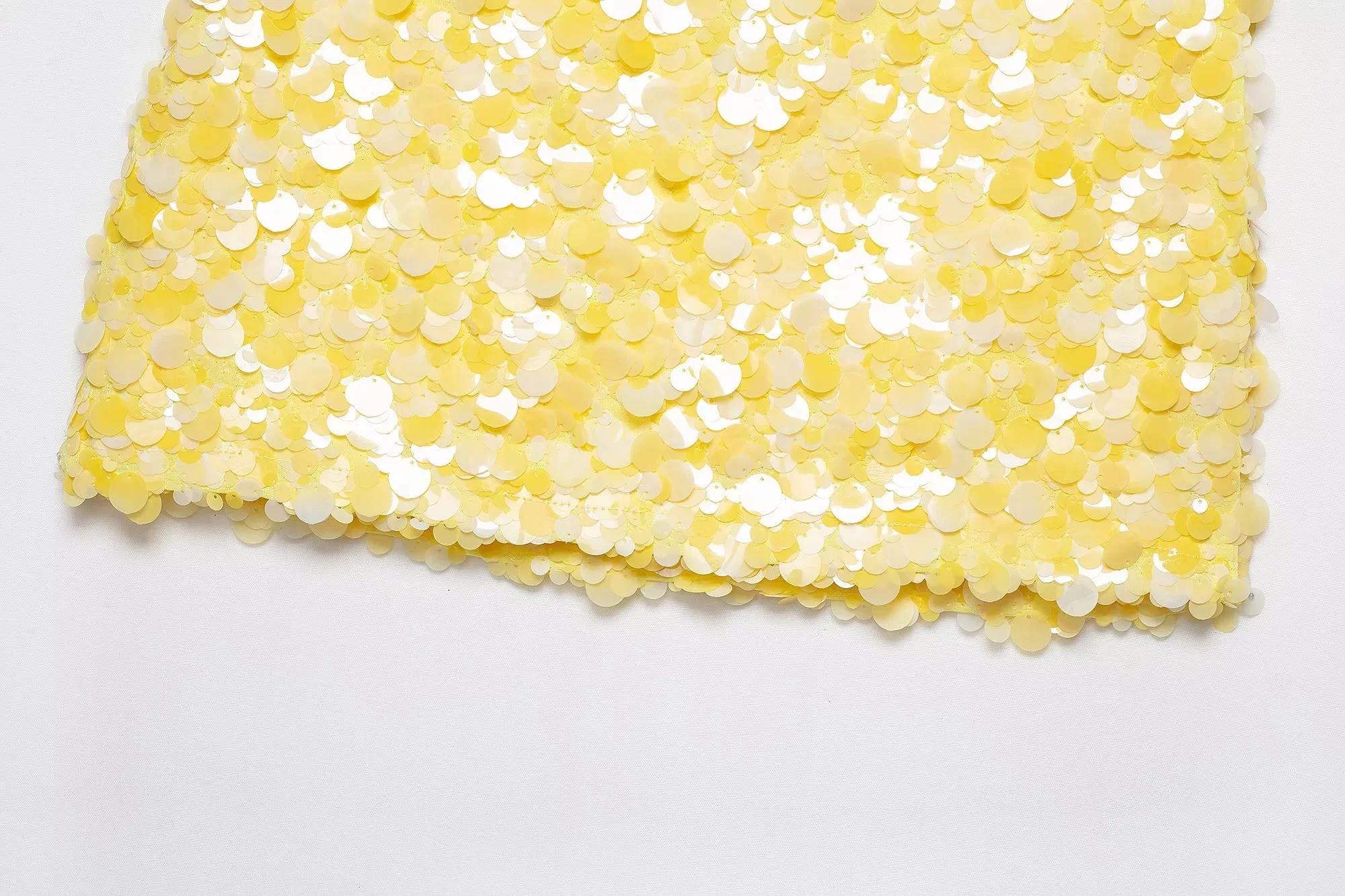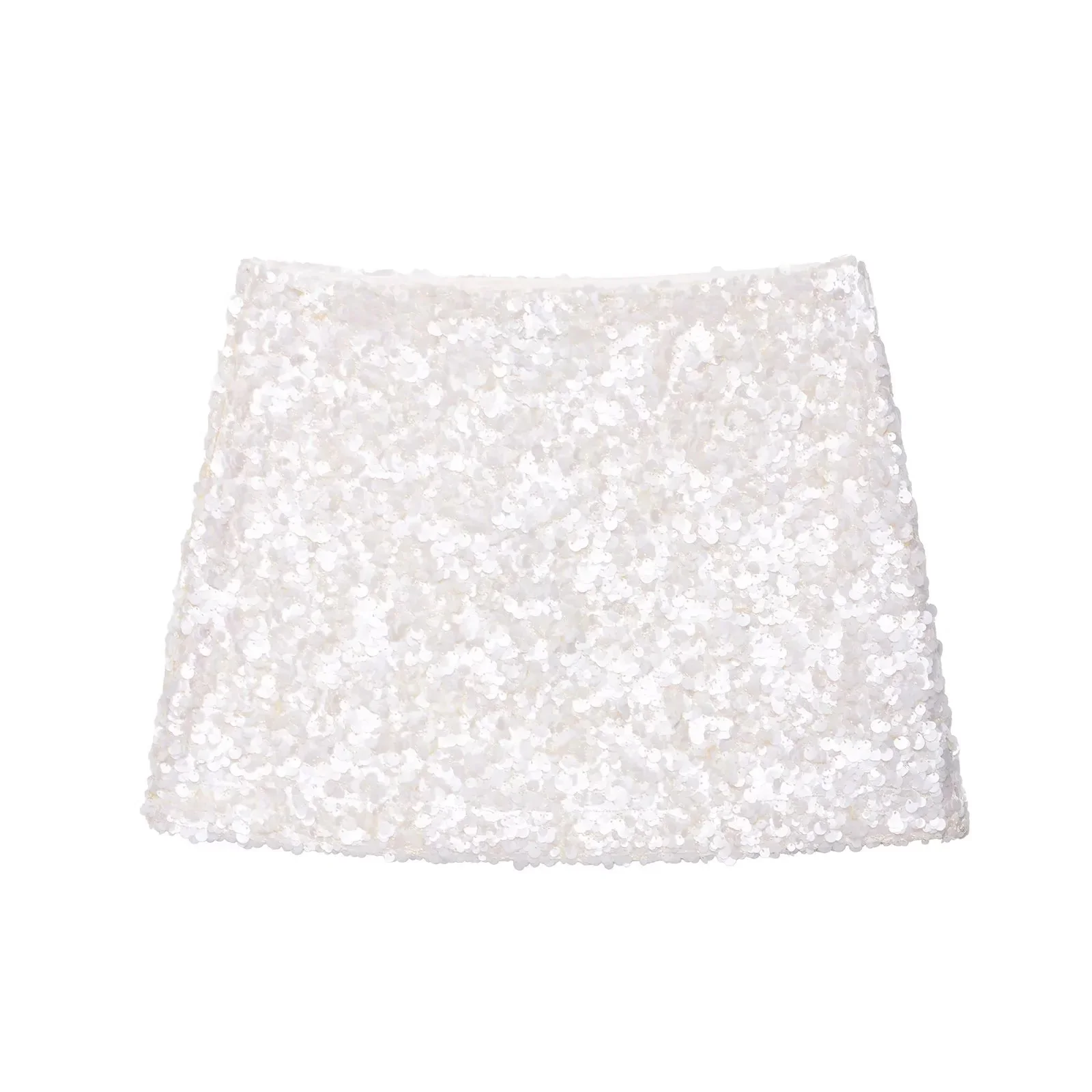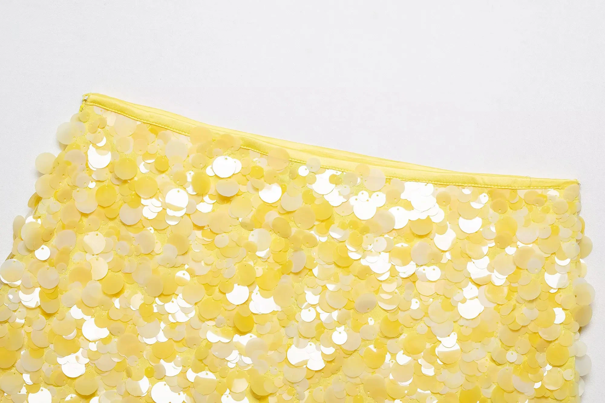 TRAFZA 2025 Spring Summer Sexy Butter Yellow Women Skirts Fashion Streetwear Beading Solid Straight Chic Ladies Mini Skirts