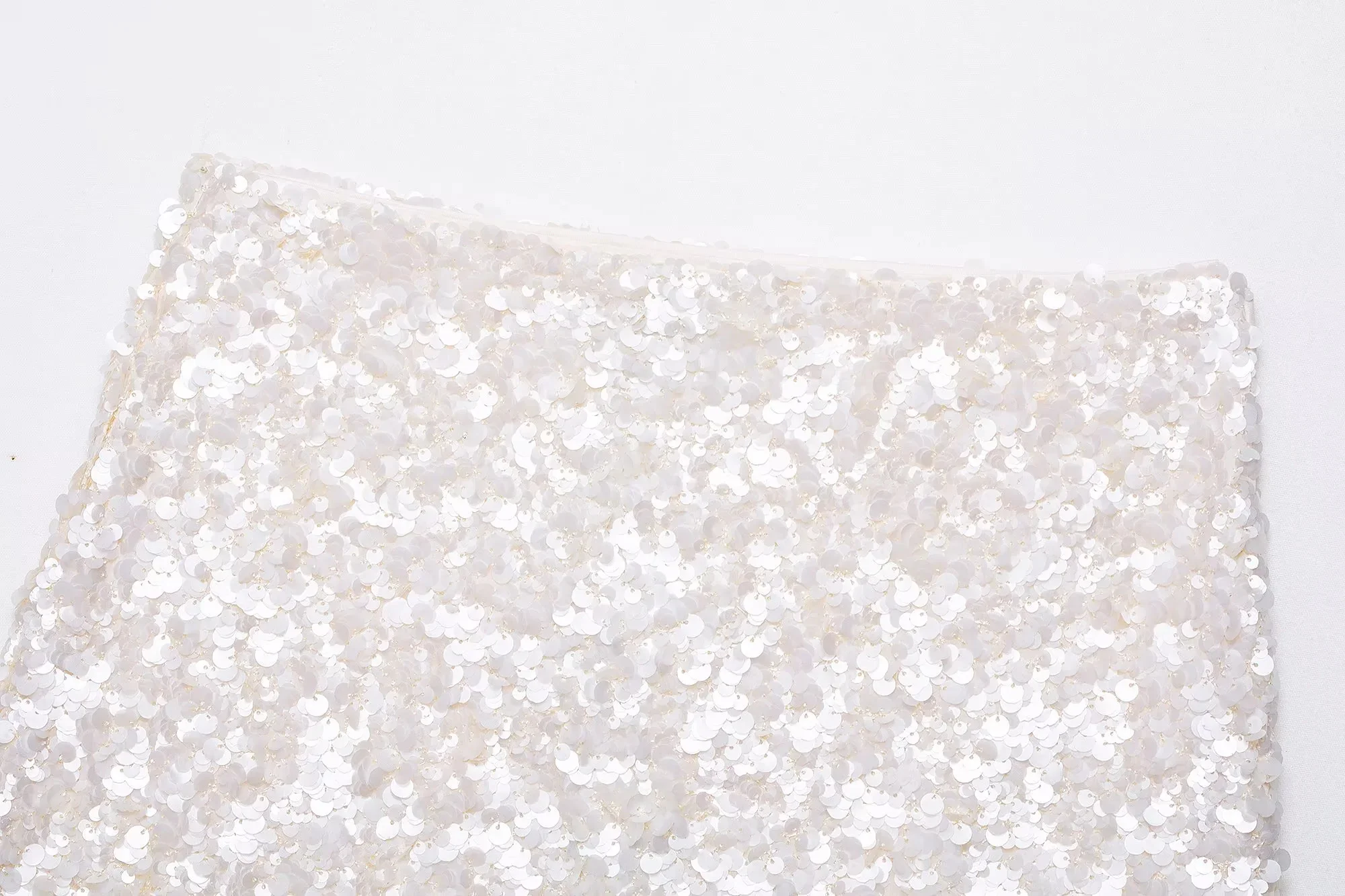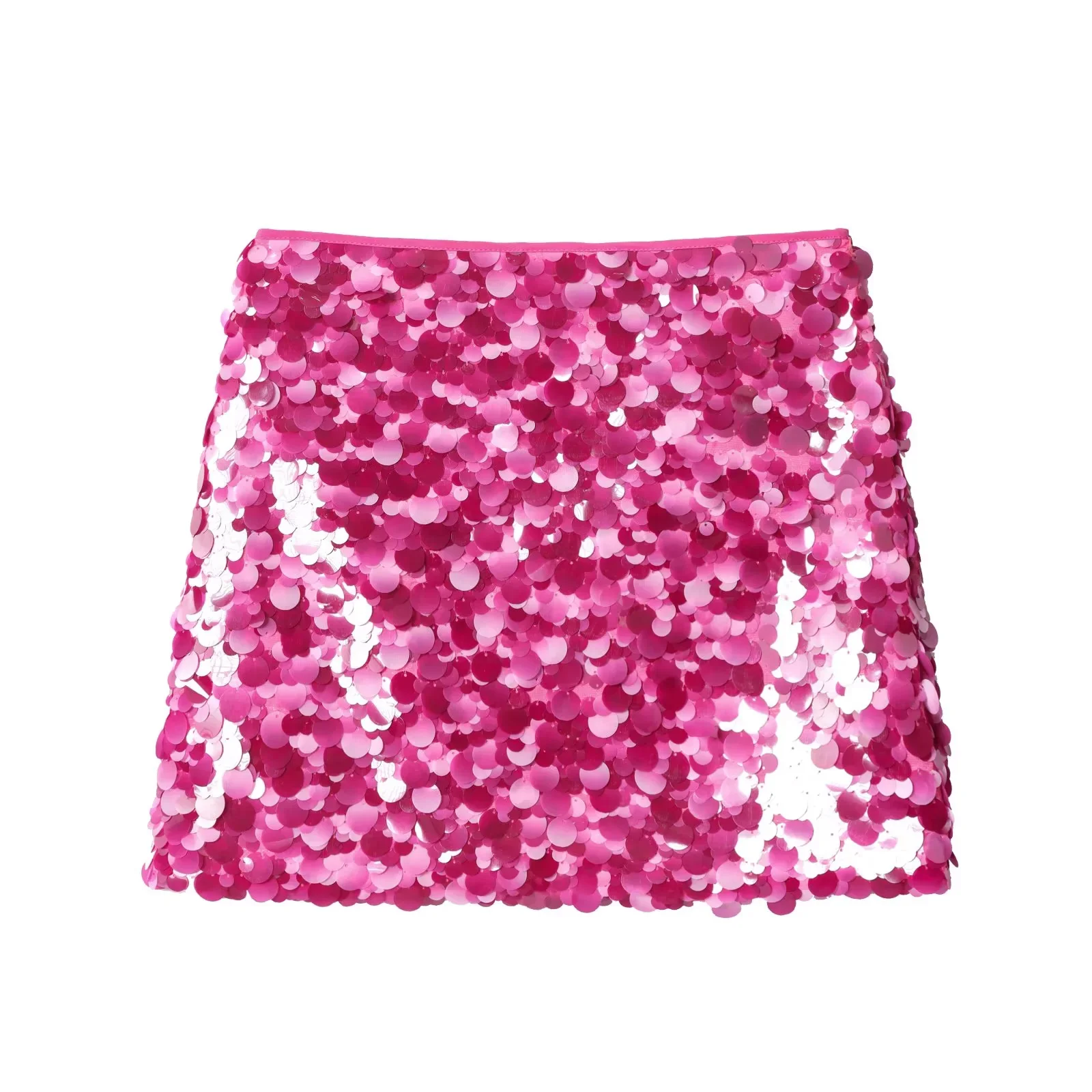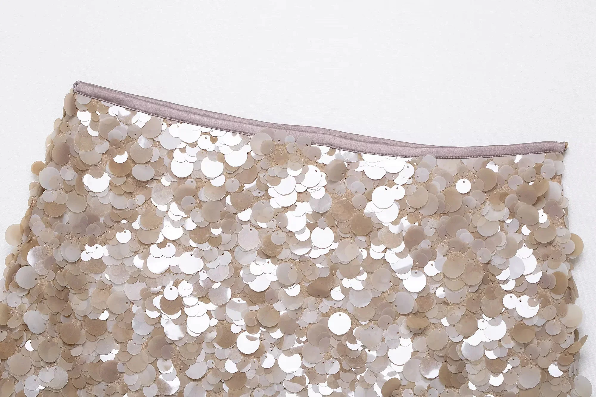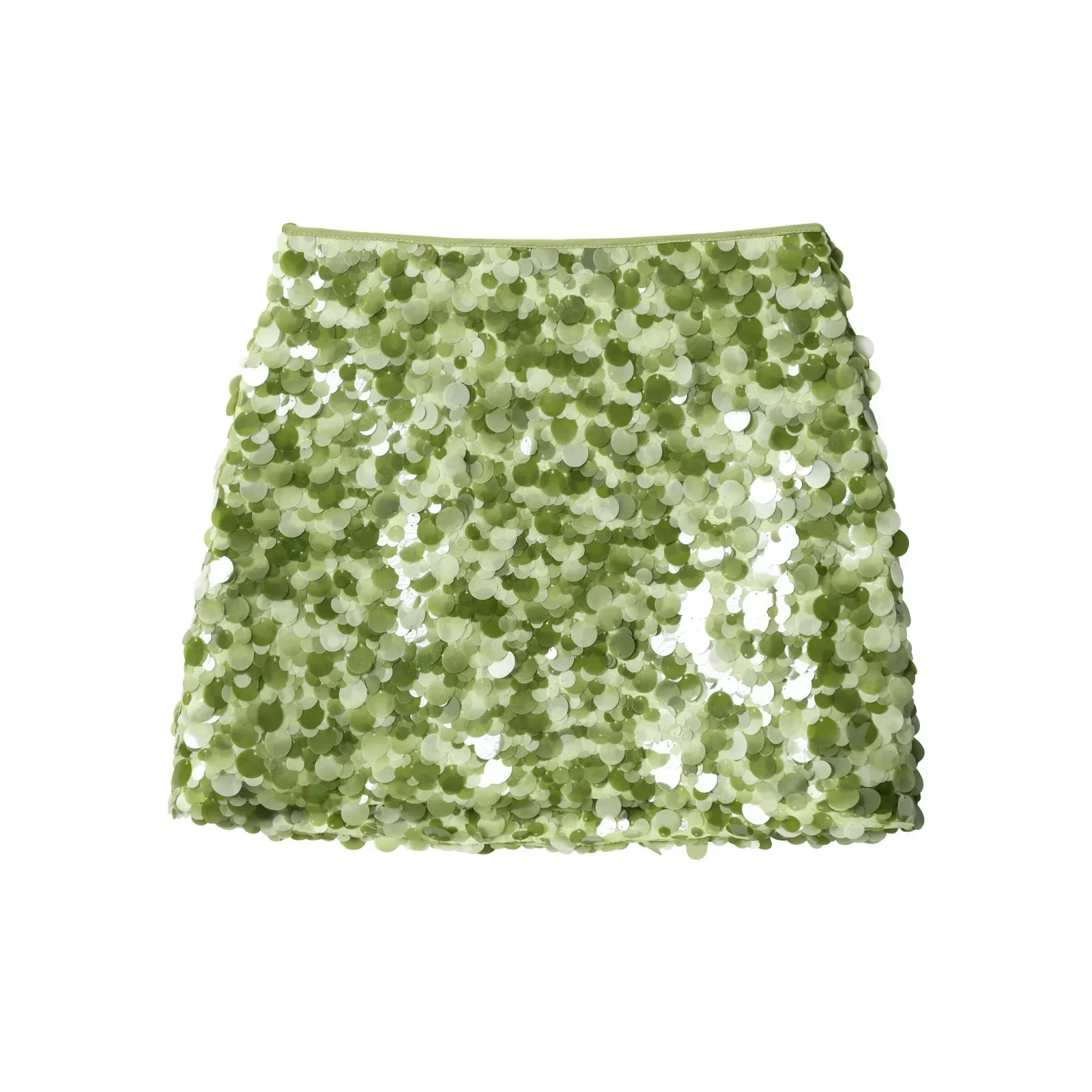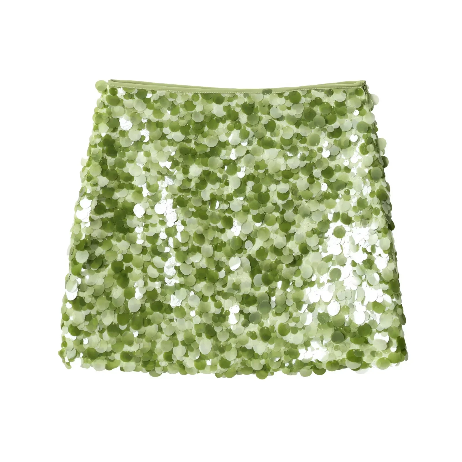 TRAFZA 2025 Spring Summer Sexy Butter Yellow Women Skirts Fashion Streetwear Beading Solid Straight Chic Ladies Mini Skirts