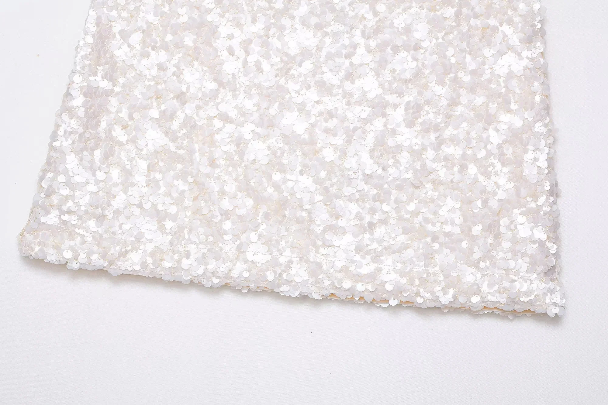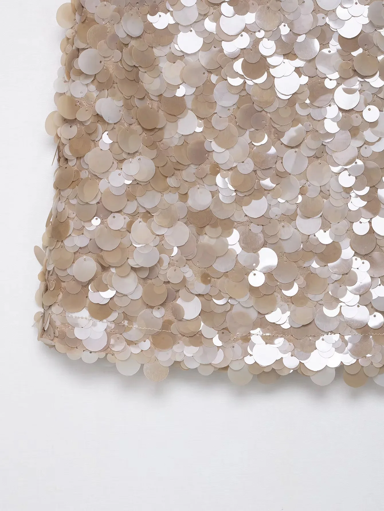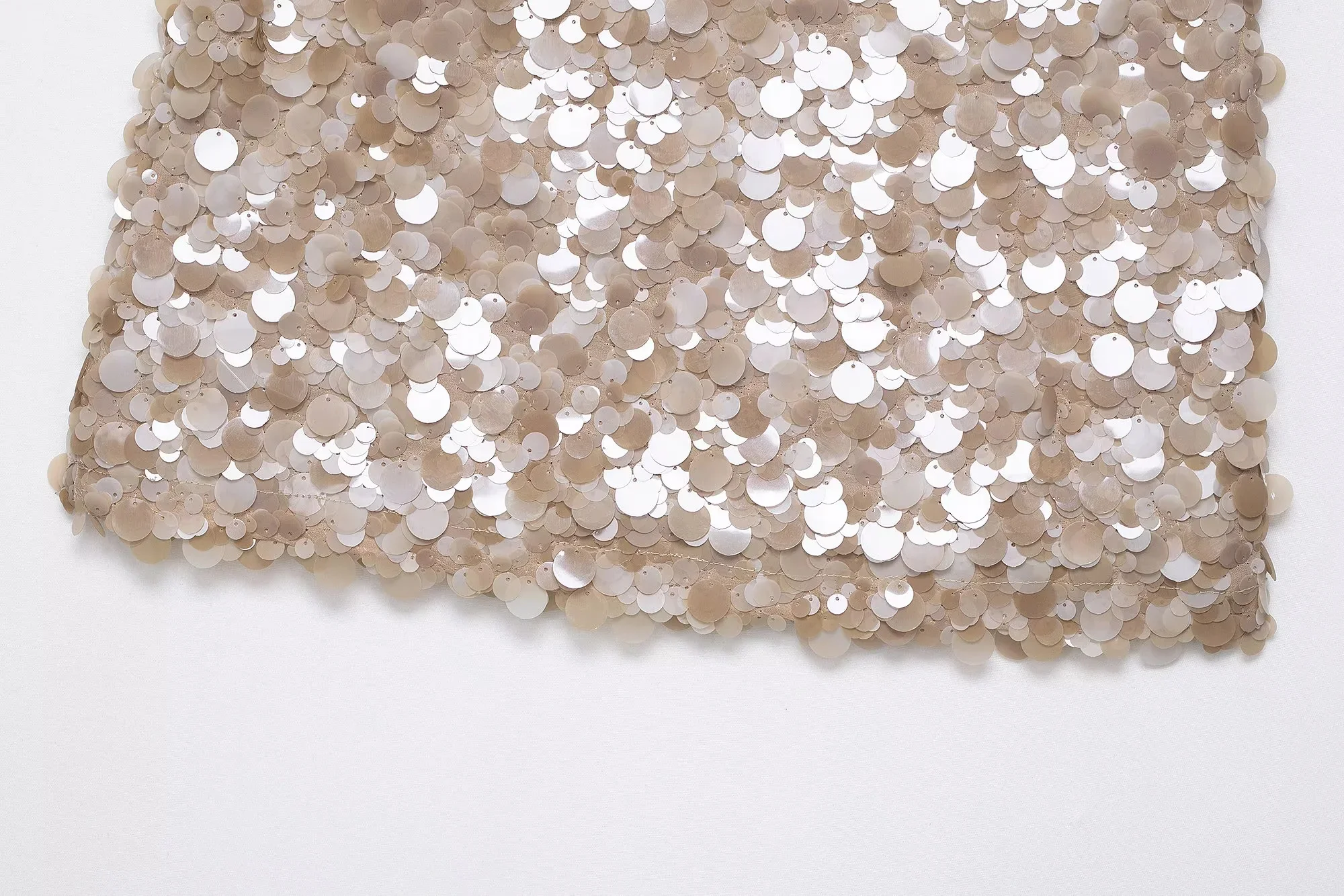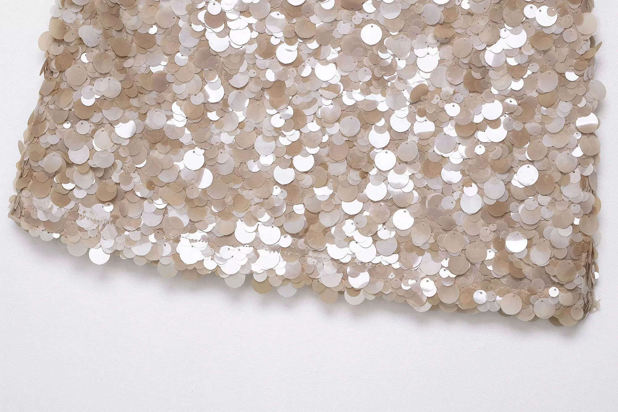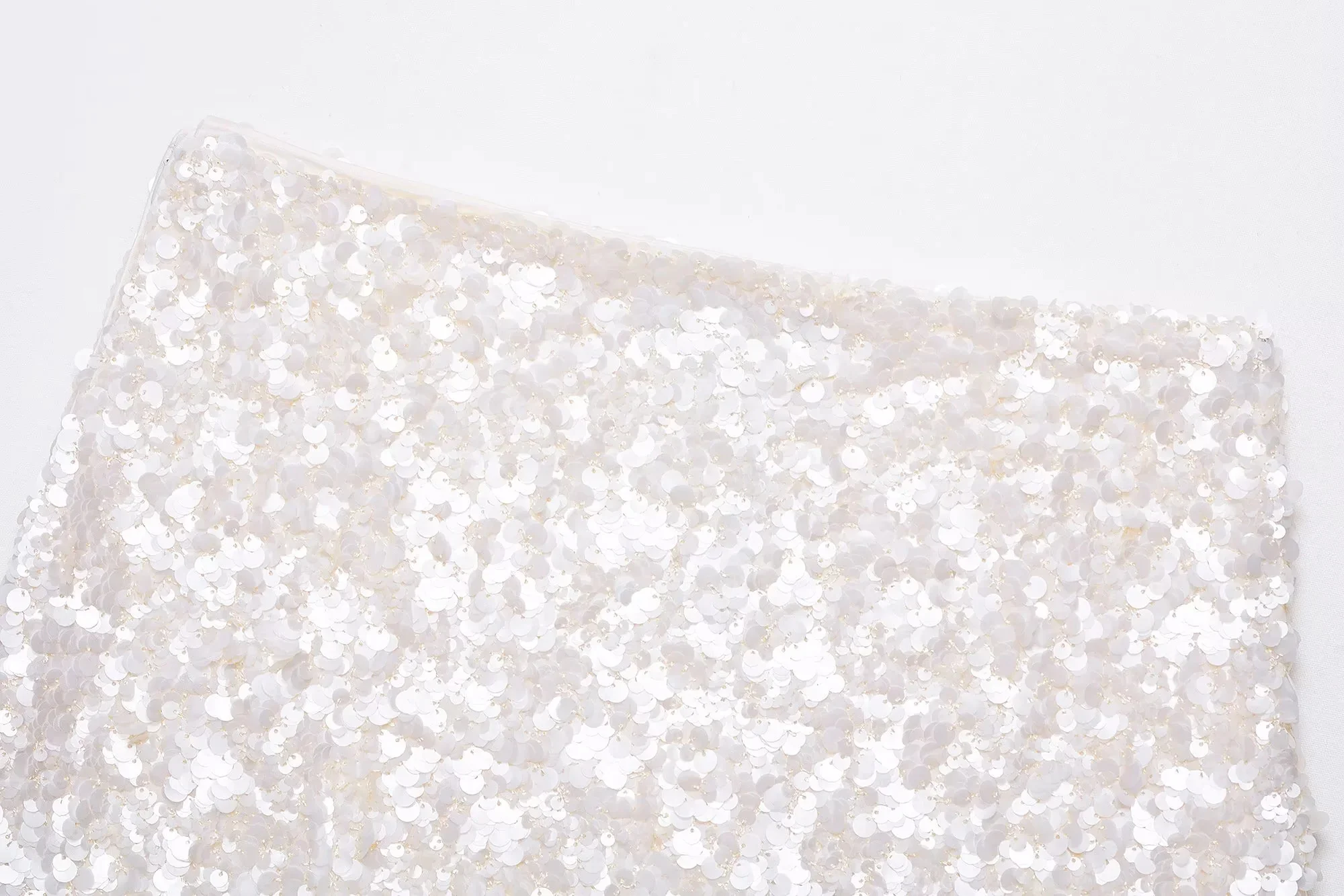 TRAFZA 2025 Spring Summer Sexy Butter Yellow Women Skirts Fashion Streetwear Beading Solid Straight Chic Ladies Mini Skirts