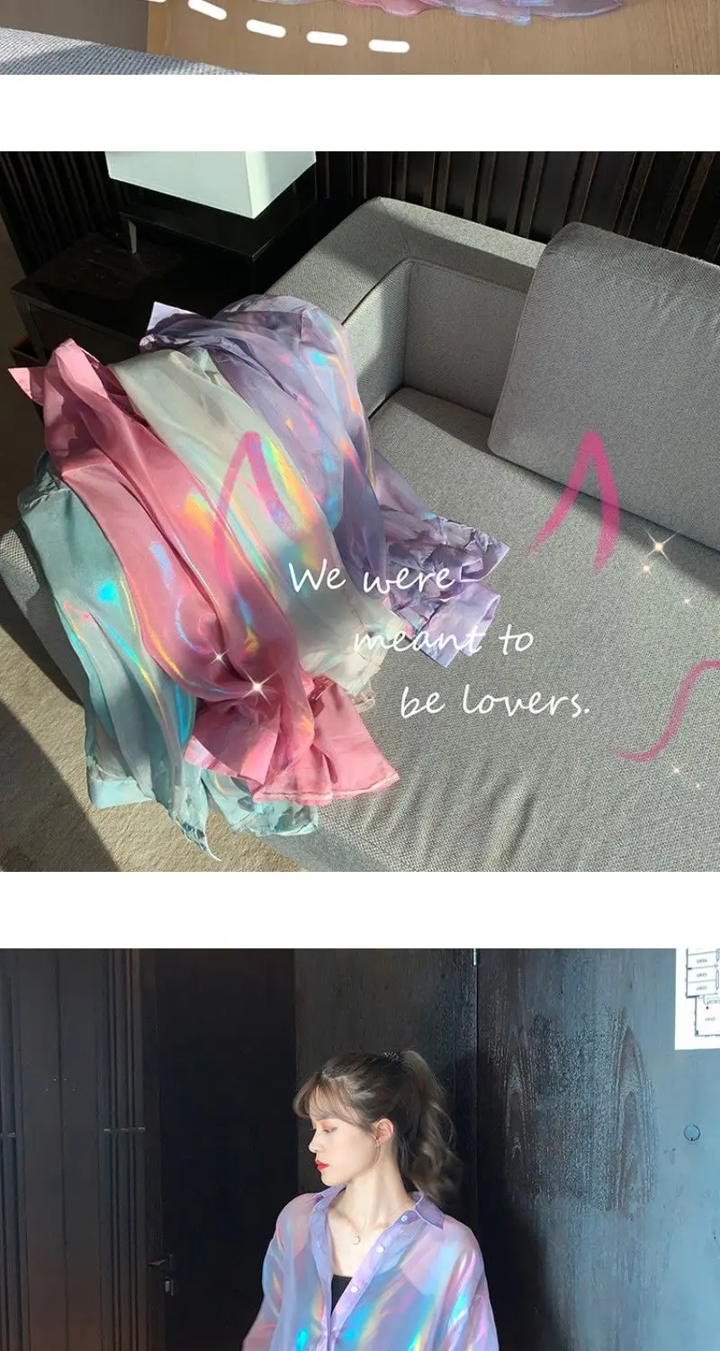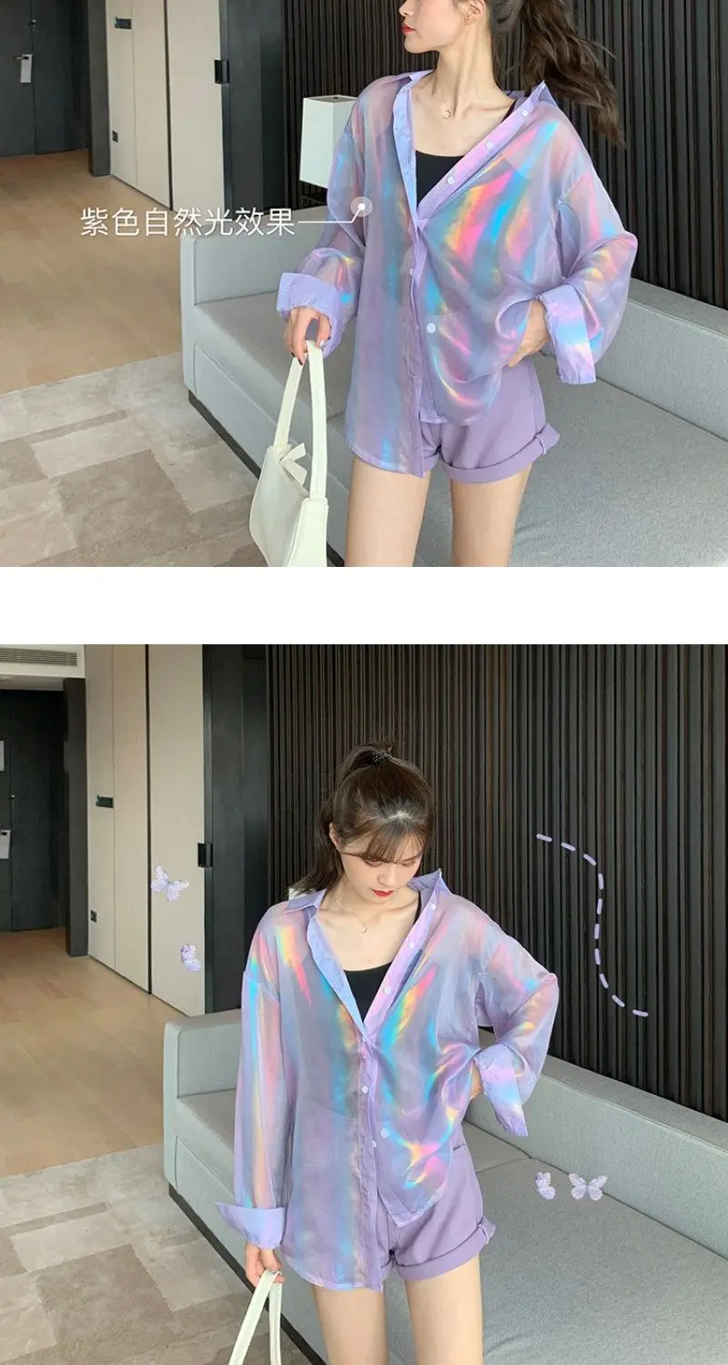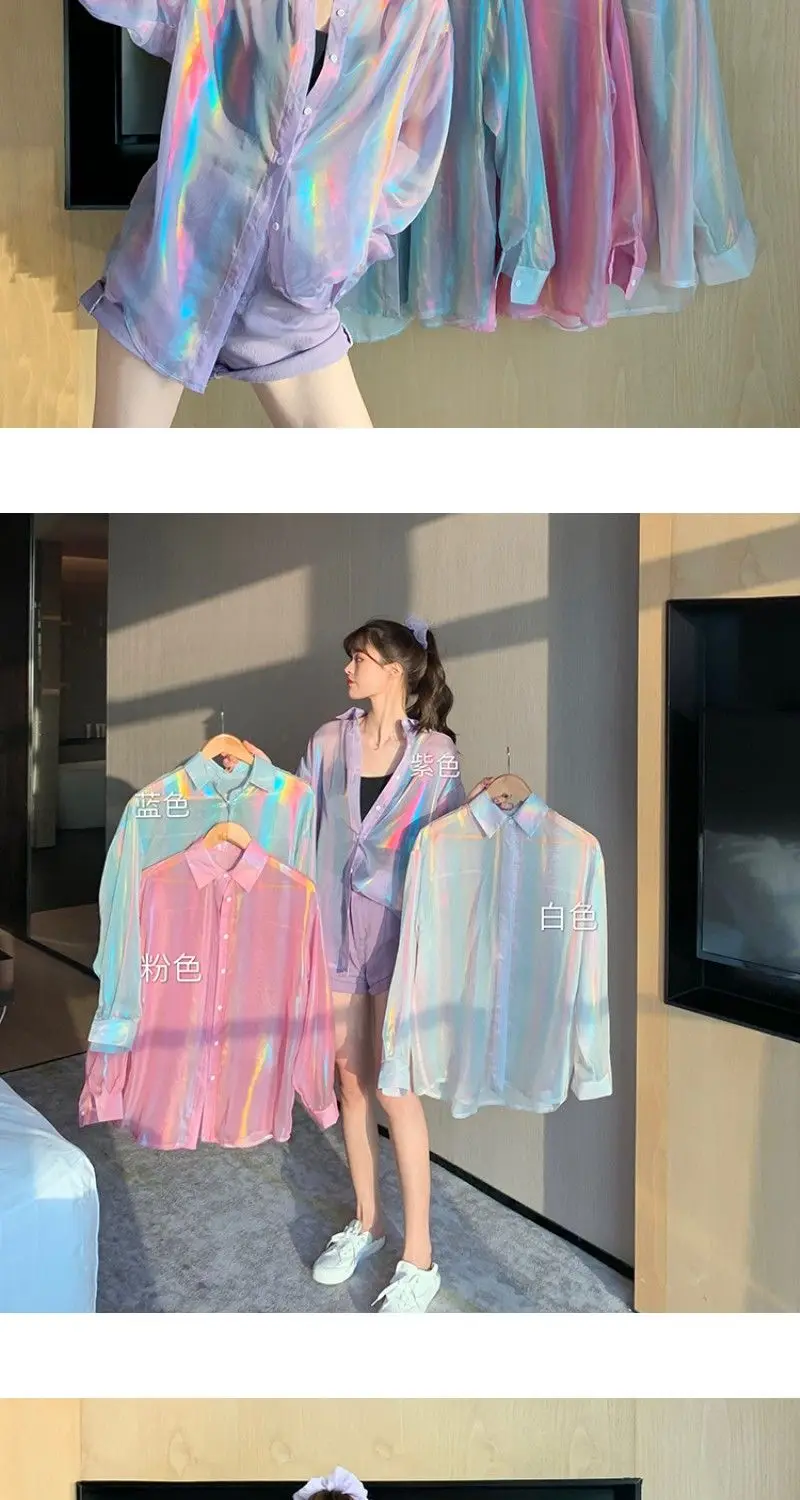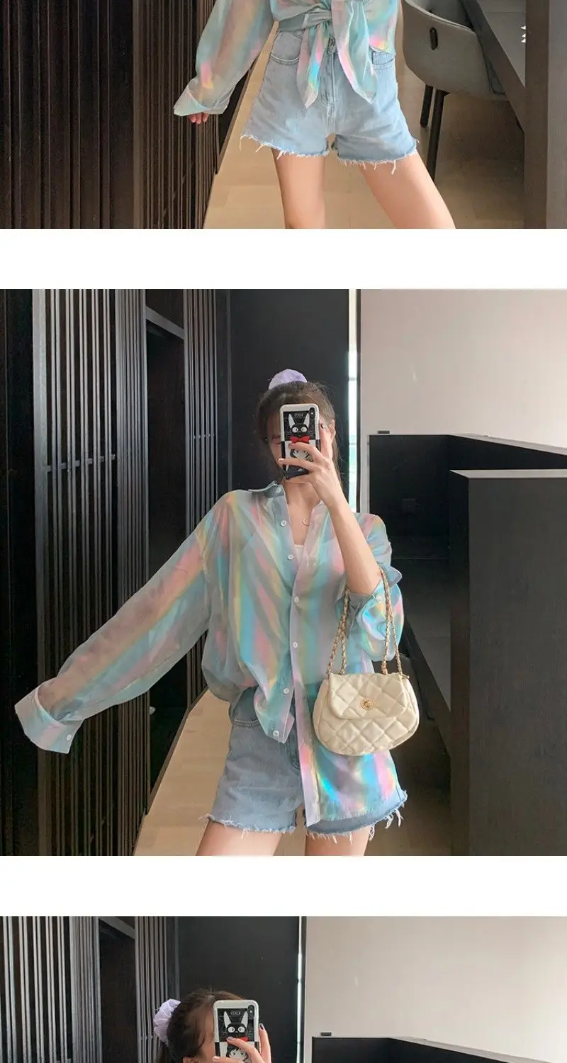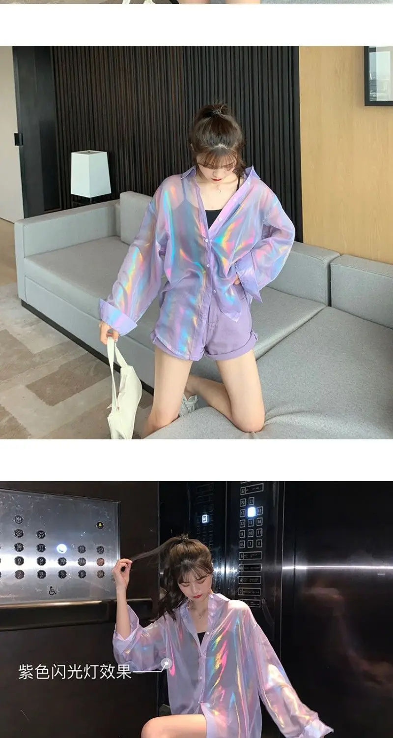 Transparent Shirt Women Beautiful Blouse Sheer Top Ladies Korean Style 2022 Summer Oversized Sun-proof Kawaii Ulzzang