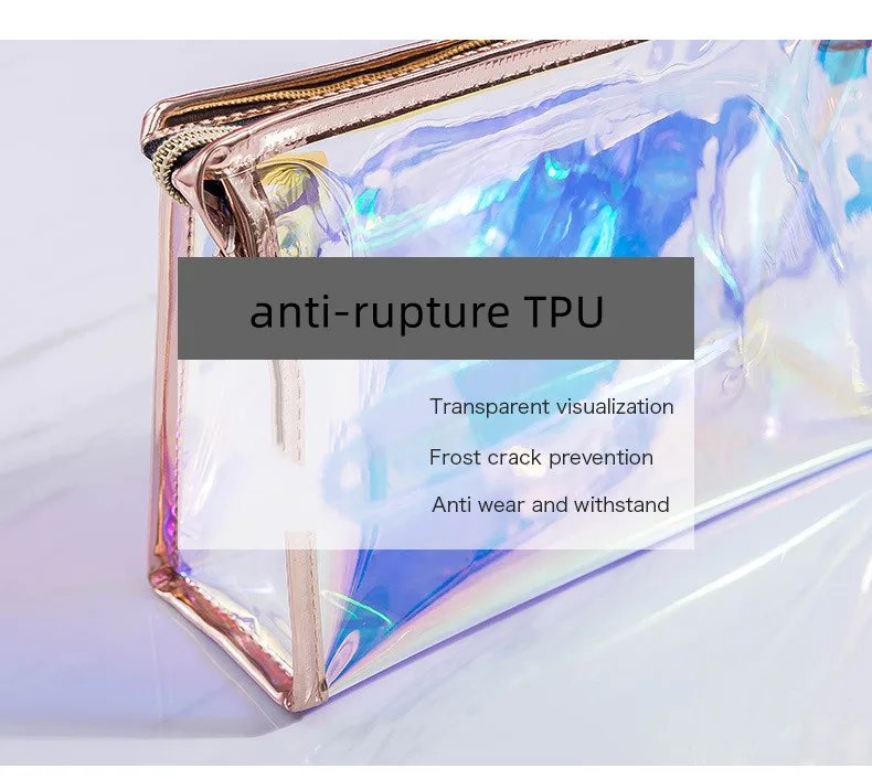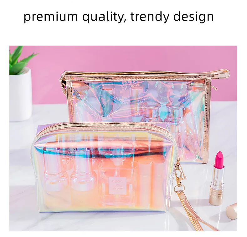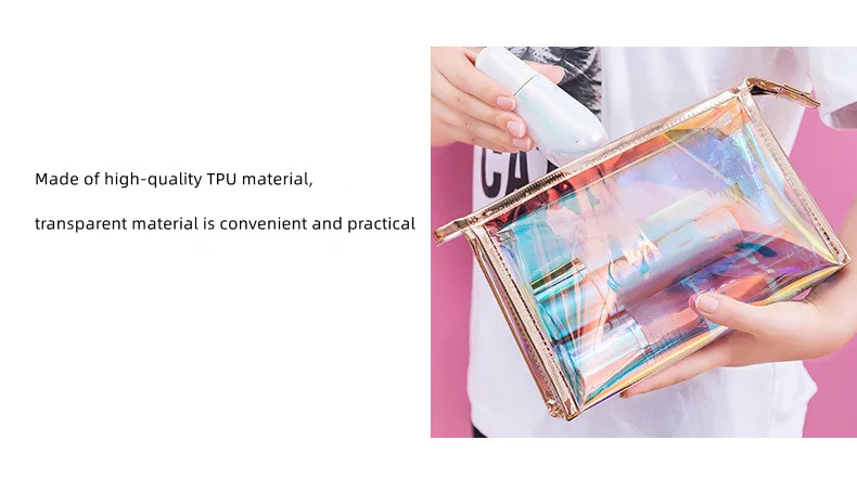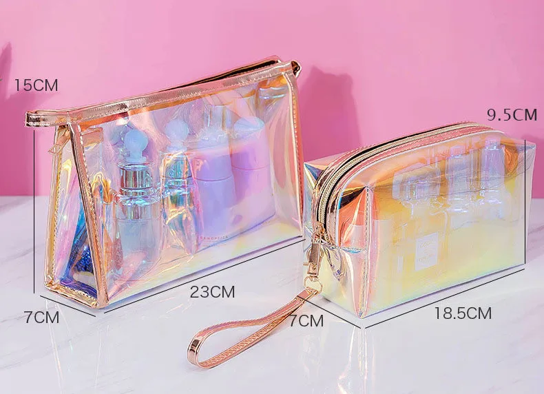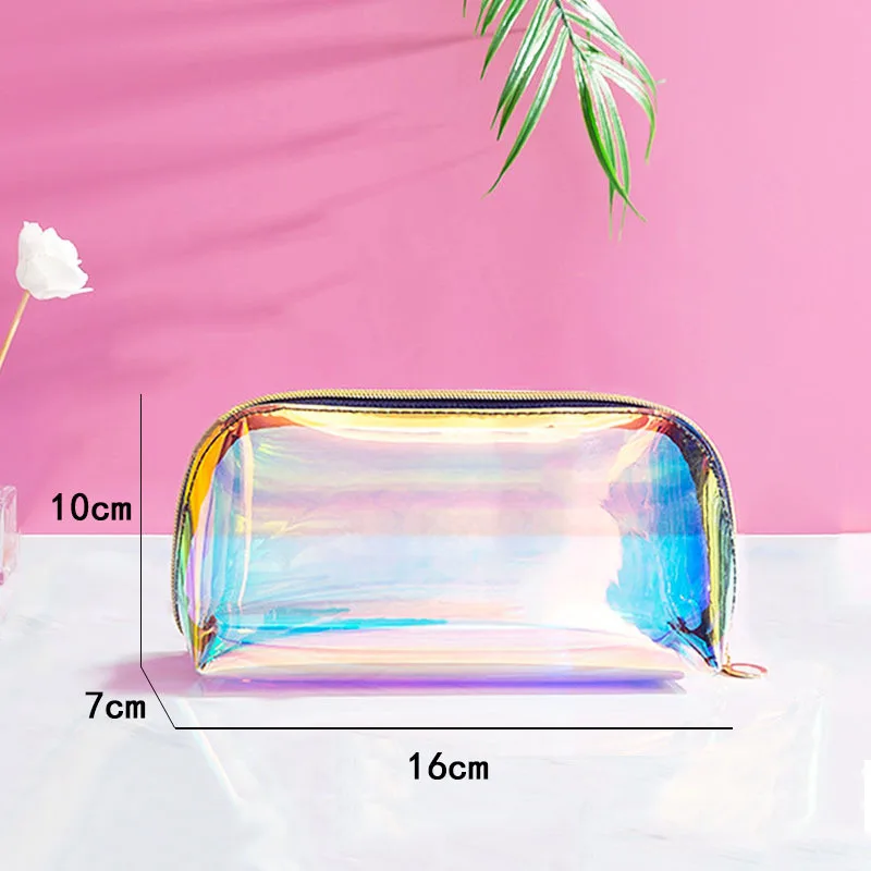 Travel Holographic Glitter Waterproof Washable Transparent Cosmetic Storage Bag Organizer