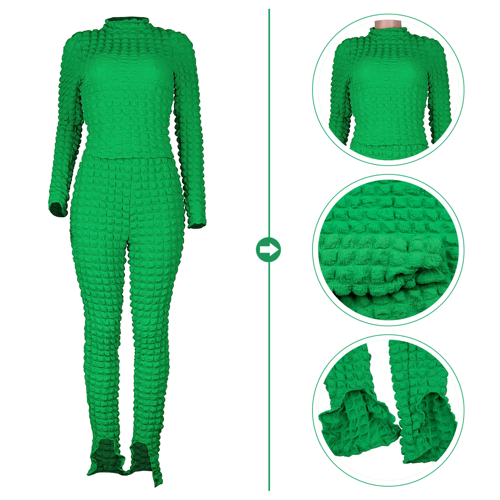 trending woman clothes 2022 new arrivals Trendy Women Clothes Casual Long Sleeve Bubble Fabric Pants Set