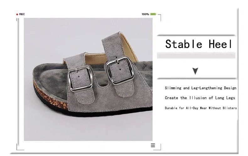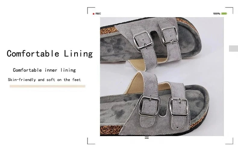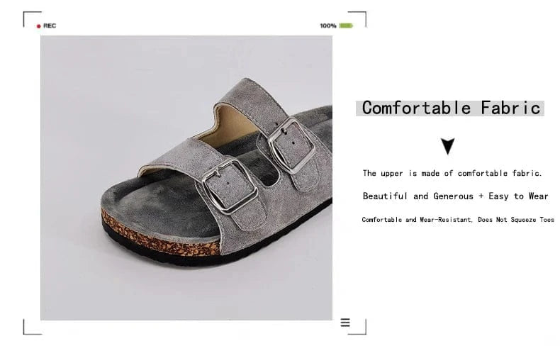 Trendy and Fashionable Buckle Flat Cork Slippers Holiday Style Summer Men's and Women's Beach Buckle Outdoor Casual Sandals