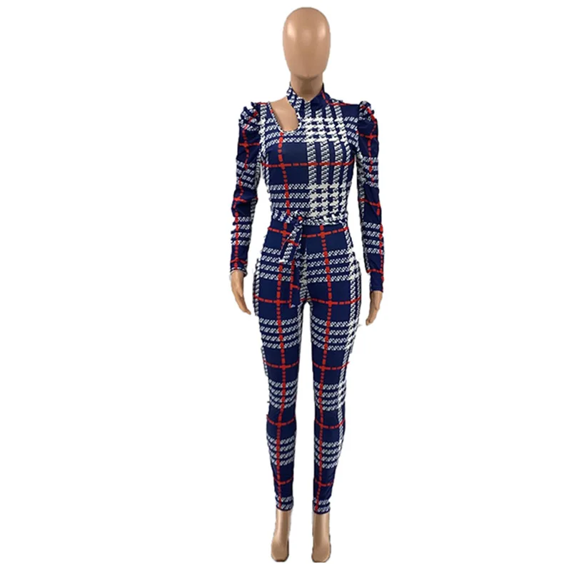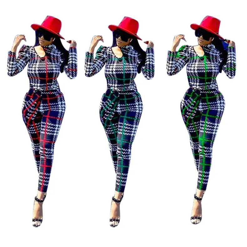 Trendy Autumn Fall Top New Fashionable Designed Patchwork Plaid Lady Longsleeve Bodysuit Winter Jumpsuits Womens Jumpsuits Sexy