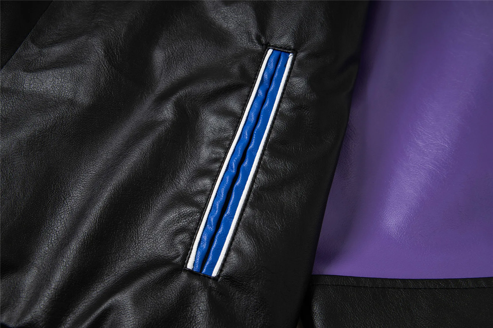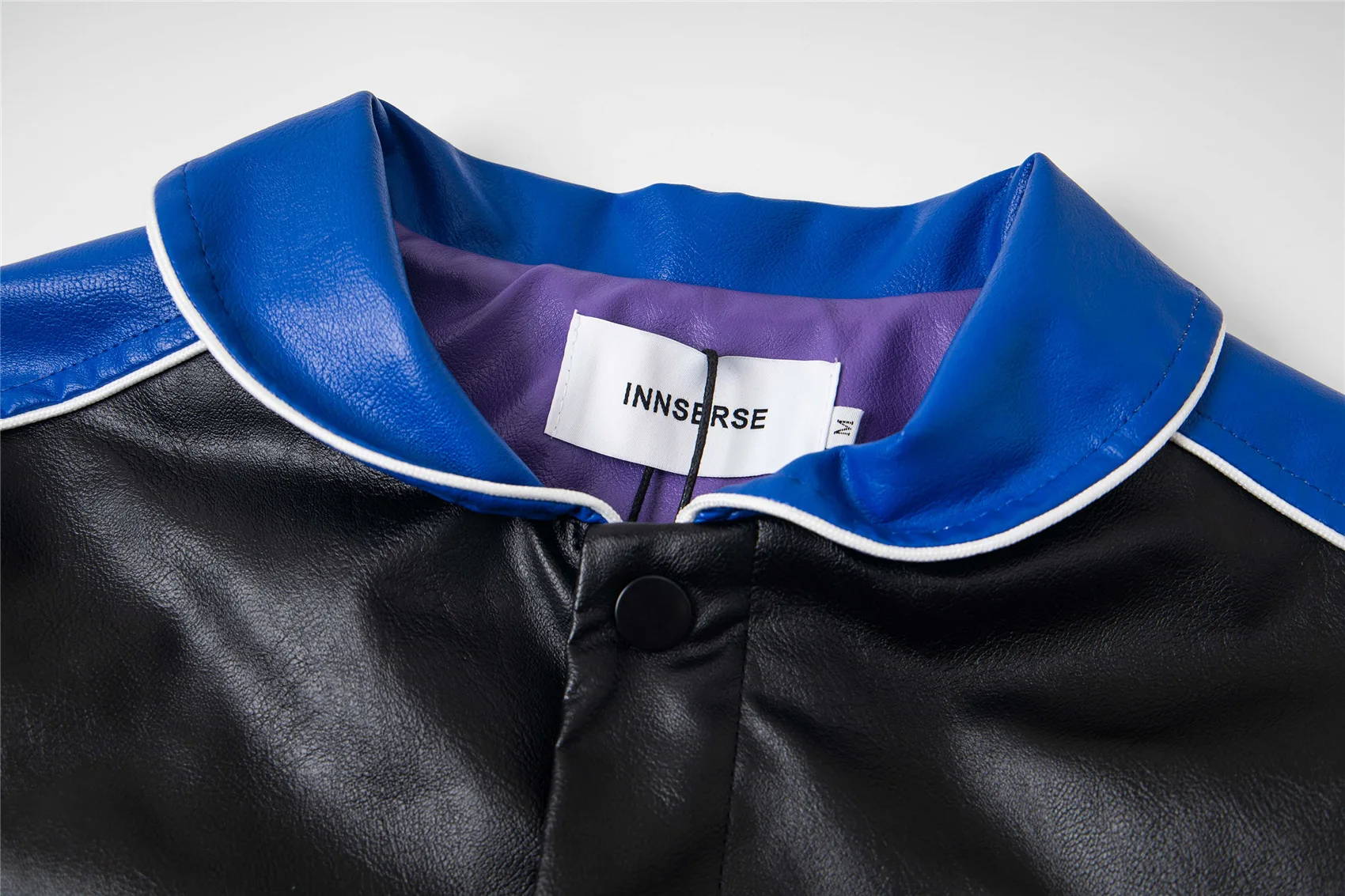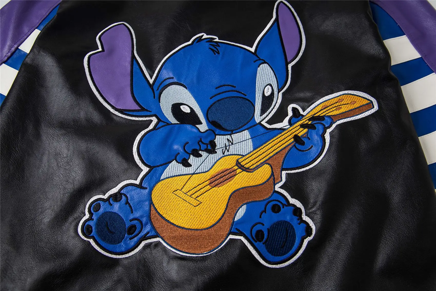 Trendy Cartoon Embroidery Color-Block Stand Collar Jacket Coat for Men and Women Autumn Winter Loose Casual Leather Jacket Coat