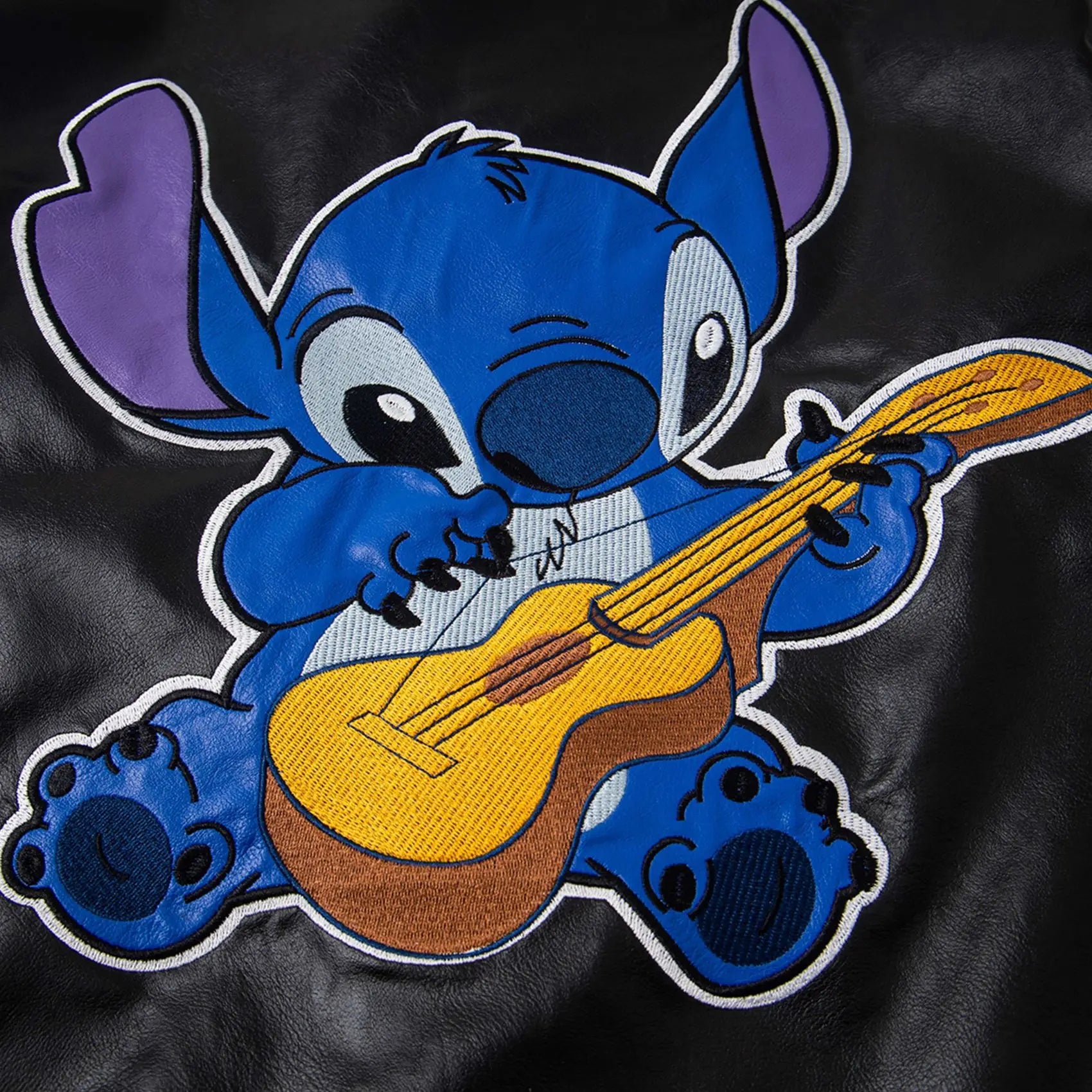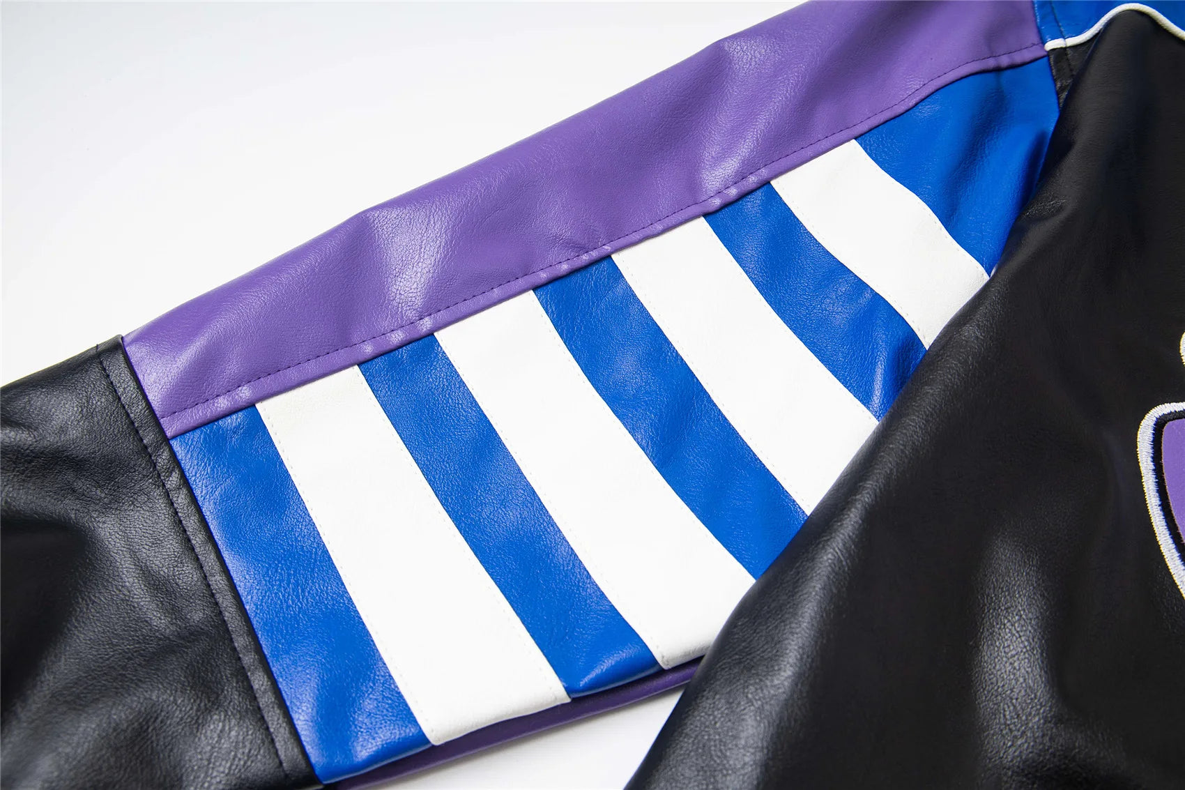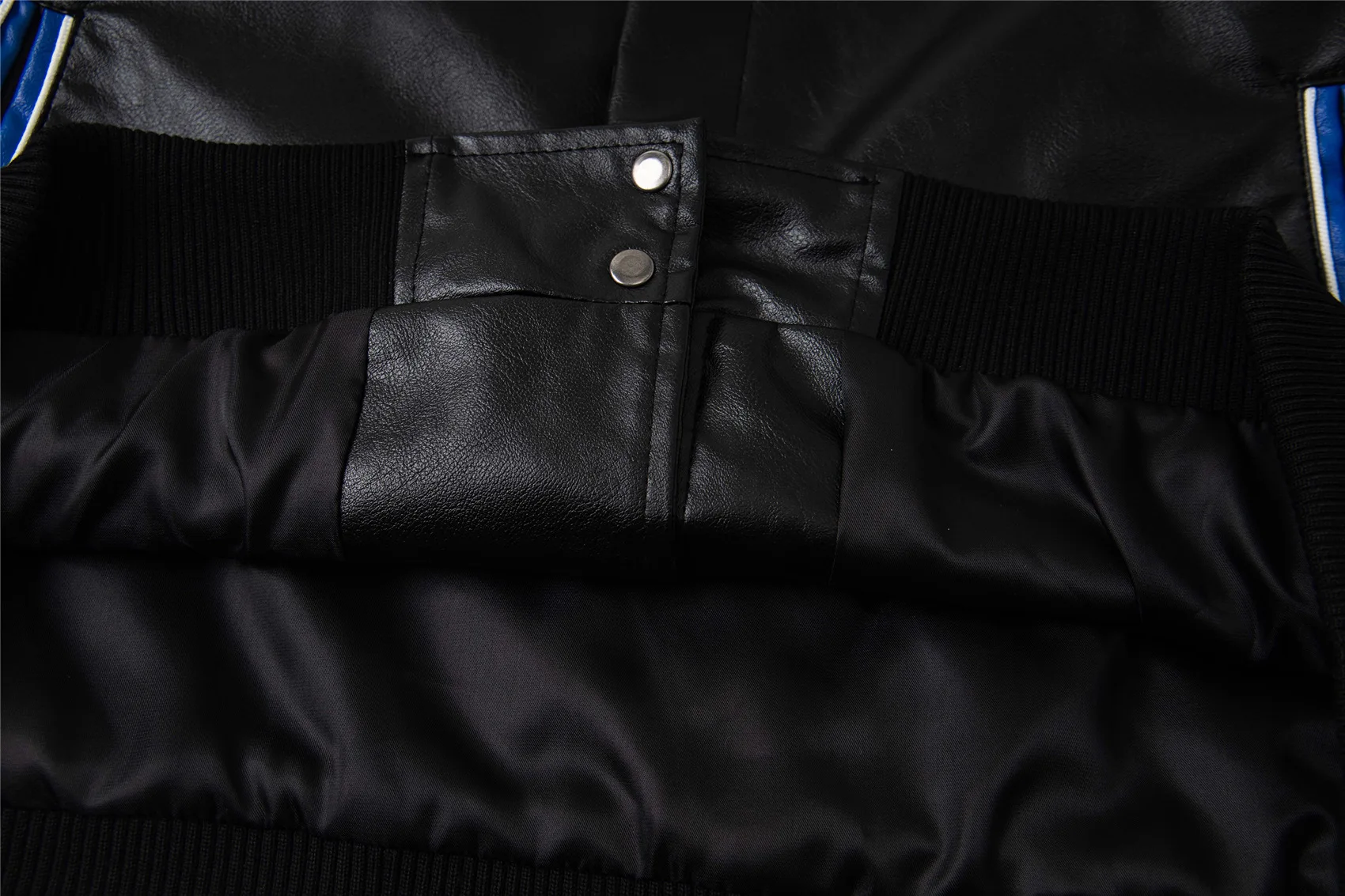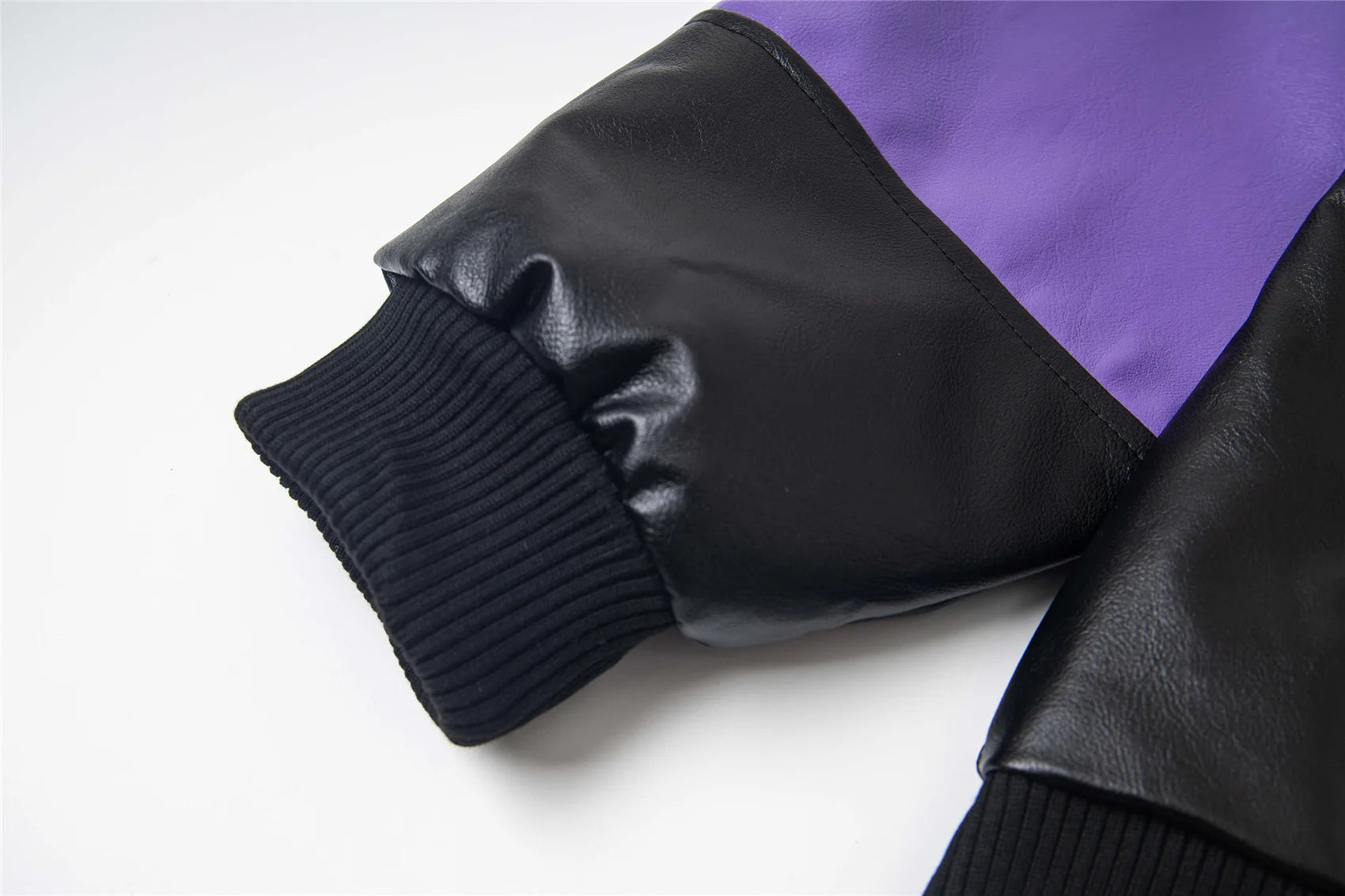 Trendy Cartoon Embroidery Color-Block Stand Collar Jacket Coat for Men and Women Autumn Winter Loose Casual Leather Jacket Coat