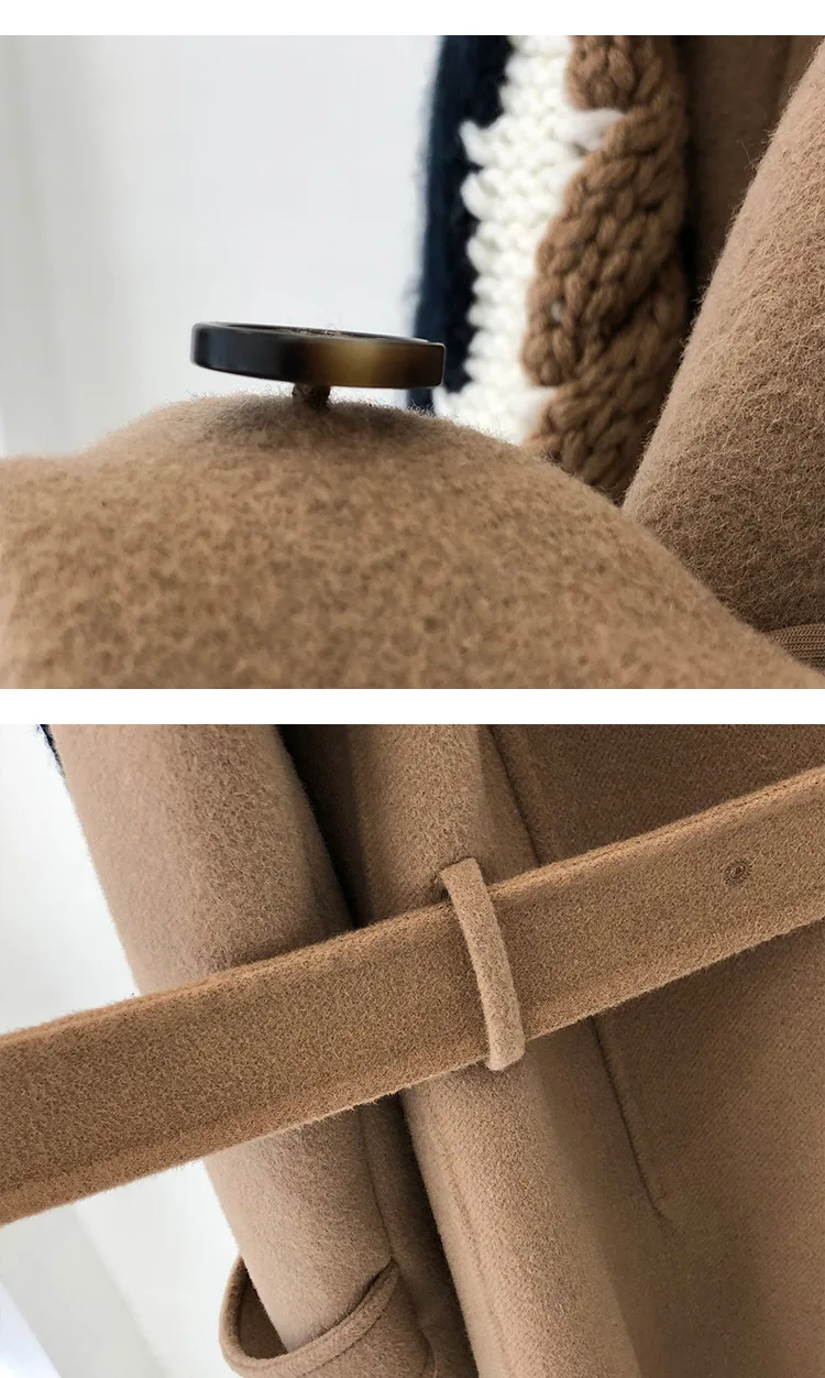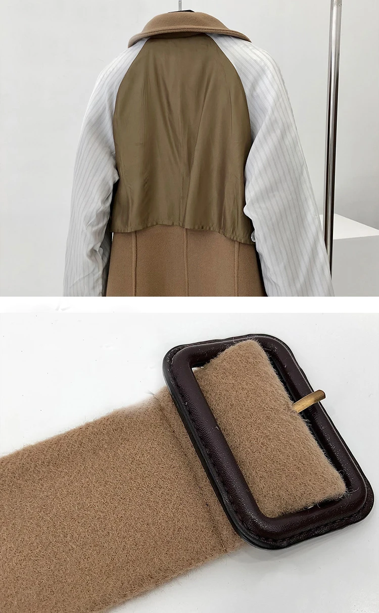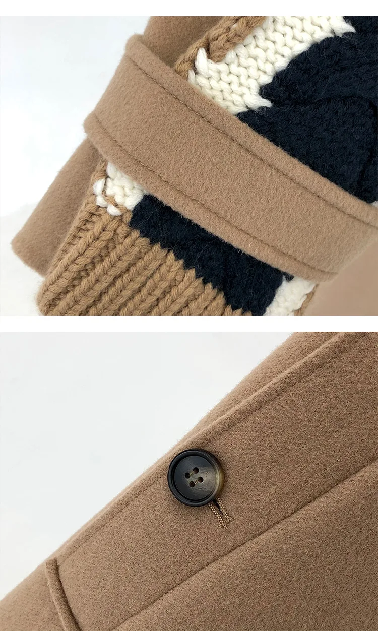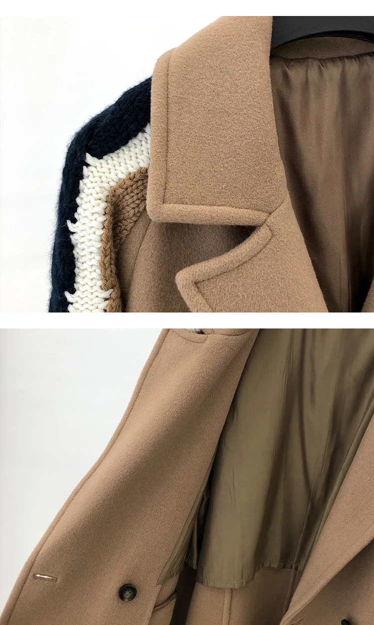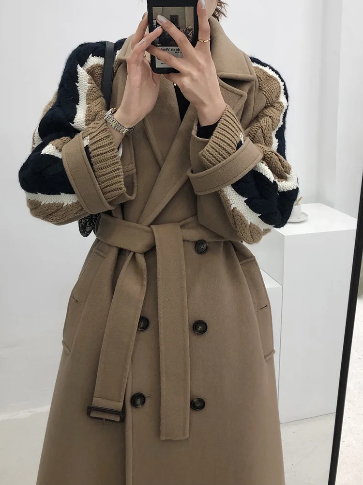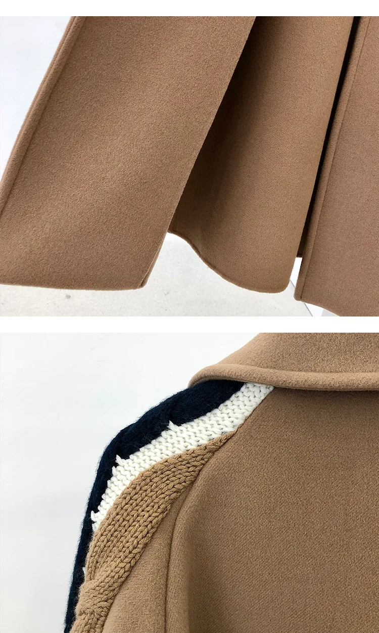 Trendy Custom Lady Wool Coat Splicing Sweater Sleeve Women Cashmere Coat