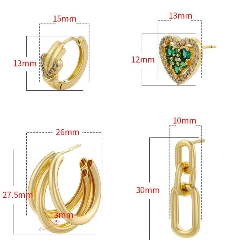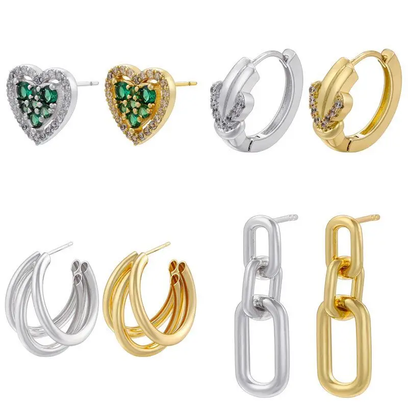Trendy Fashion Zircon Knot Heart Stud Earrings Brass Gold Plated Geometry 3 Layers Oval Drop Earrings Women Korean Jewelry