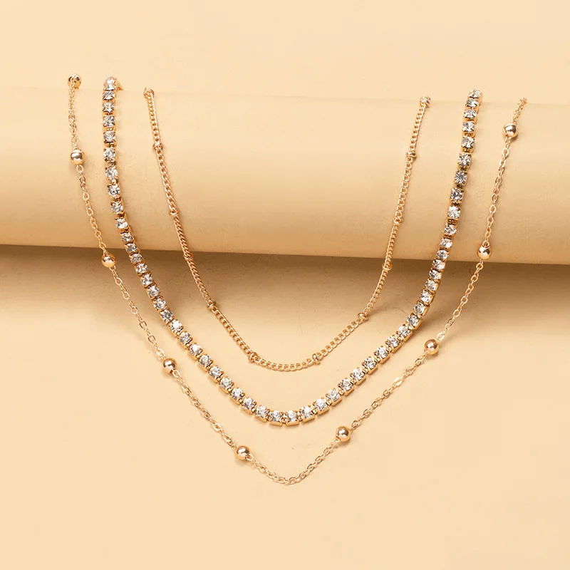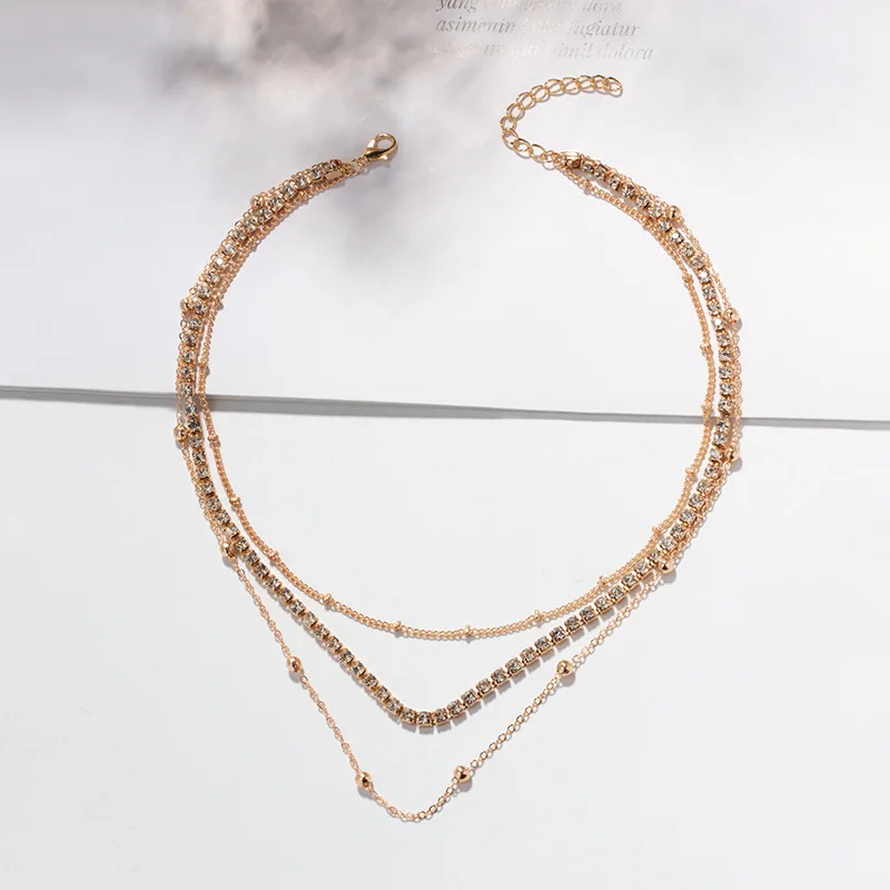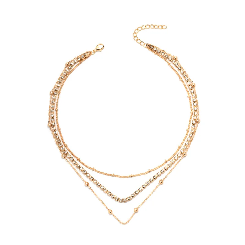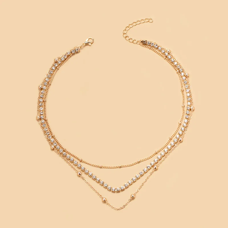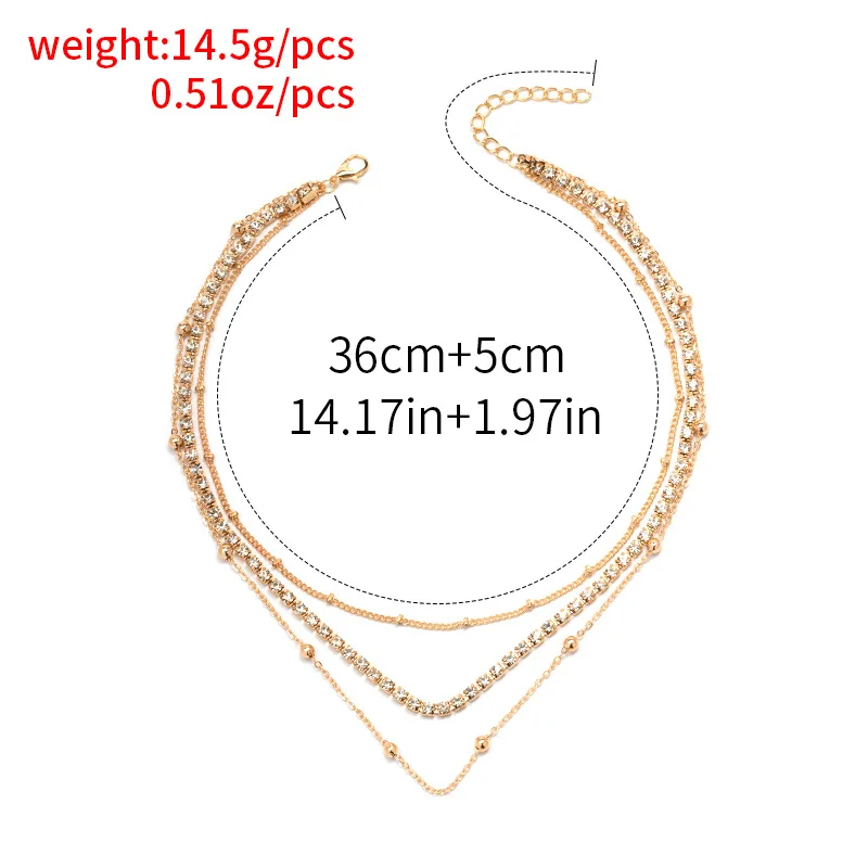 Trendy Gold Chain Zircon Necklace Temperament Multilayer Necklace For Women Beads Jewelry Set Necklace
