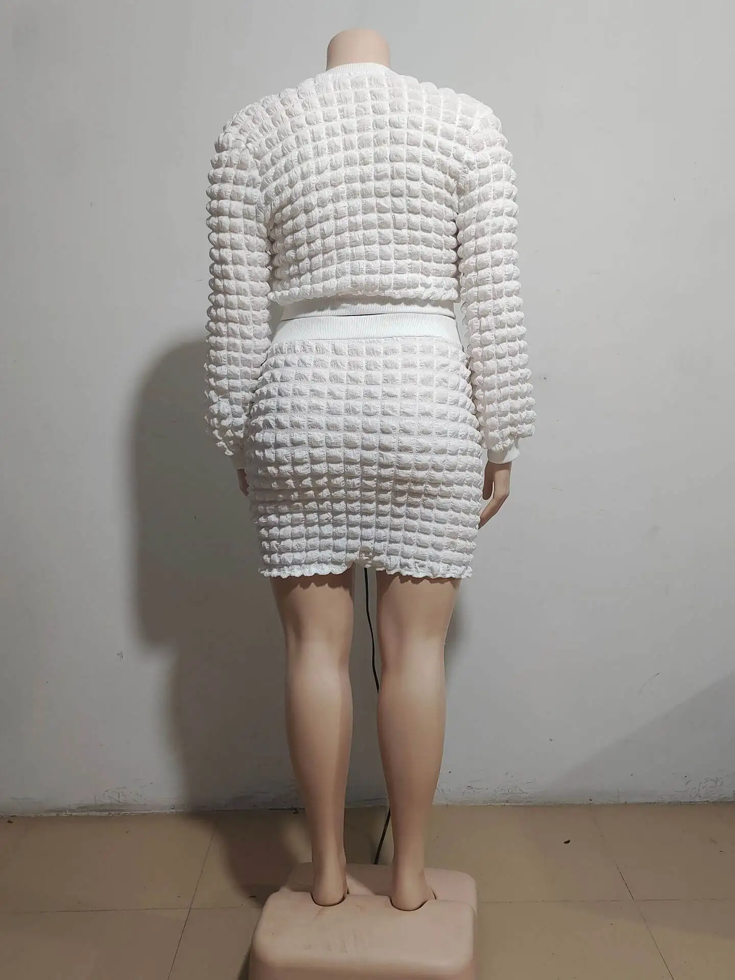Trendy Ladies Skirt Two Piece Set Club Fall Mini White Wrap Skirt Outfits Popcorn Winter Long Sleeve Jacket And Skirt Women Suit